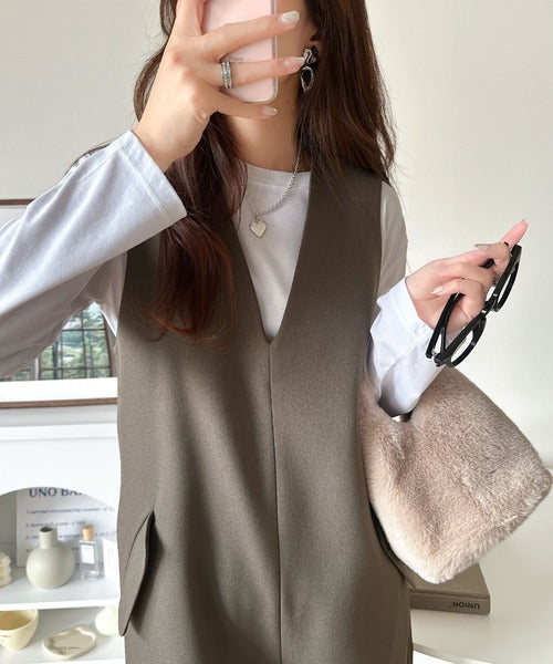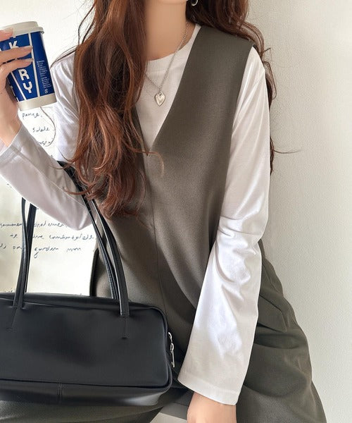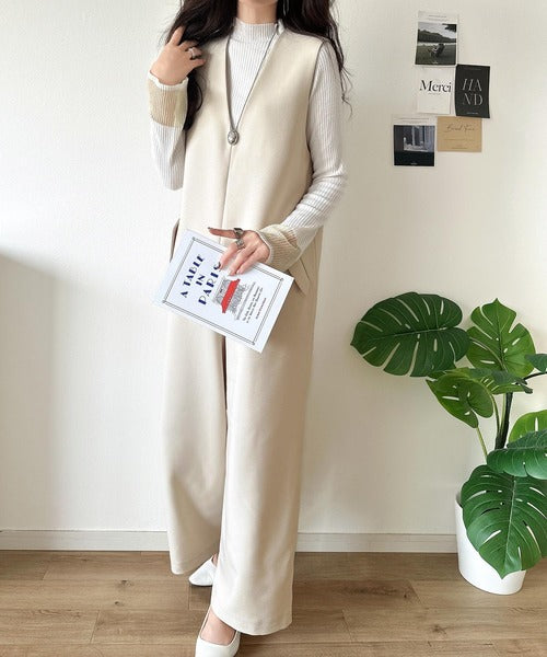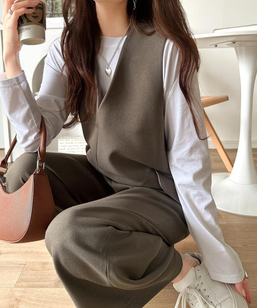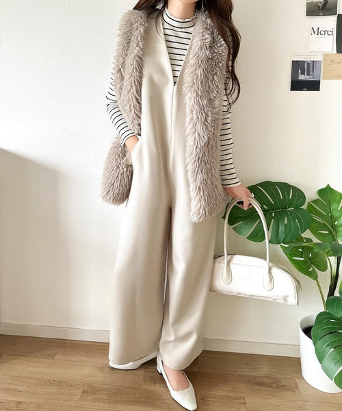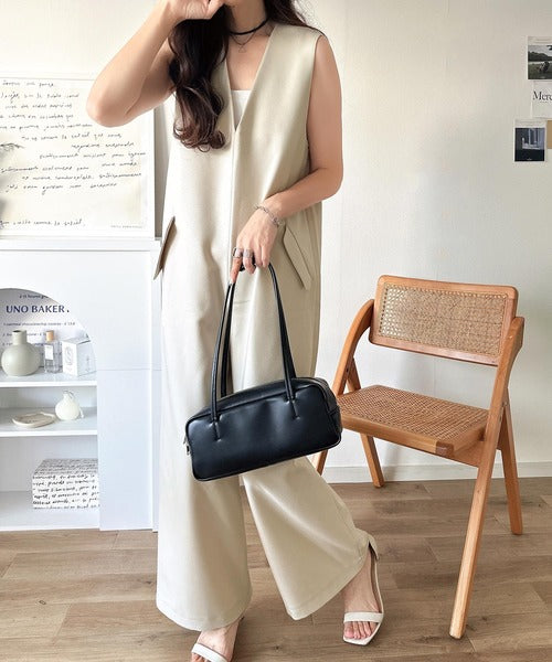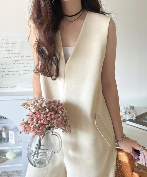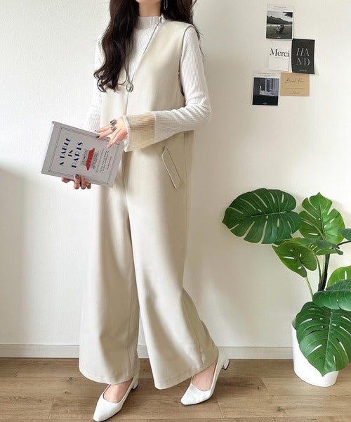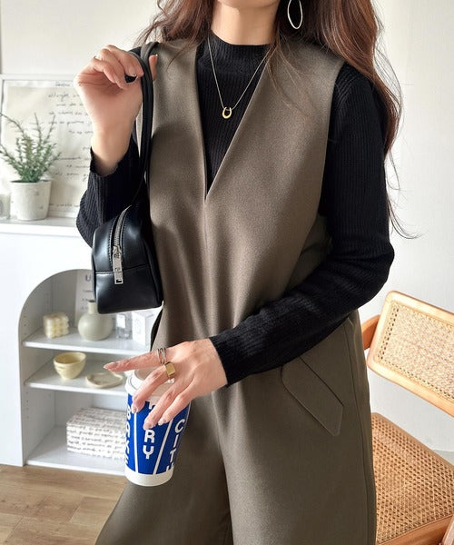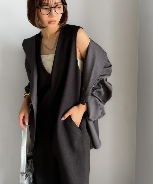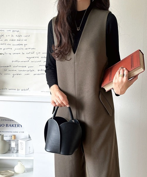 大人の抜け感が叶う、華奢見えVネックサロペット。