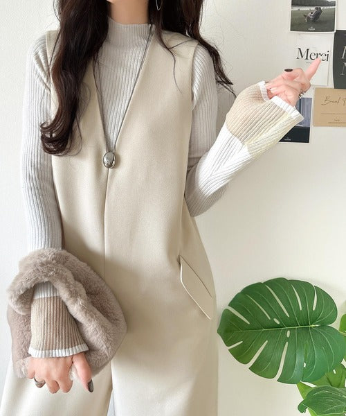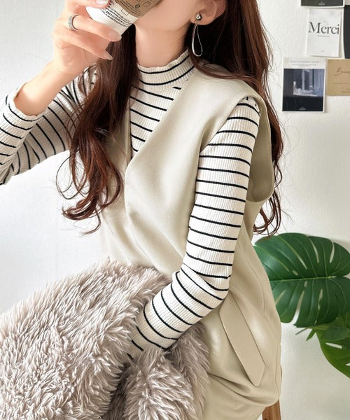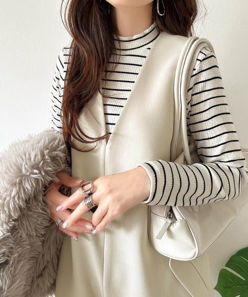 きれいめスタイルを目指すなら、リブニットやシアートップスを中に合わせてみたり