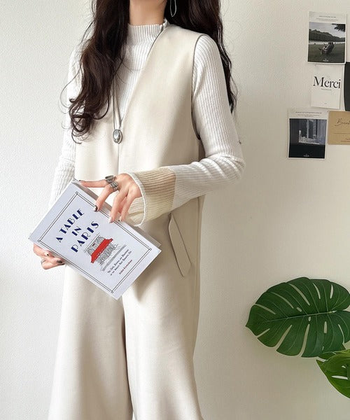 程よく開いたVネックデザインが顔周りを引き立て、大人の抜け感を演出。