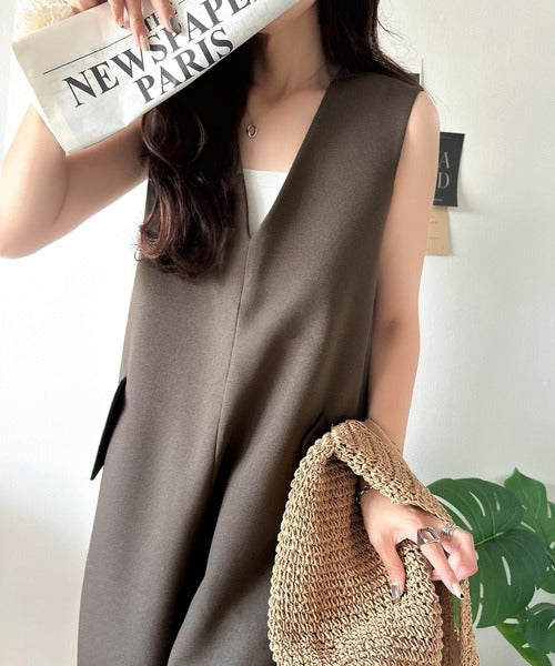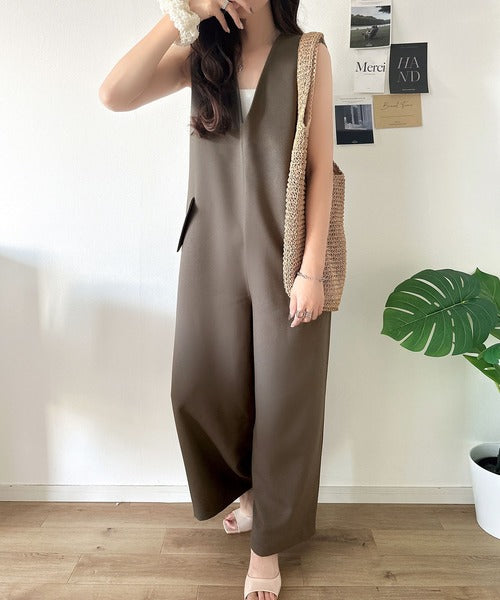 1枚でキマる私スタイル。フラップポケットVネックサロペット ce1265017