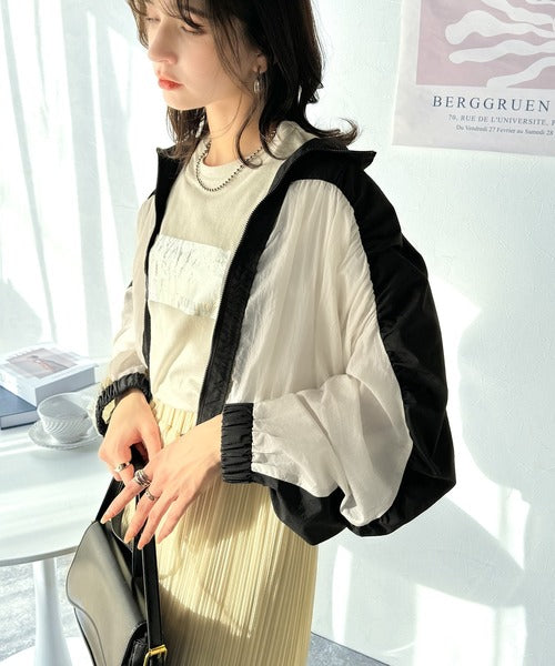 ナイロンとシアーナイロンをドッキングさせた軽量アウターです◎