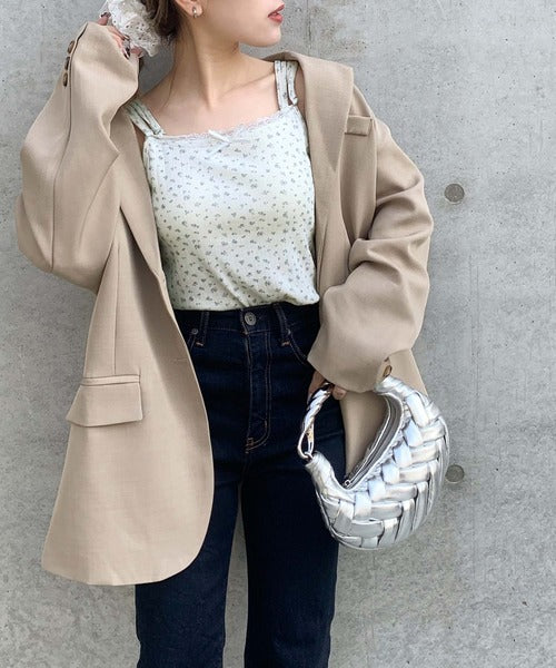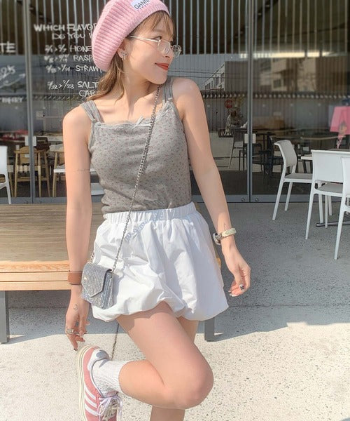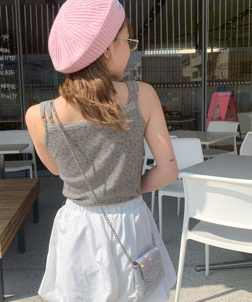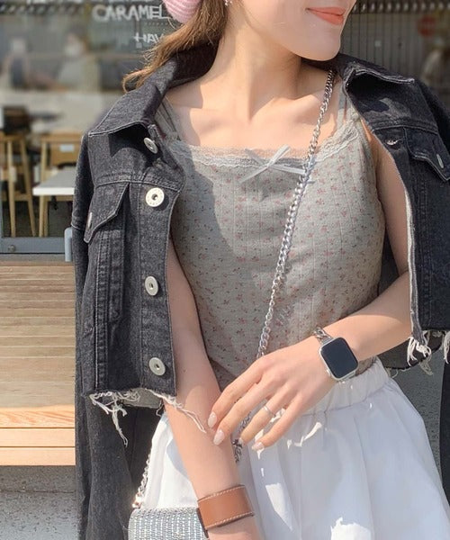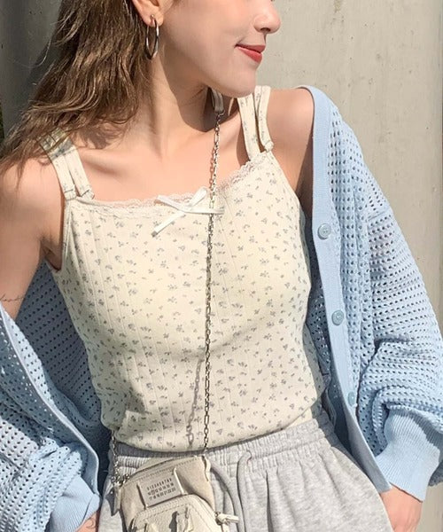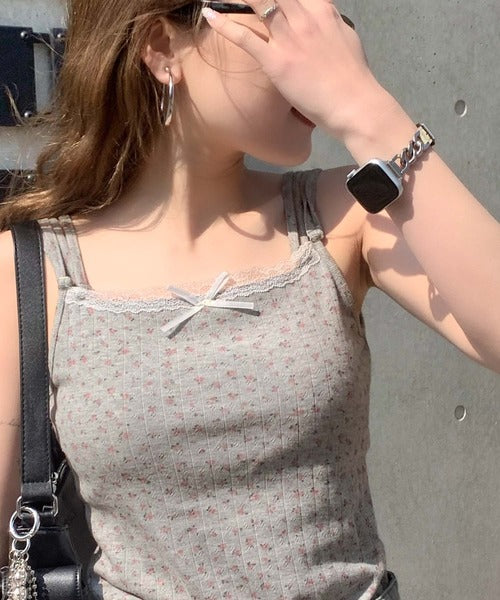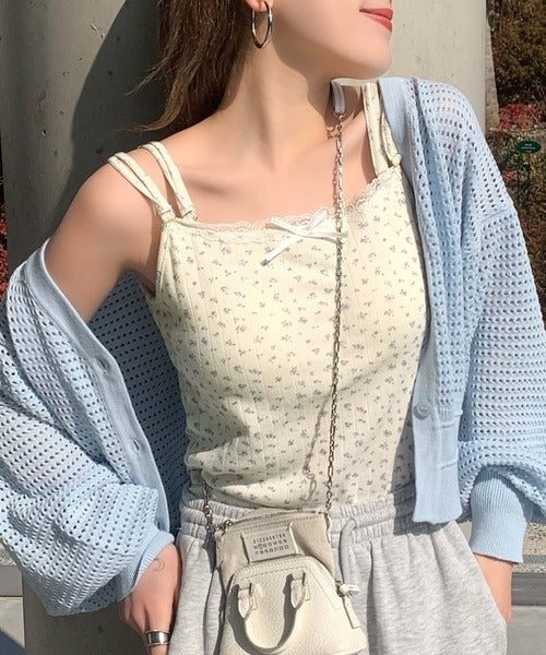 【mily bilet】1枚で今っぽデザイン。小花柄ダブルストラップリボンカップ付きレースキャミソール mi1019081
