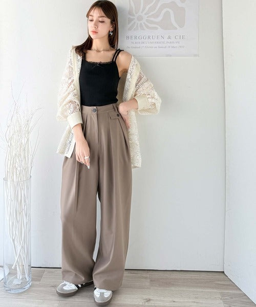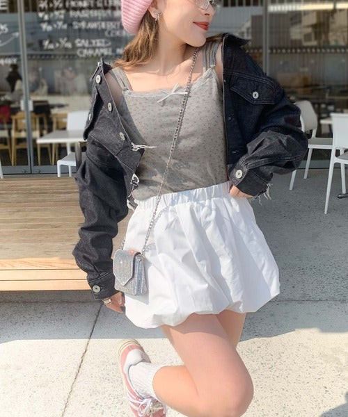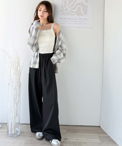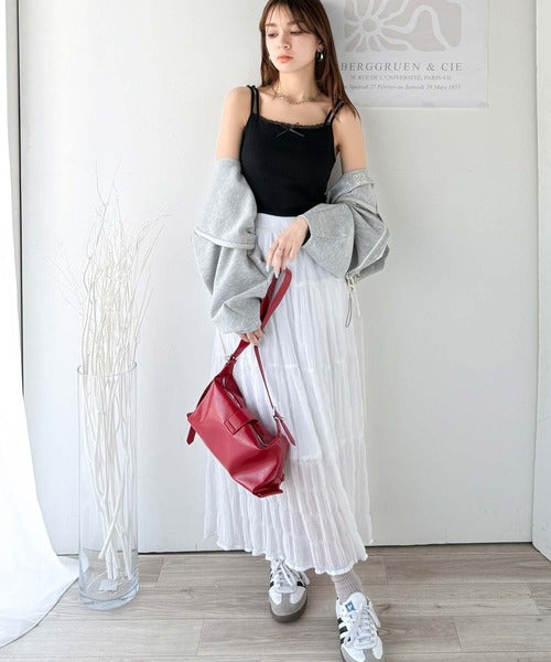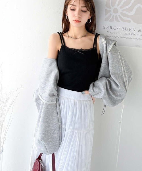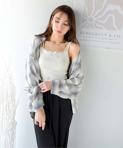 レース使いとフロントリボンがガーリーで大人可愛いアイテムです。