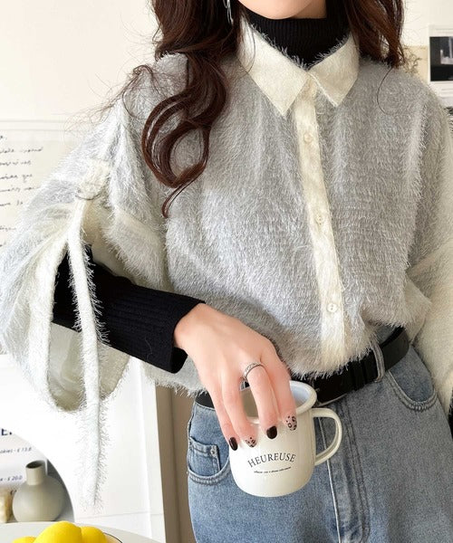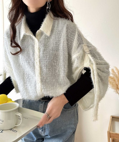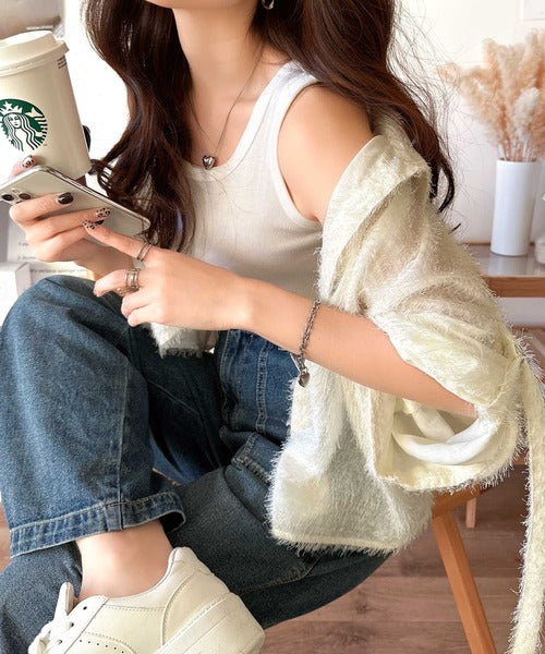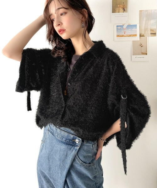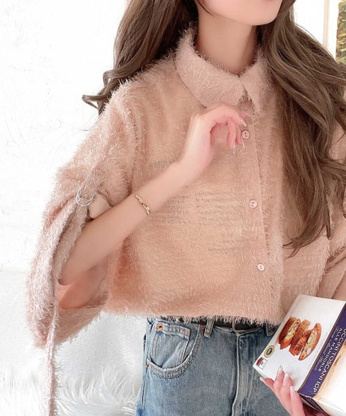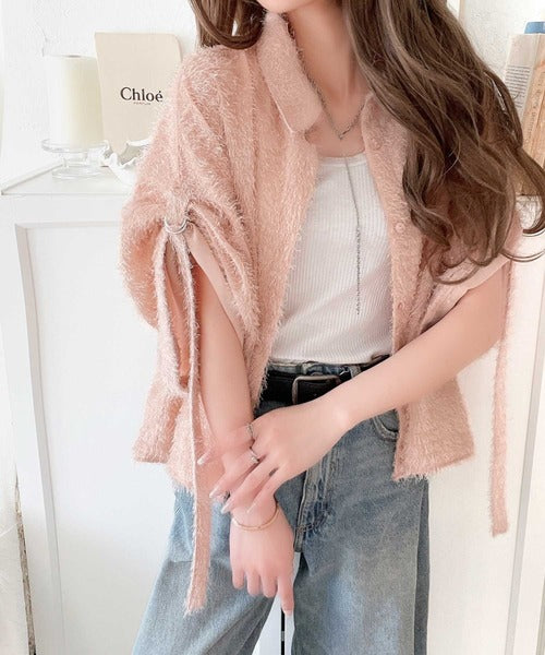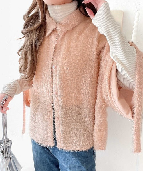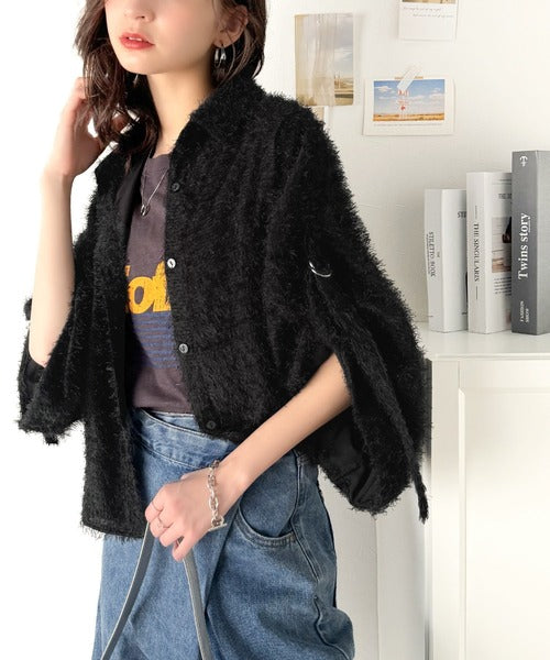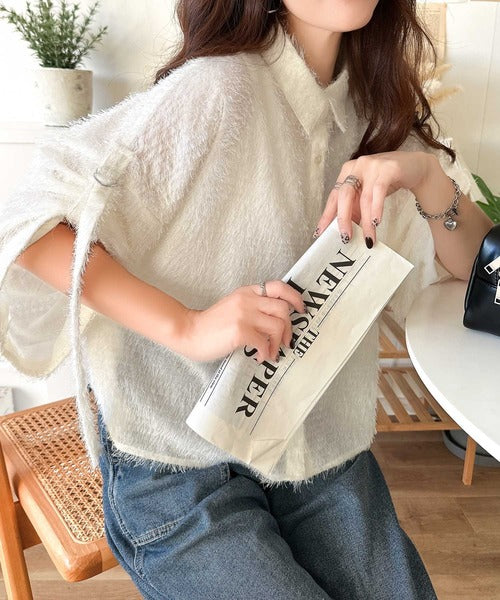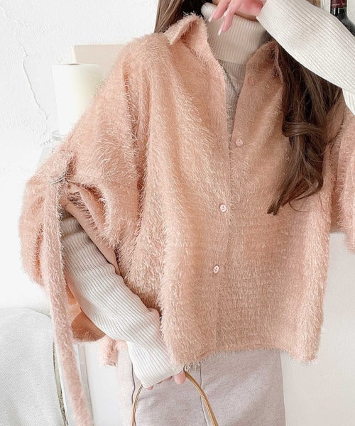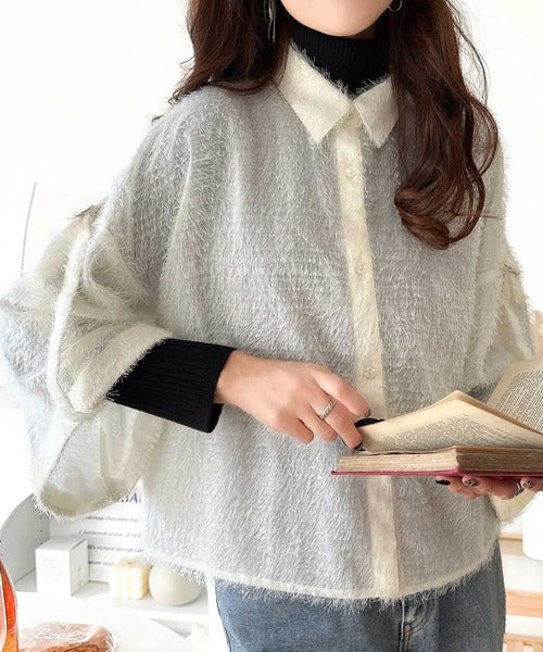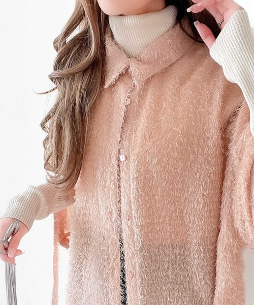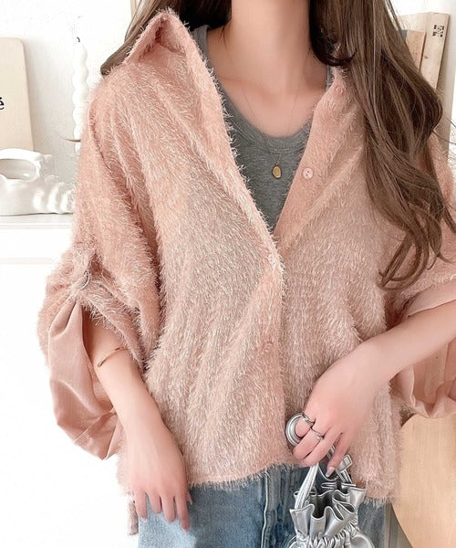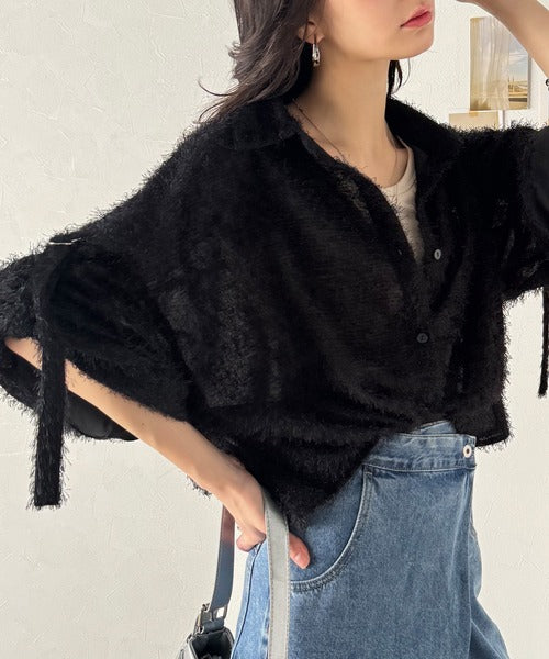 トレンド感&エレガンス。ふんわりシアーフェザーロールアップスリーブシャツカーディガン ce1010382