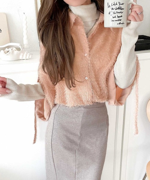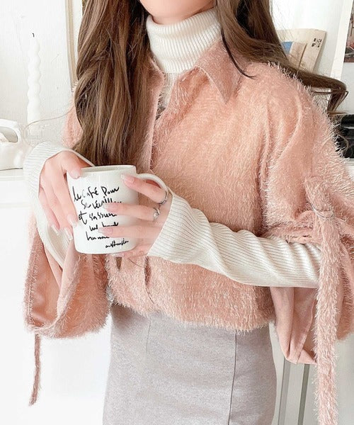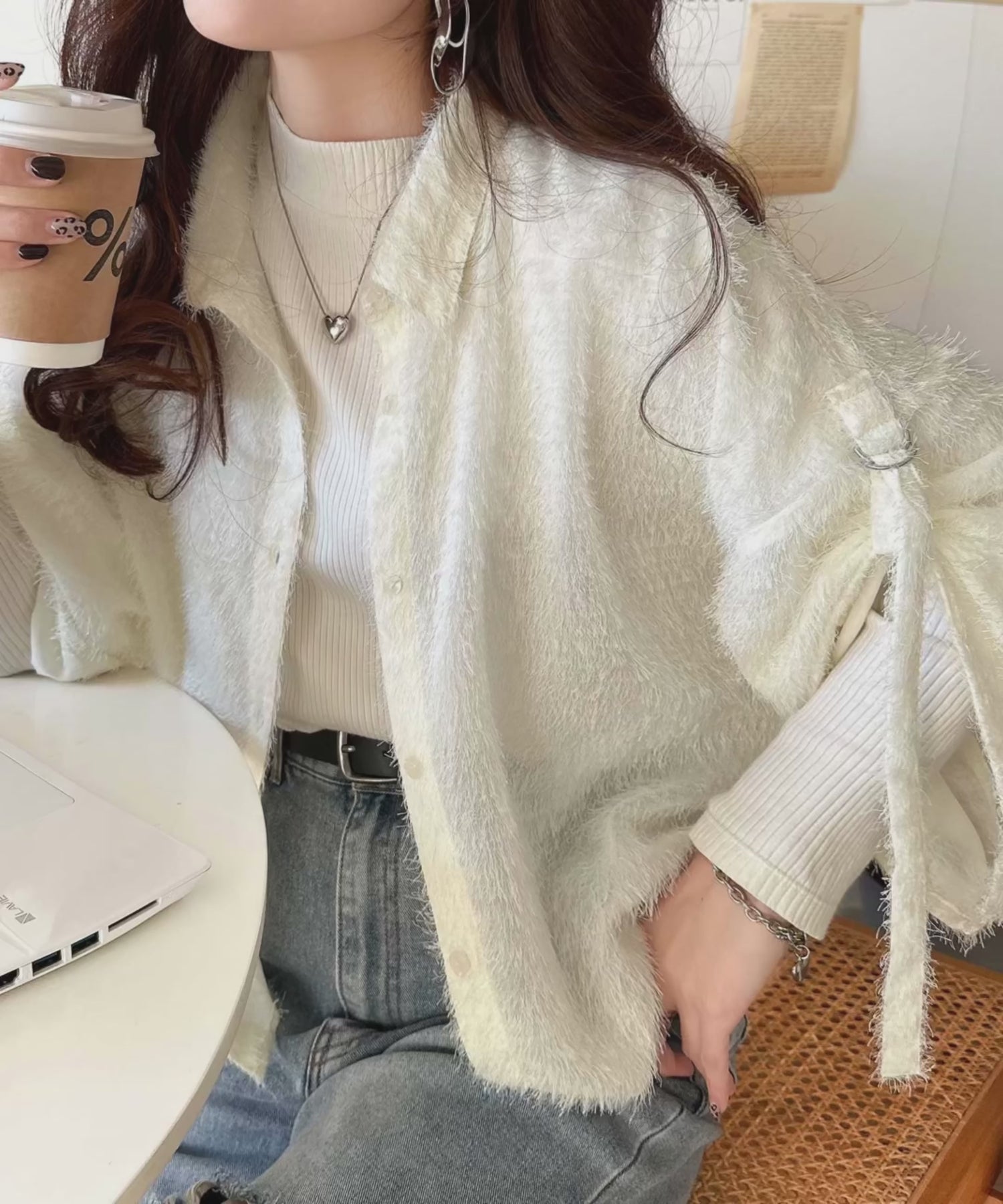 シャギーニットやモヘアニットの様なふわふわと癒される肌触りで、着心地も良いアイテムになっています。