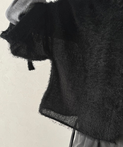 長すぎない毛足のフェザーと軽やかなシアー素材をミックスしたトレンド素材です。