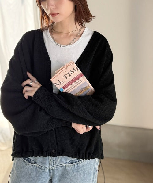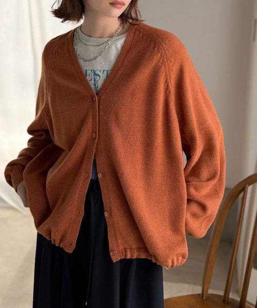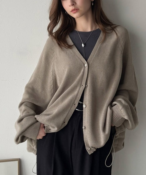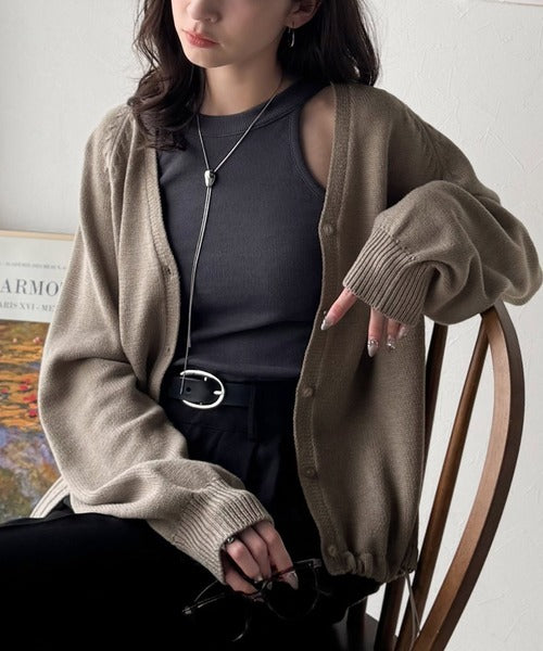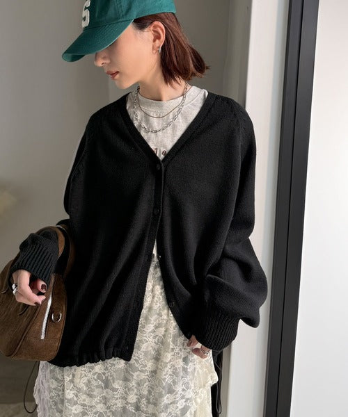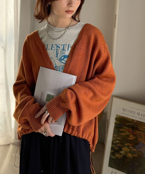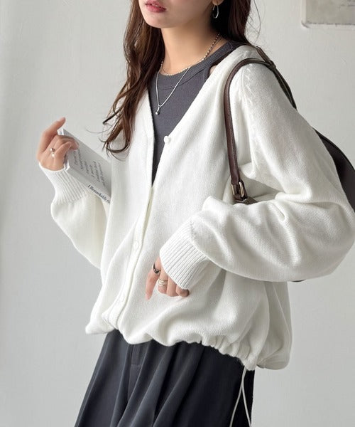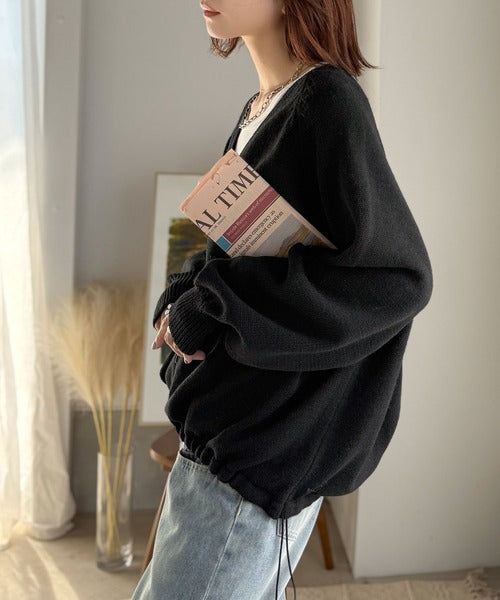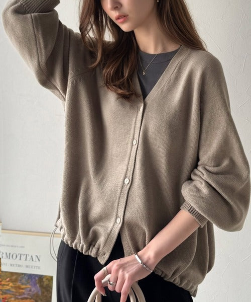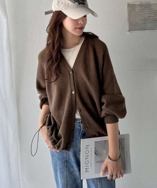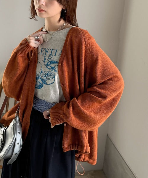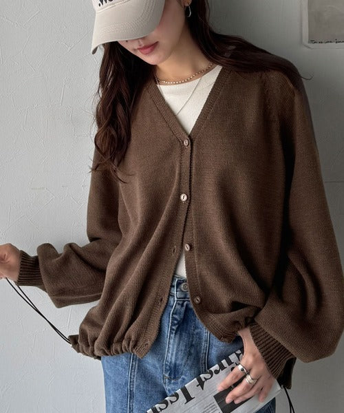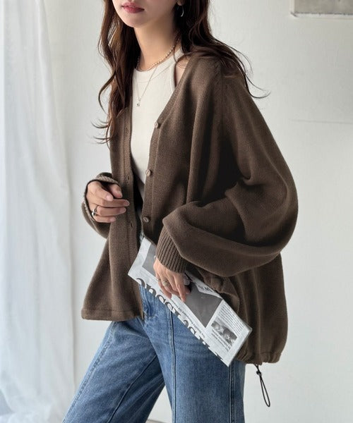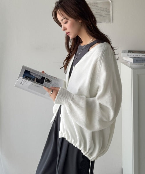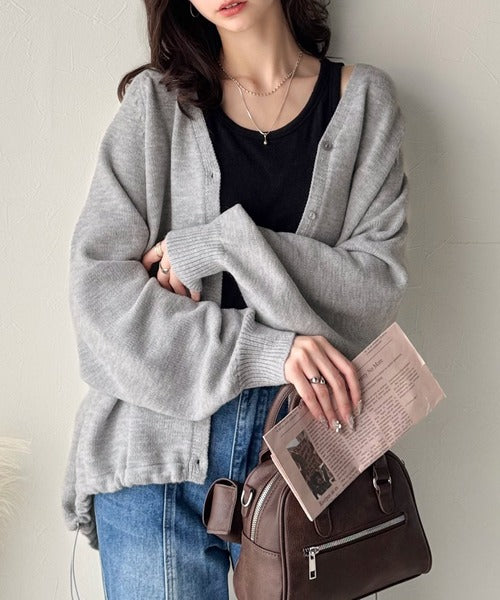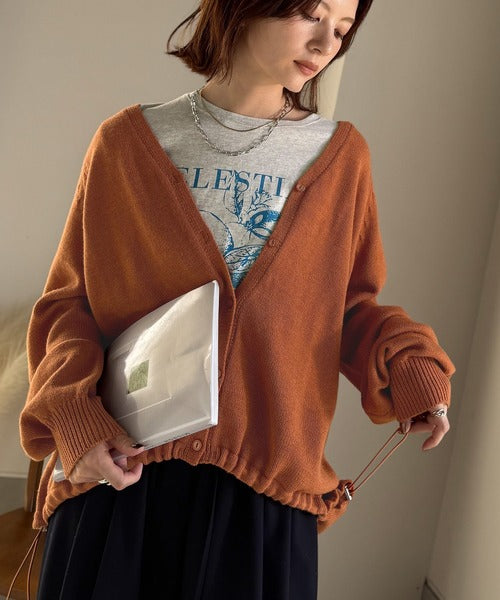 羽織るだけで今っぽいバランスが完成するドロストVネックカーディガン。