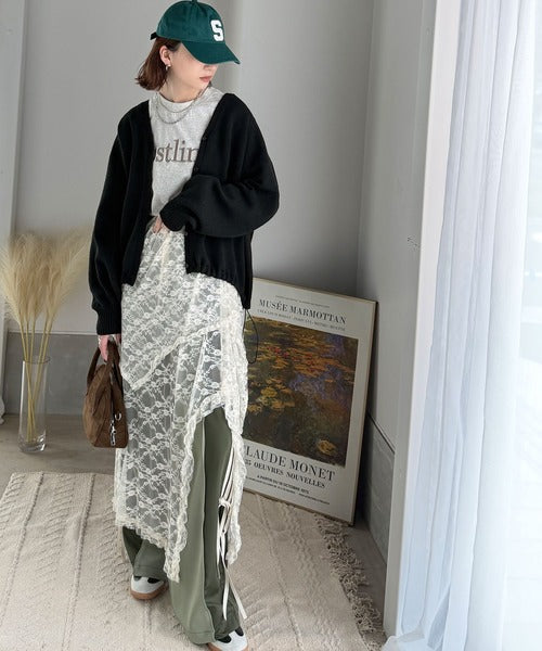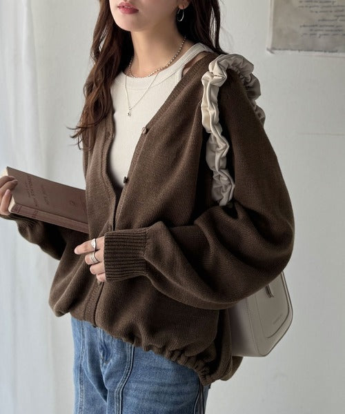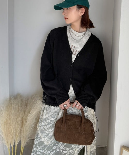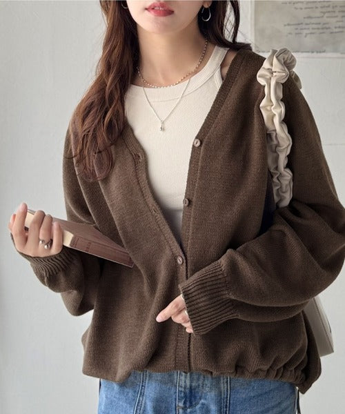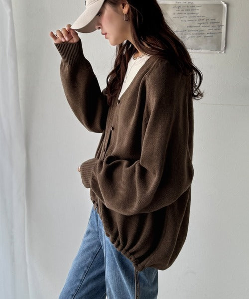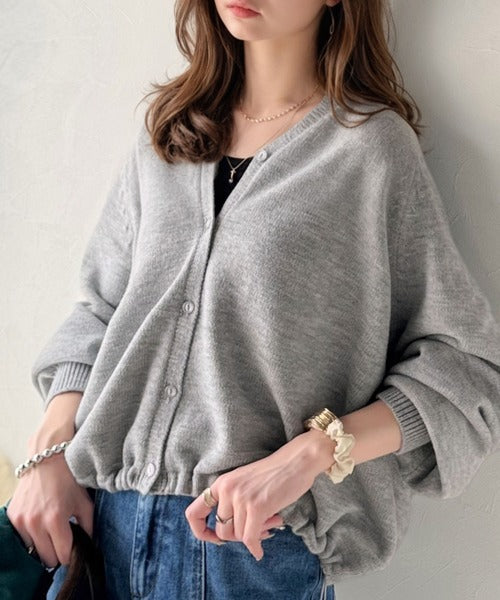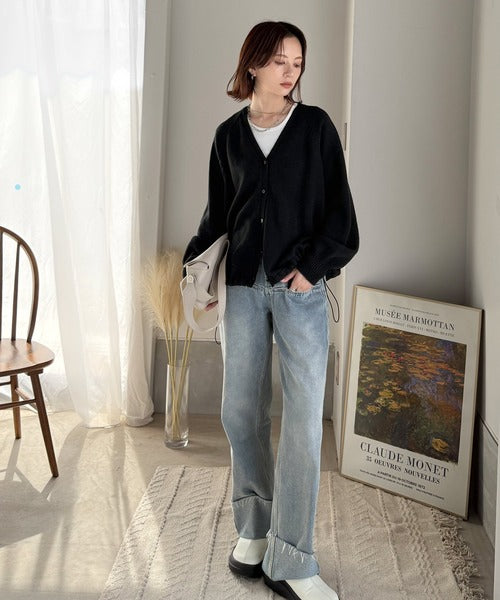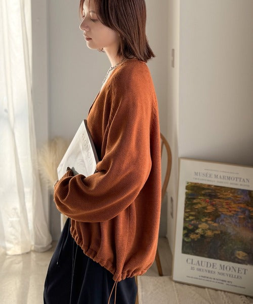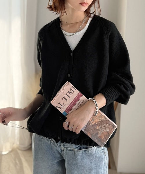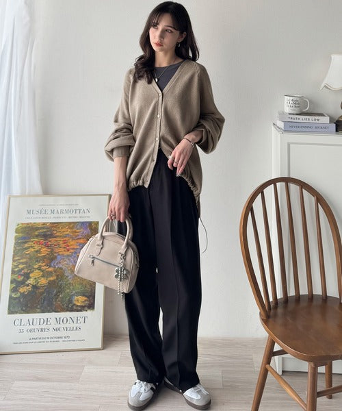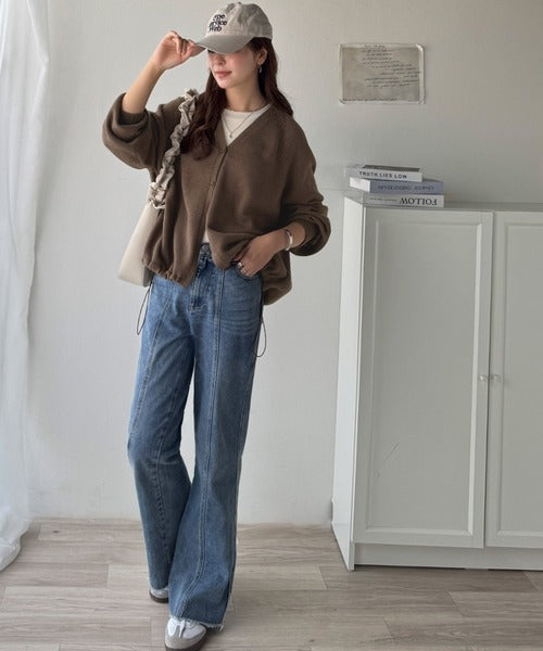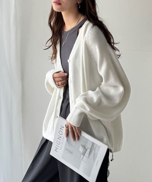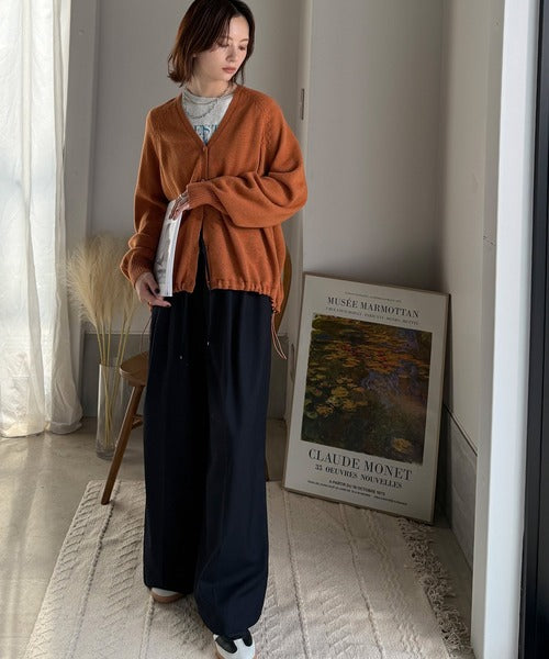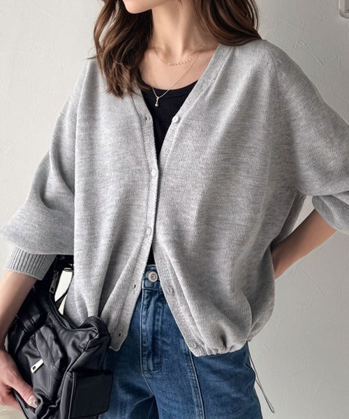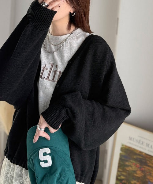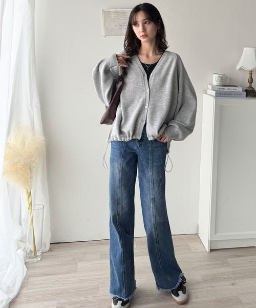 羽織るだけで今っぽいバランスが完成するドロストVネックカーディガン。
