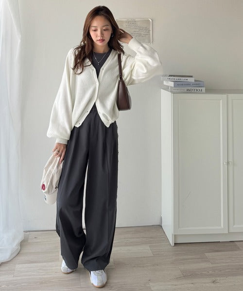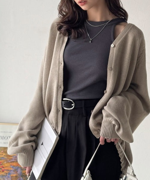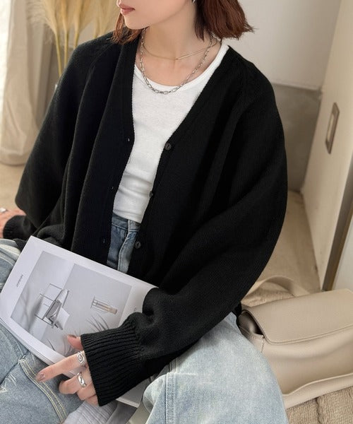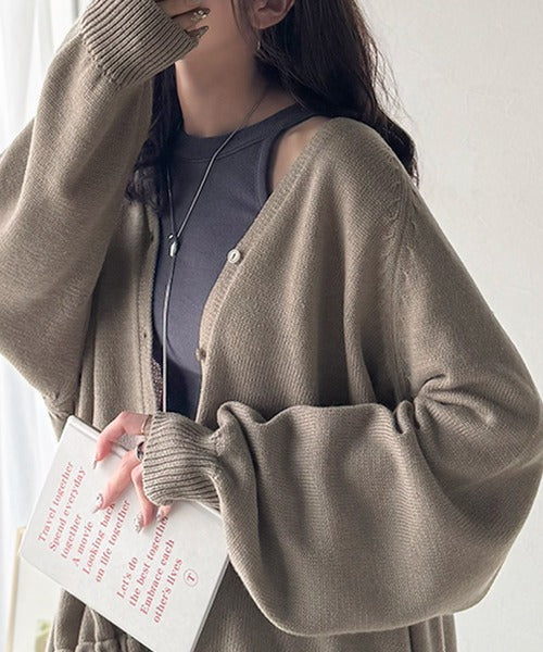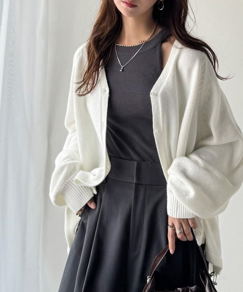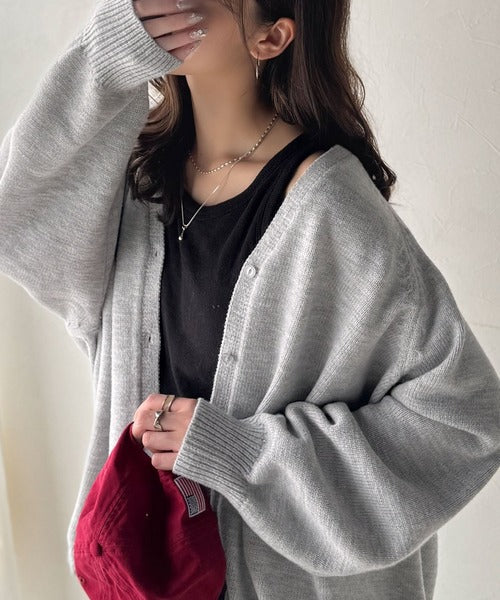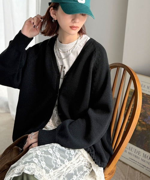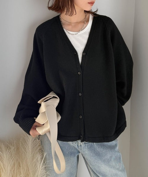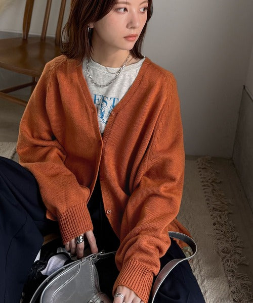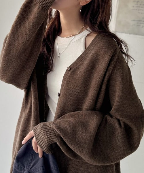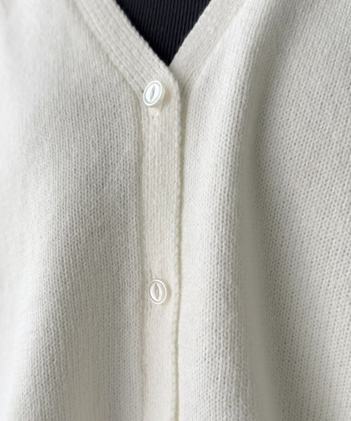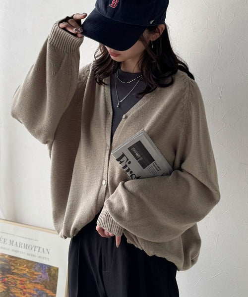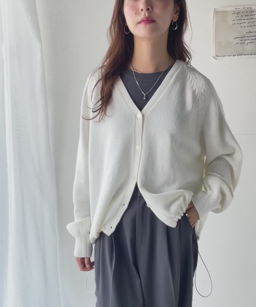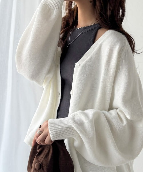 ゆったりとした落ち感のあるシルエットに、Vネックがすっきりとした印象を与えるカーディガンです。