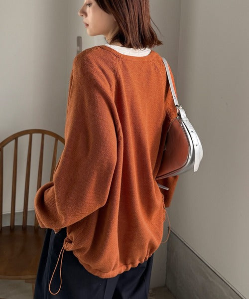 シルエット自在でお洒落も叶う。裾ドロストVネックニットカーディガン(長袖) ce1020327