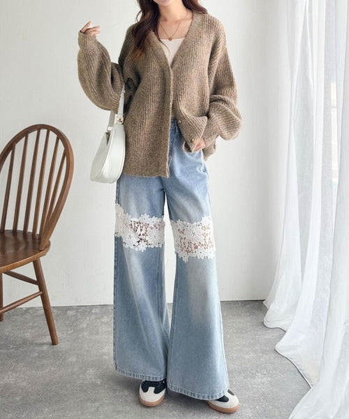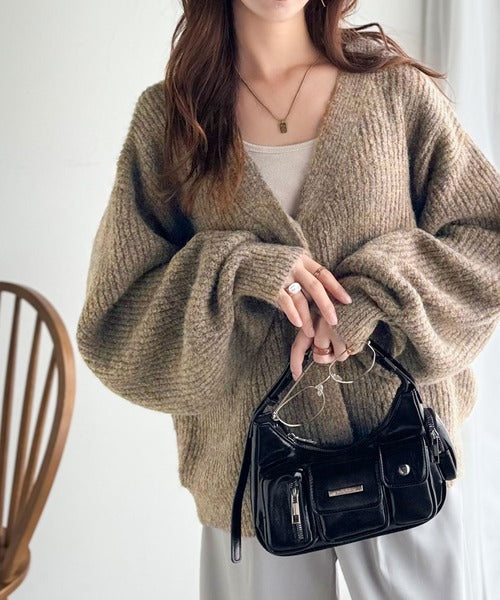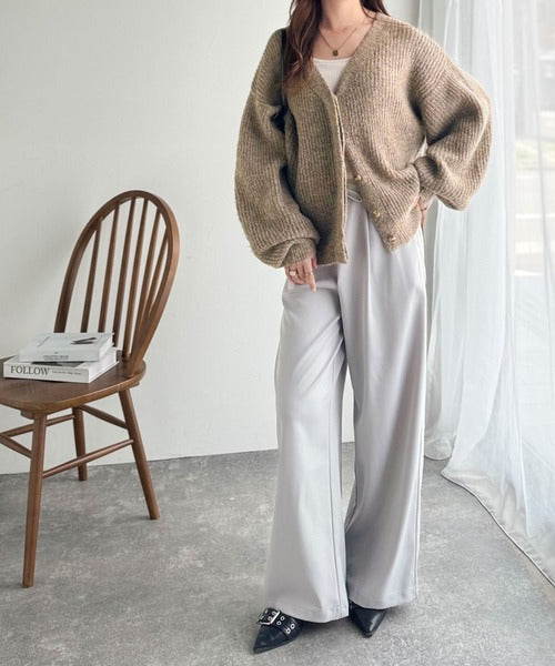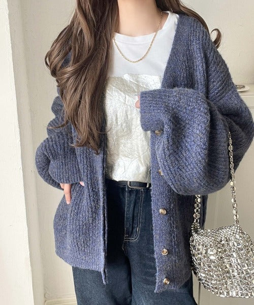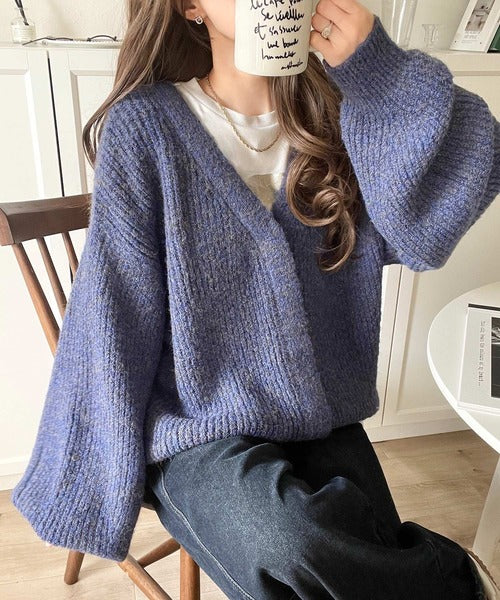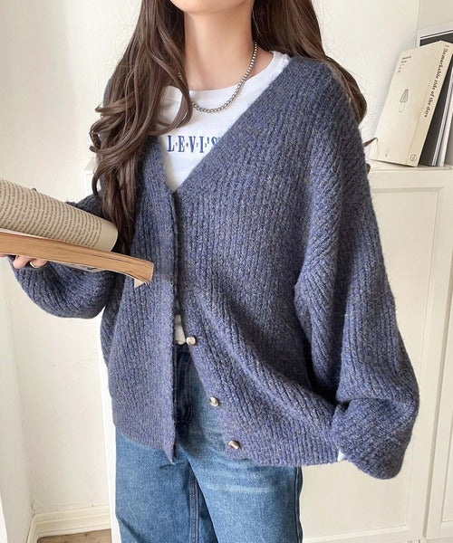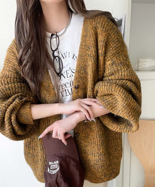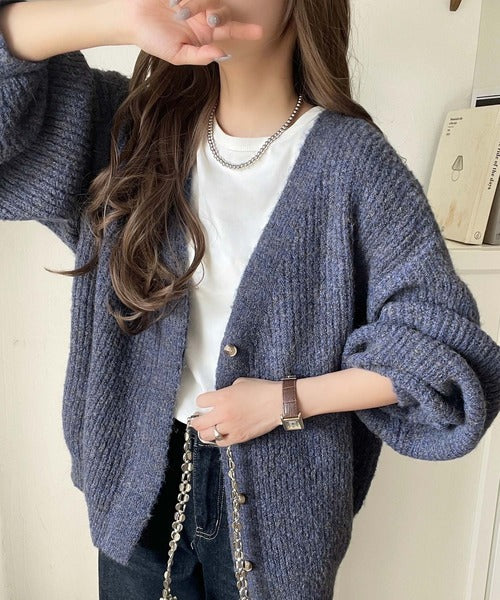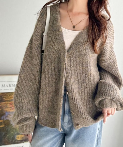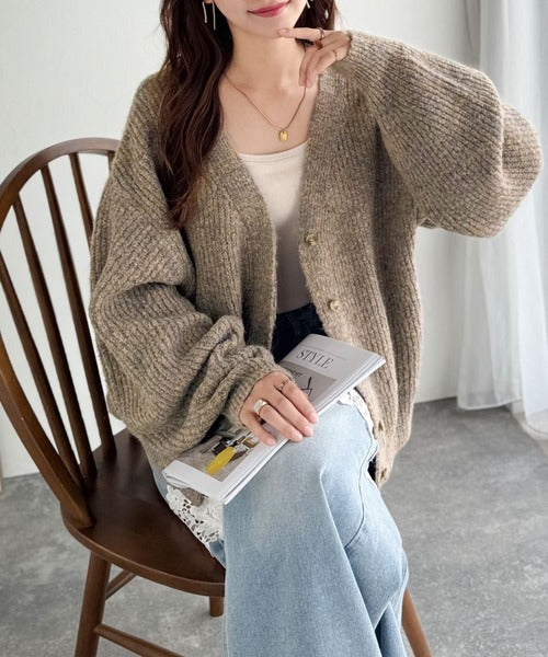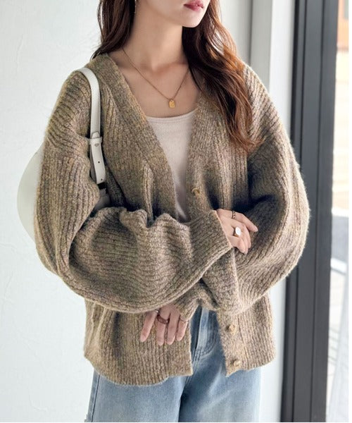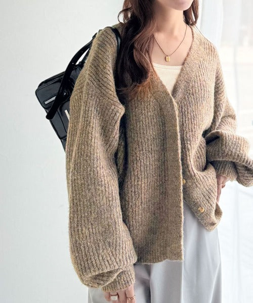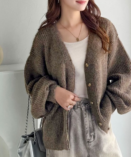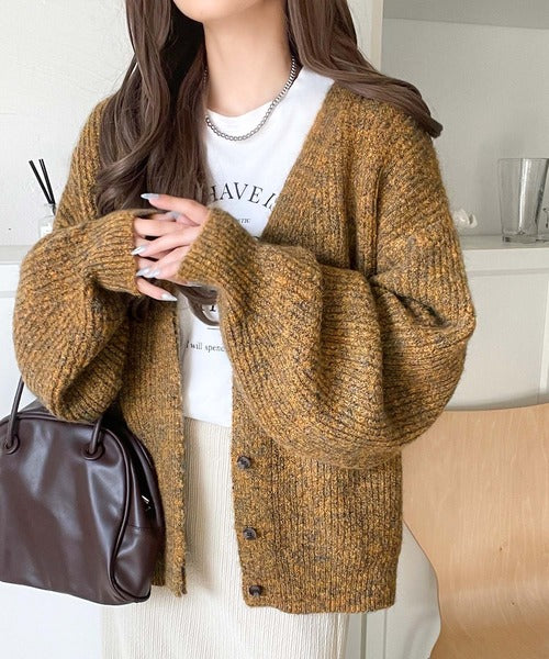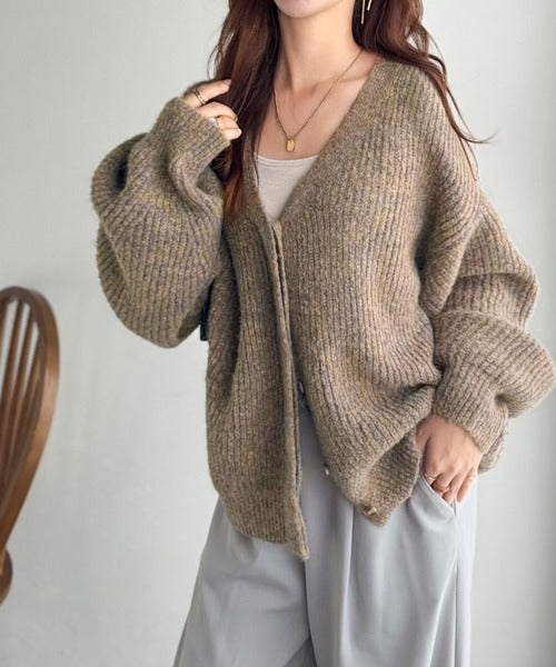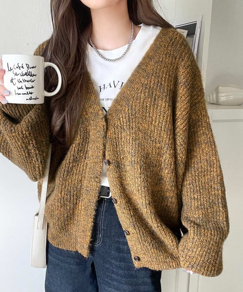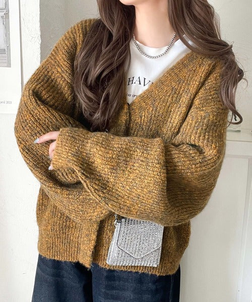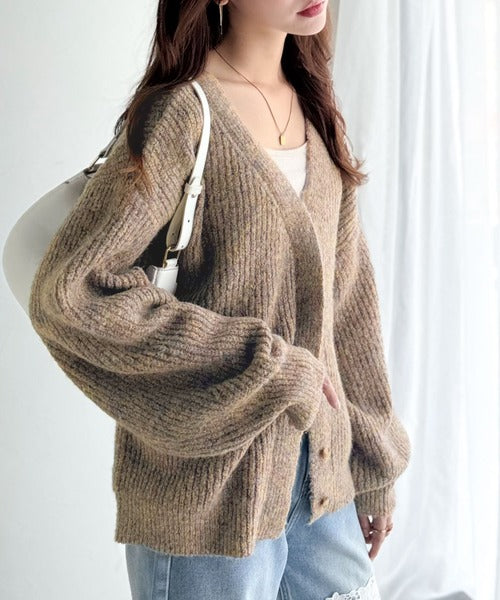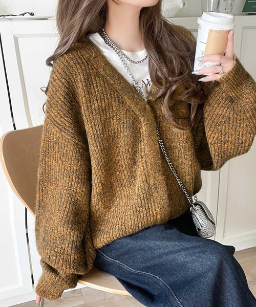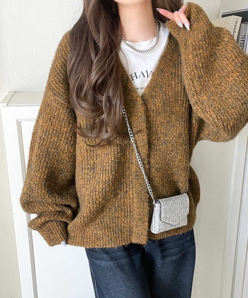 大人上品なニュアンスを演出◎比翼Vネックミックスニットカーディガン(長袖) ce1050314