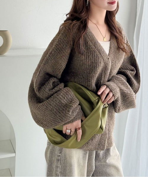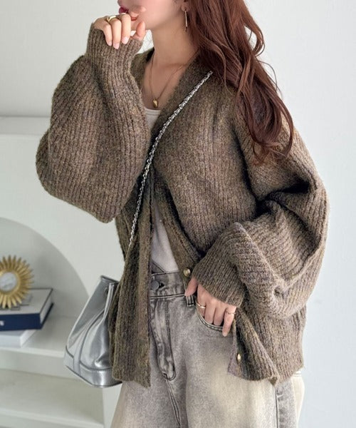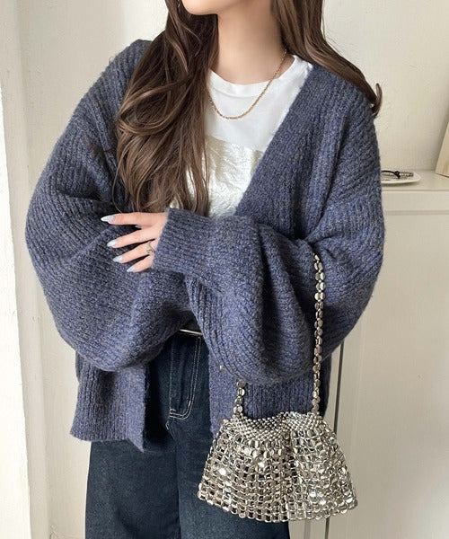 ふんわりとした風合いが魅力の比翼仕立てニットカーディガン。