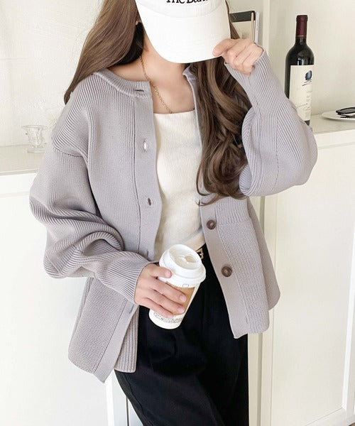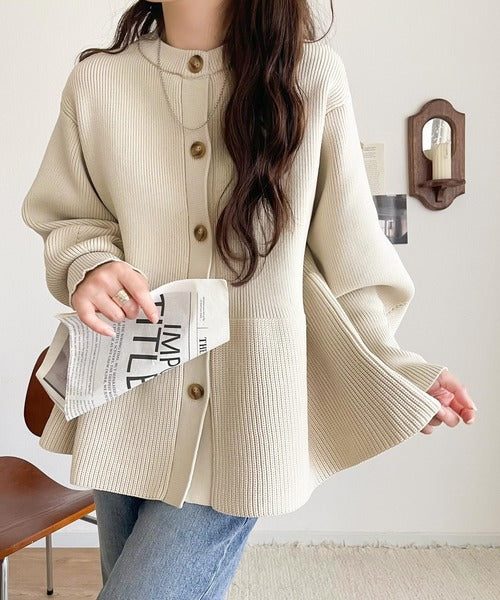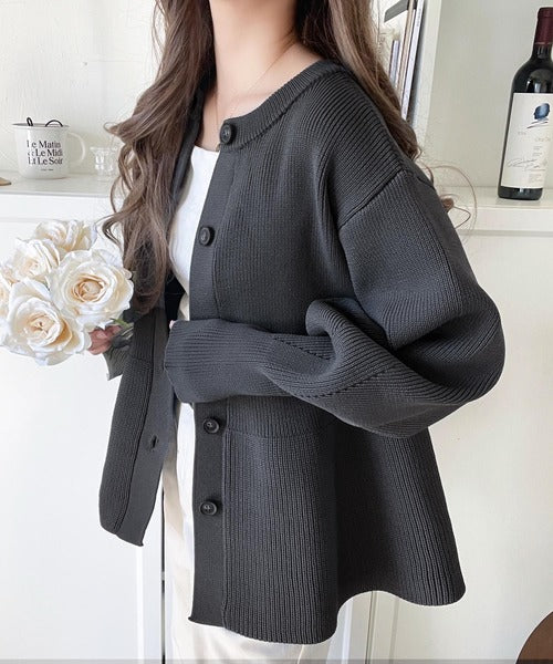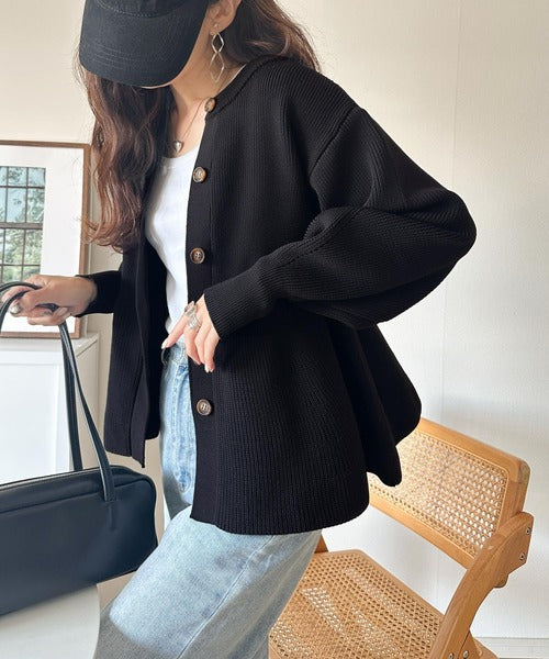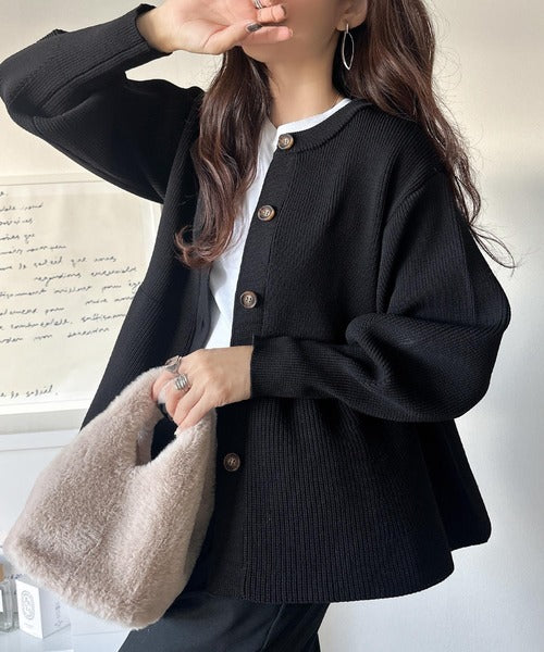 シンプルながらも女性らしいデザインのふんわりカーディガン♪