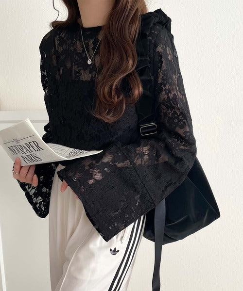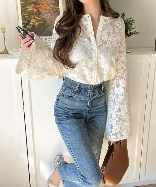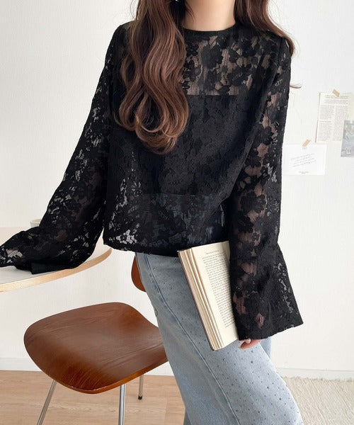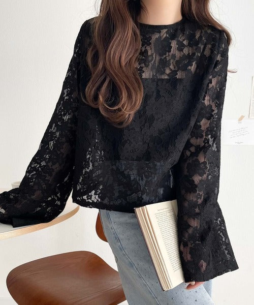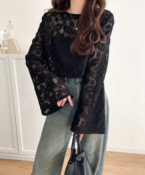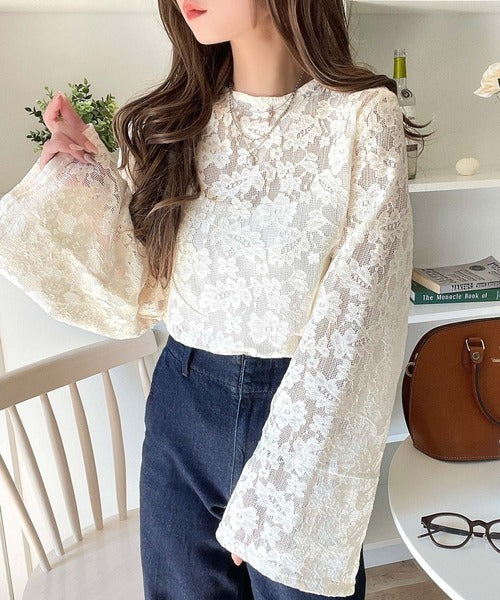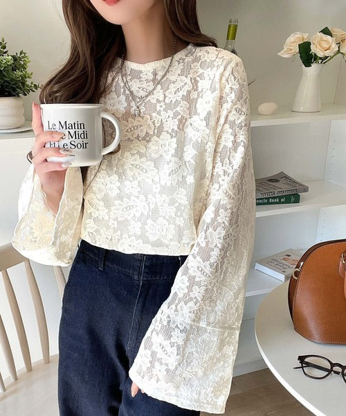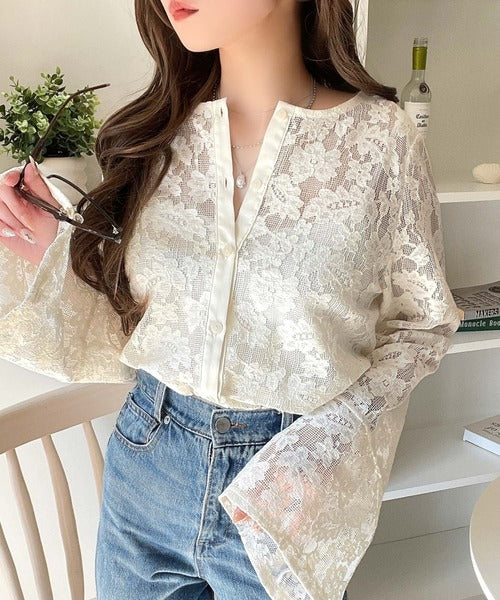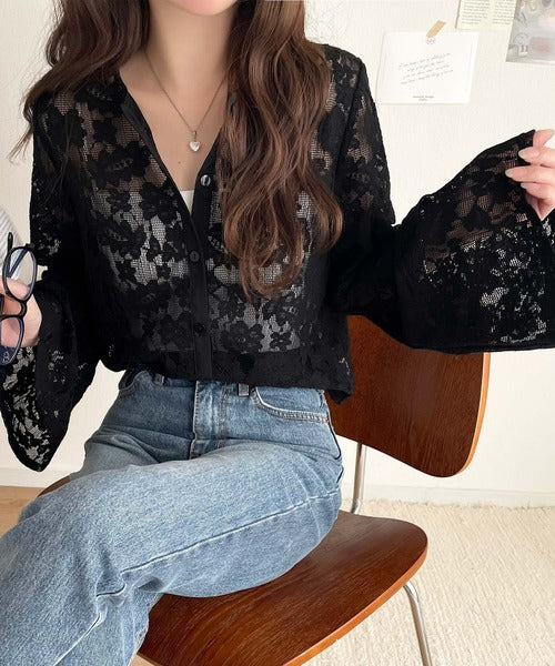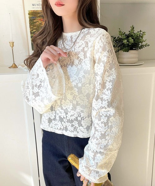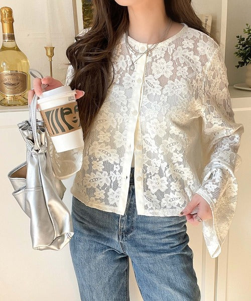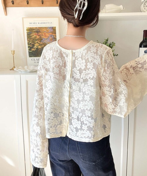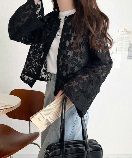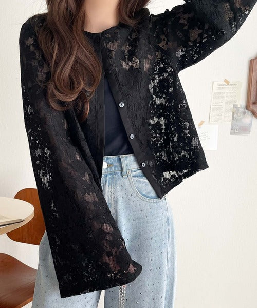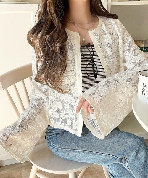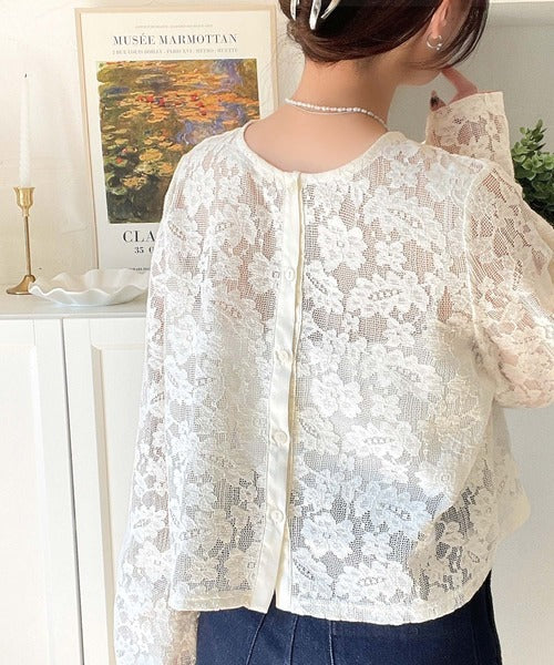 透け感のあるレースが目を惹く。前後2wayメッシュレースショートカーデ(長袖) ce1240072
