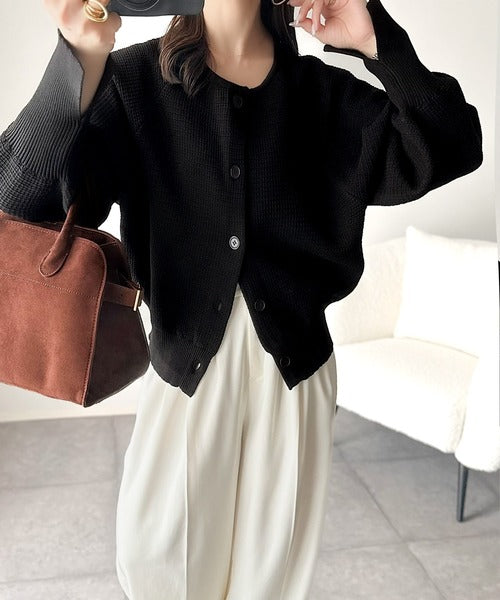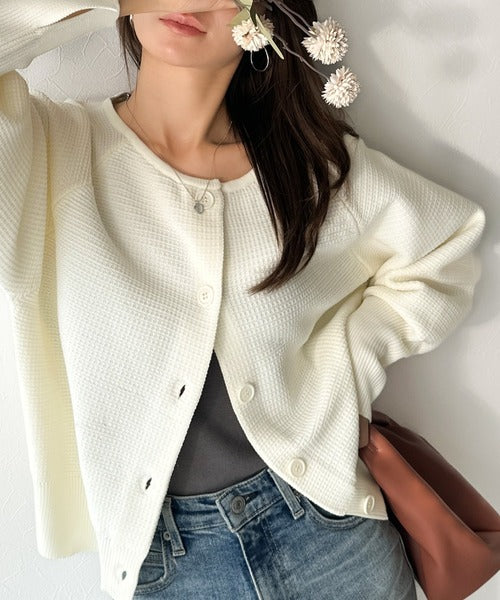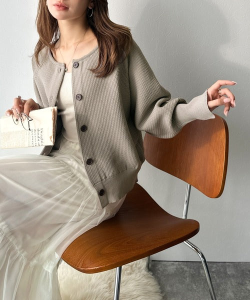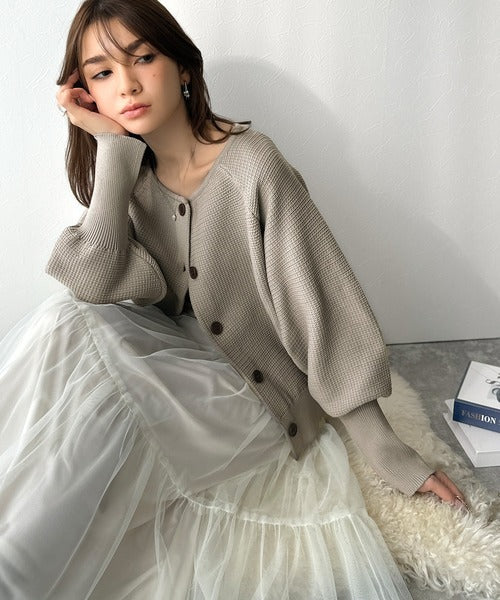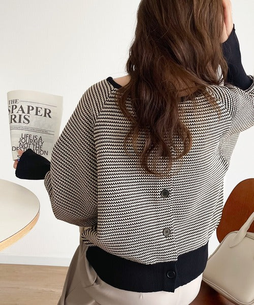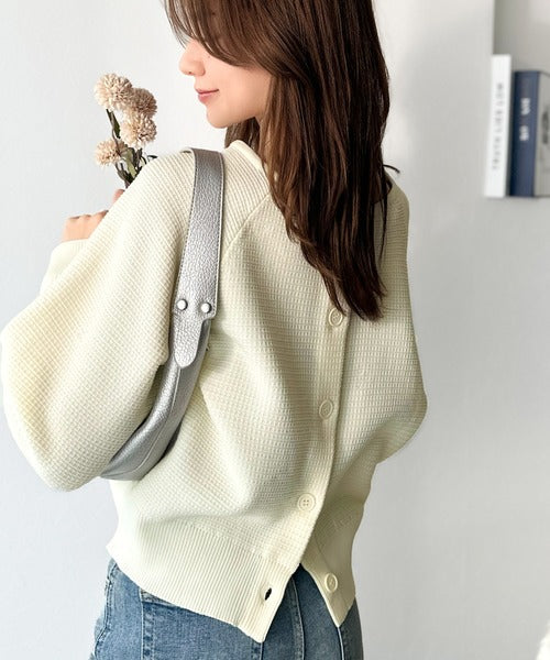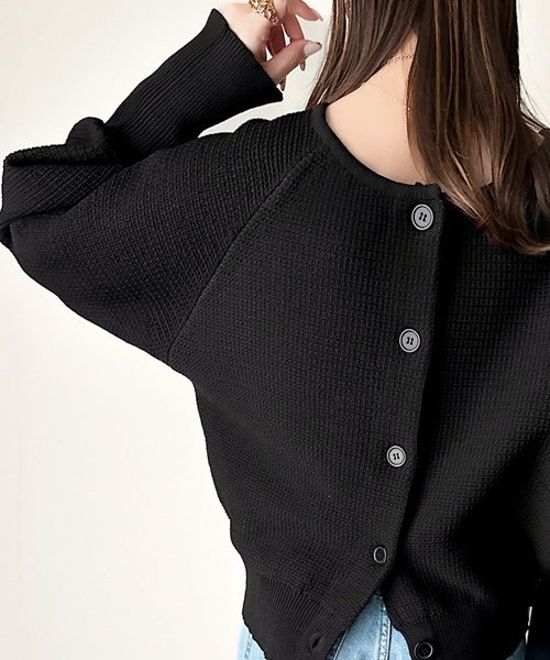 前ボタンでカーディガンに、後ボタンでニットトップスとして2WAYで楽しめる優れもの♪