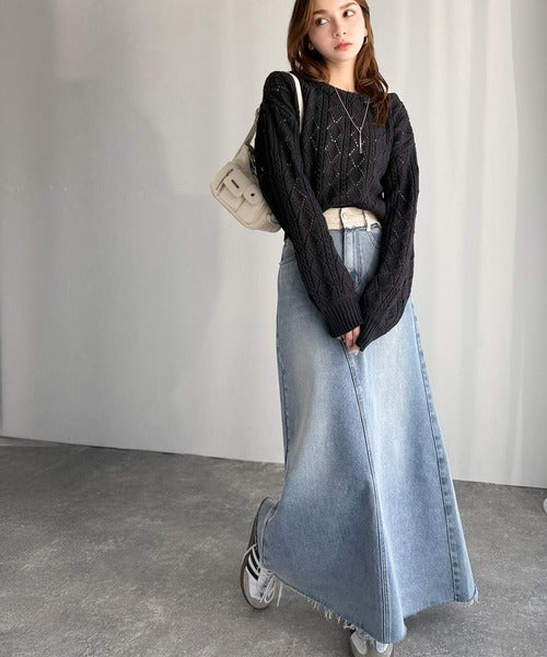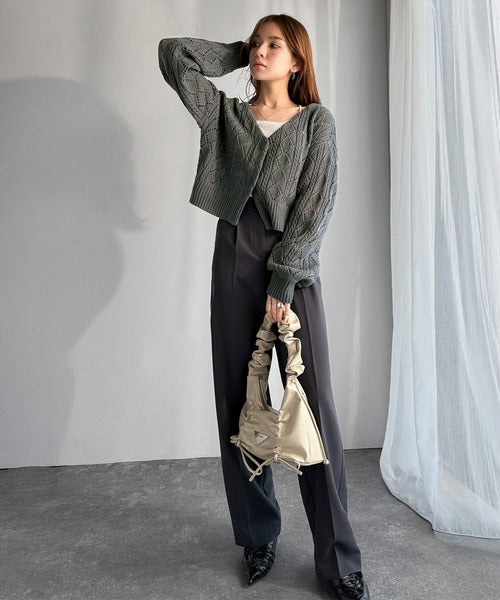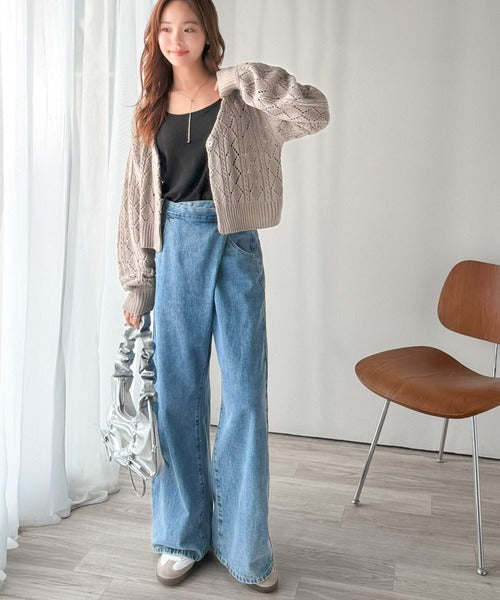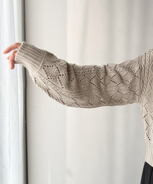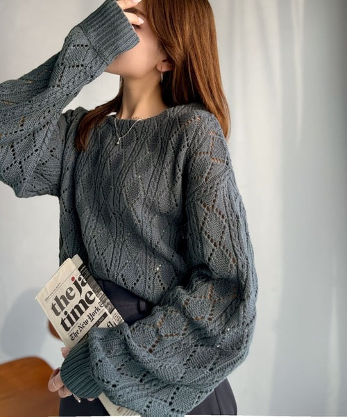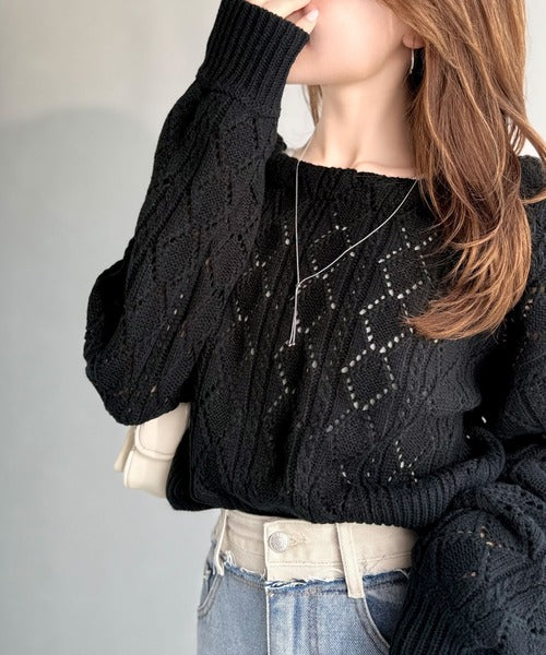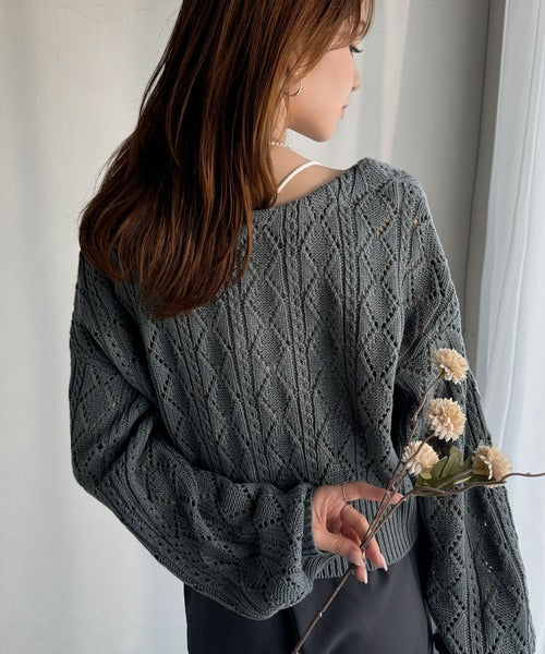 繊細な編み目で肌がうっすら透ける、抜け感たっぷりの仕上がりです。
