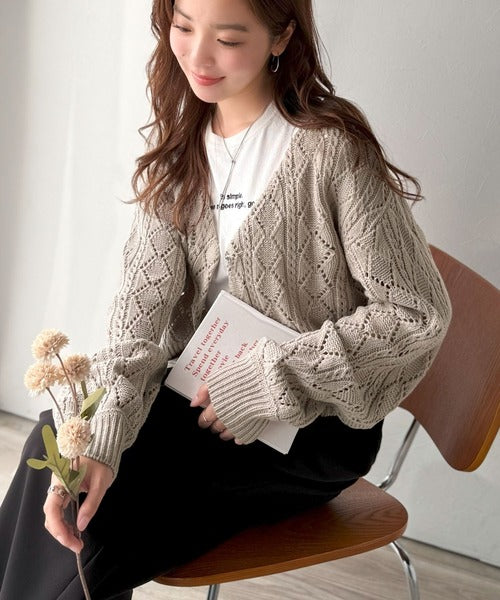 着るたび、雰囲気美人。前後2way格子柄透かし編みショート丈ニットカーディガン(長袖) ce1260448