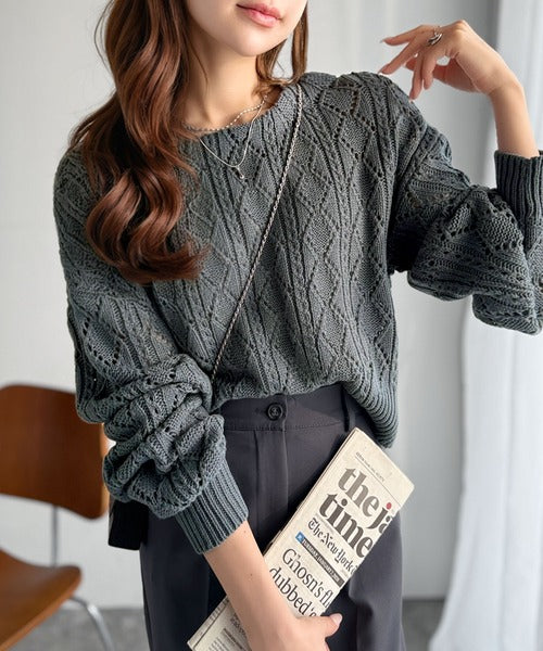 透かし編みの格子柄がほんのり色っぽく、でも上品に◎