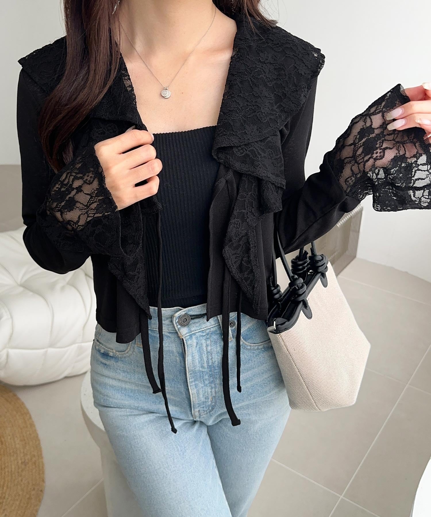 キャミソールやワンピースに羽織ってフェミニンコーデに♡