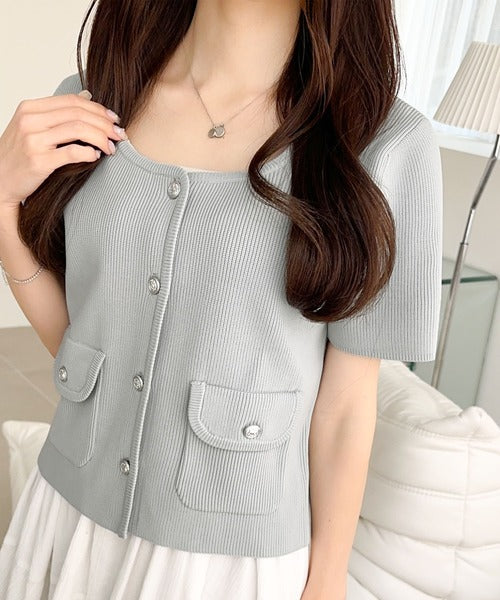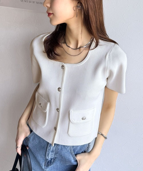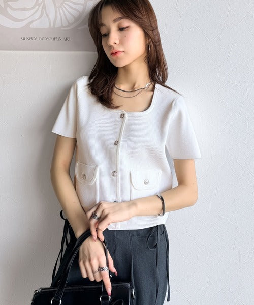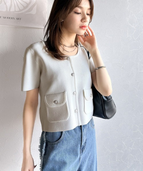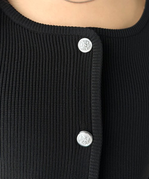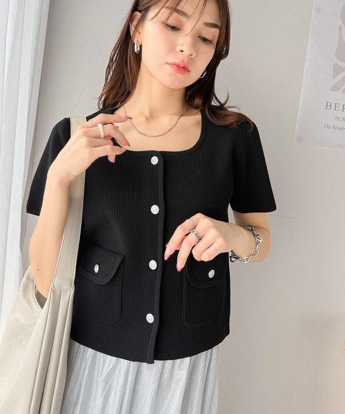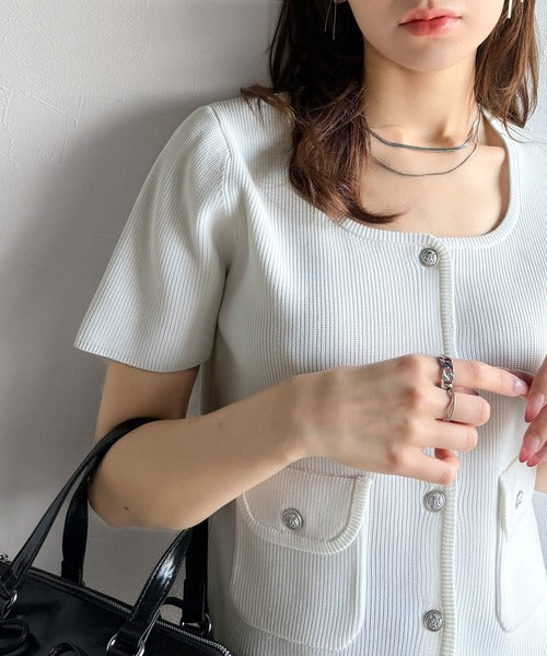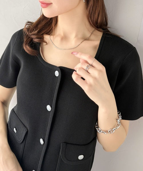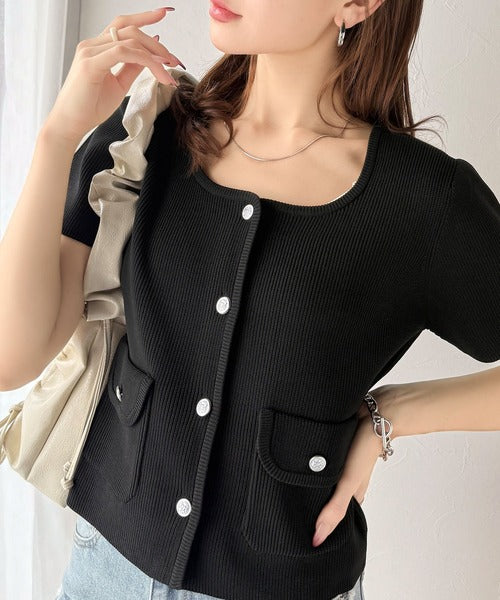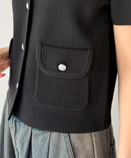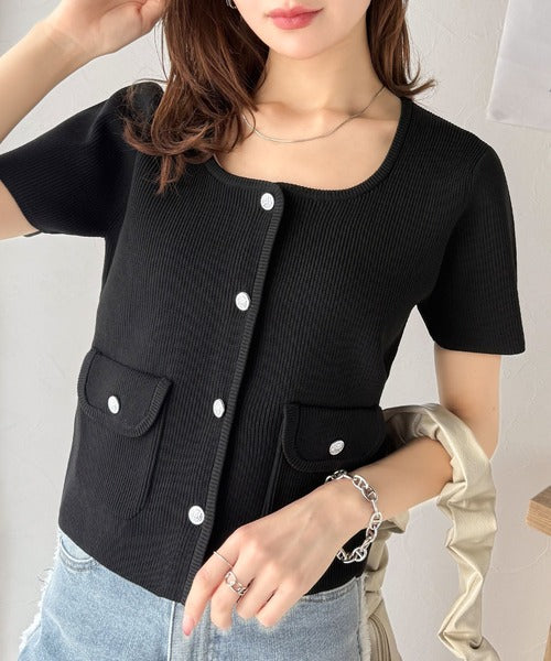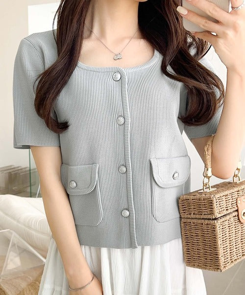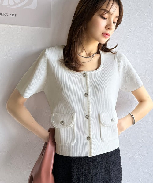 【mily bilet】軽やかな着心地を叶える。エンブレム釦使いエアリーニットジャケット(半袖) mi1359014
