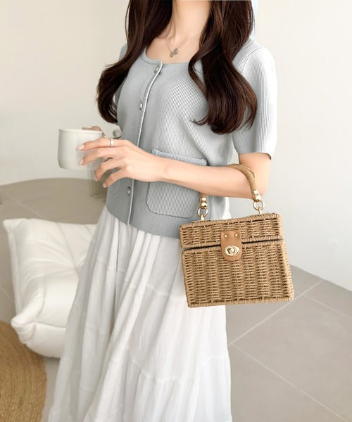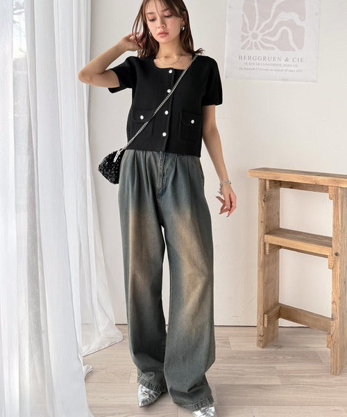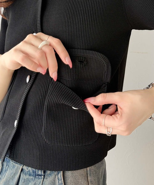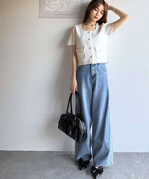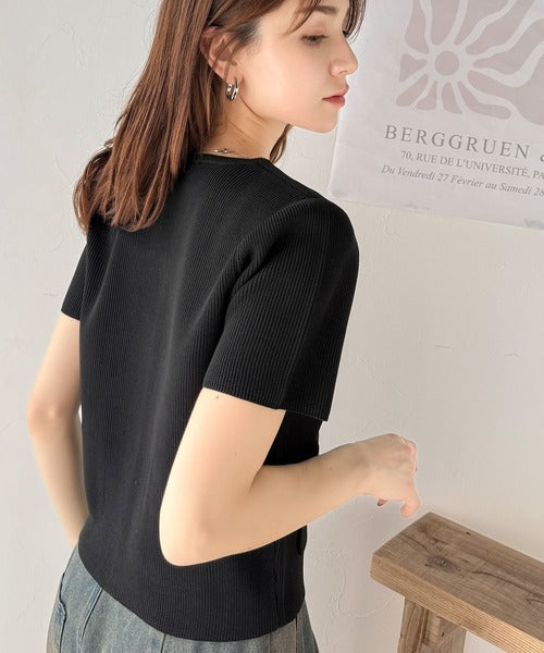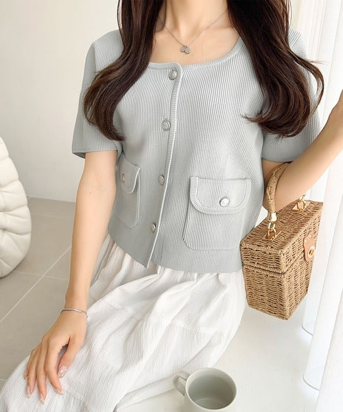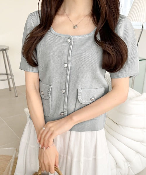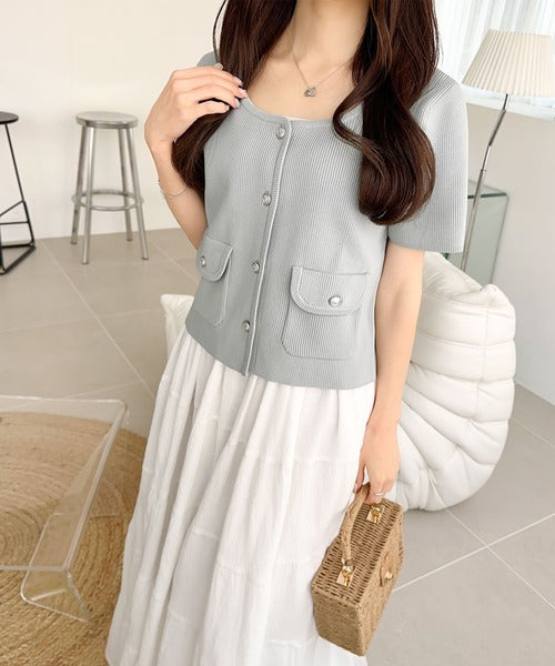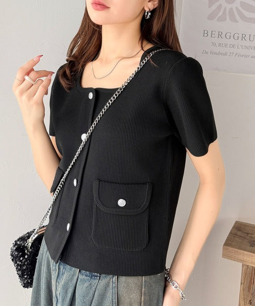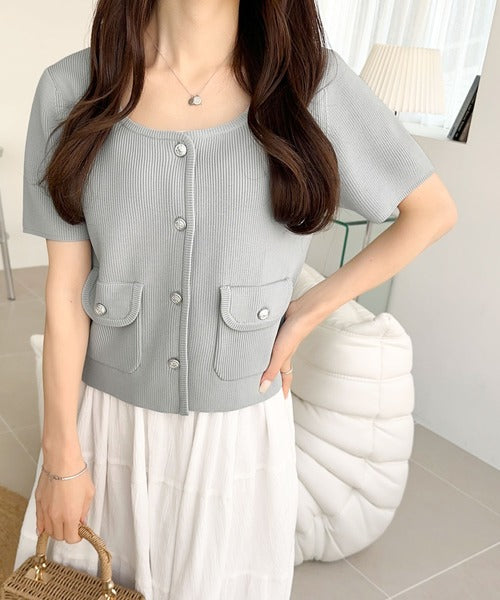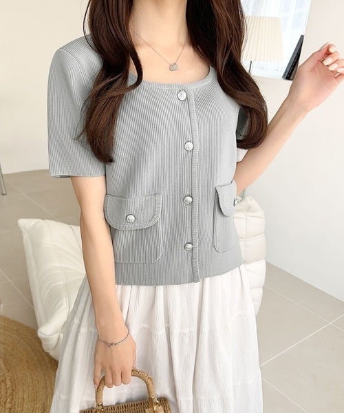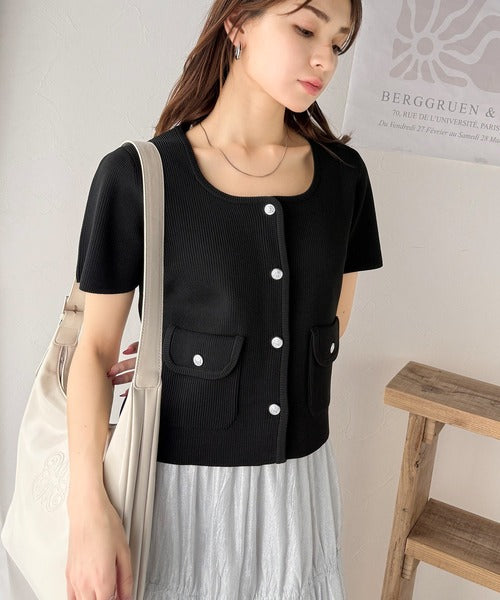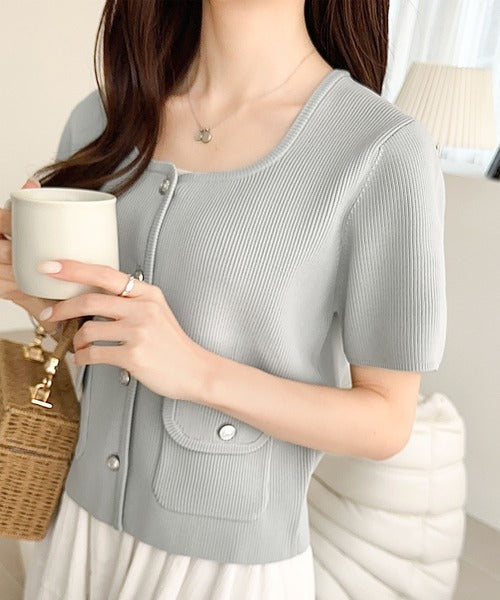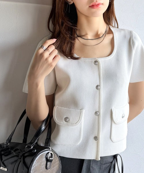 【mily bilet】軽やかな着心地を叶える。エンブレム釦使いエアリーニットジャケット(半袖) mi1359014