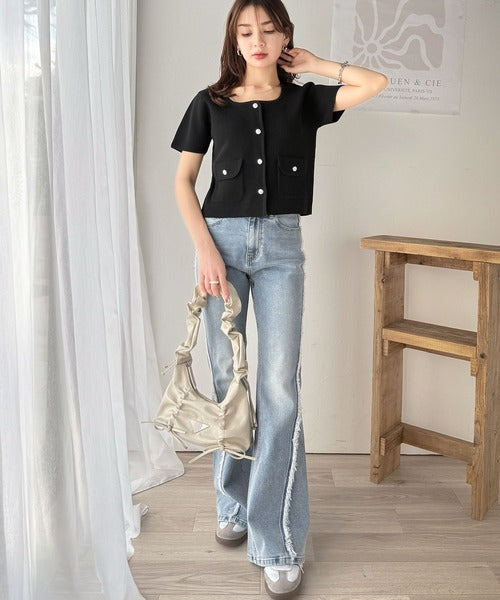 その日の気分に合わせてデニムやフレアパンツを合わせてもOK◎