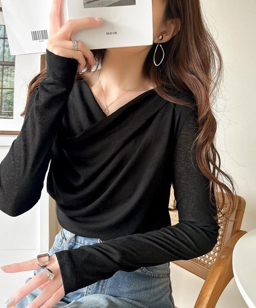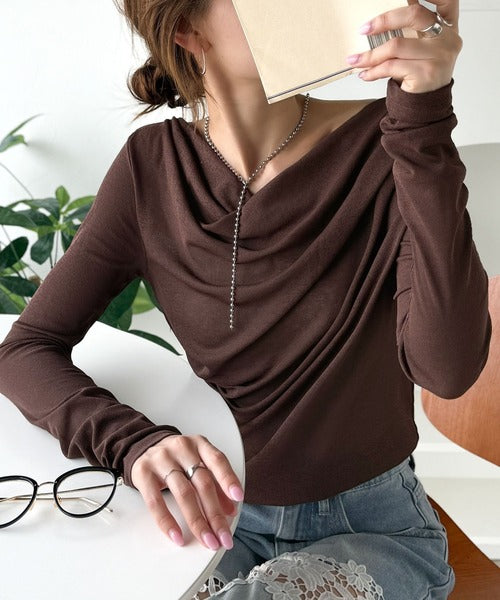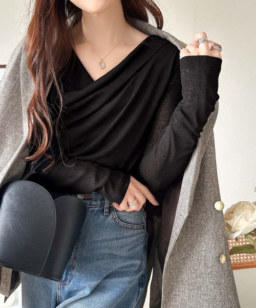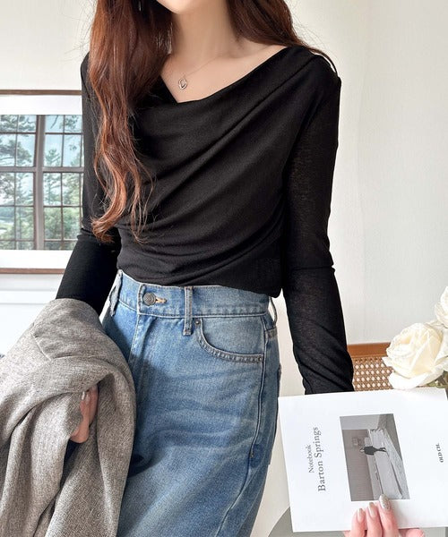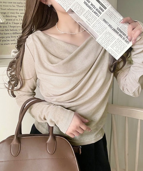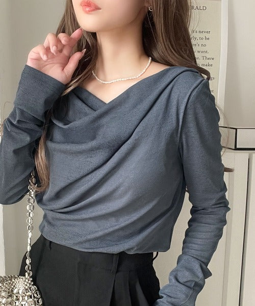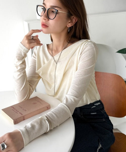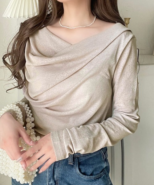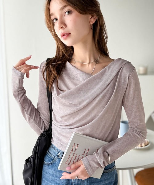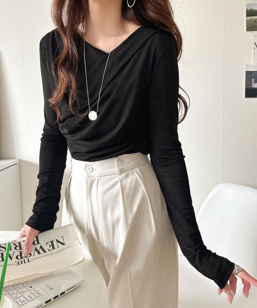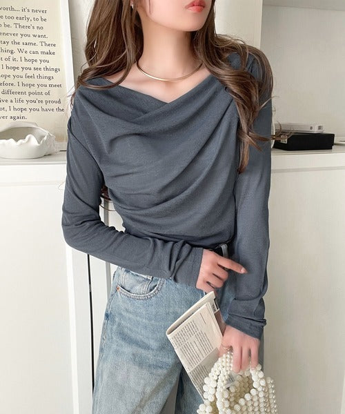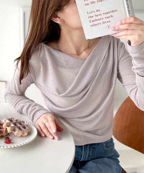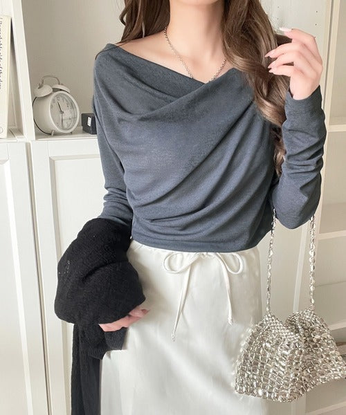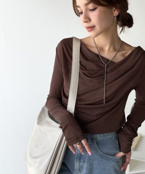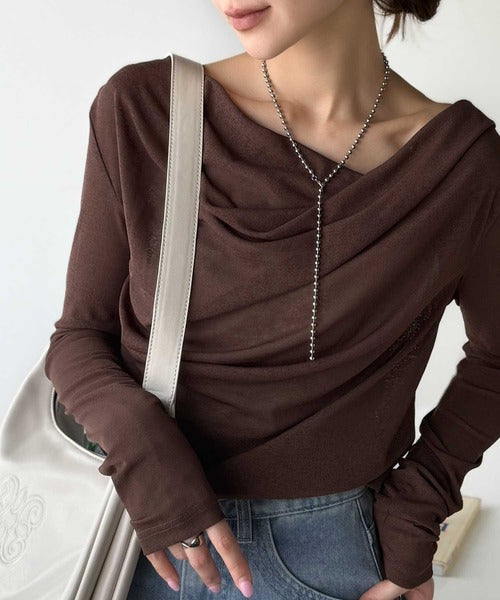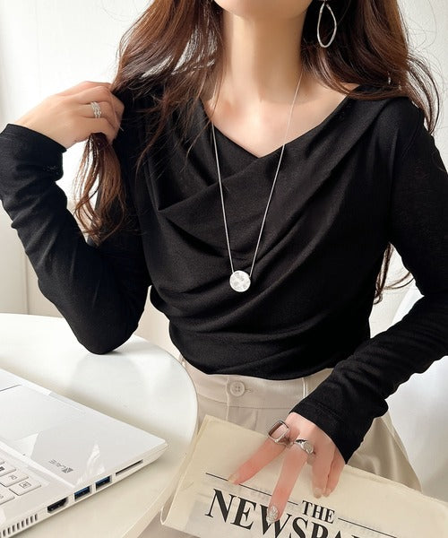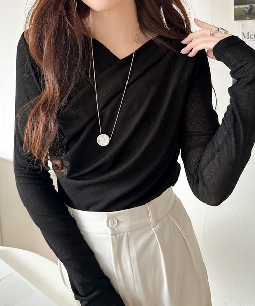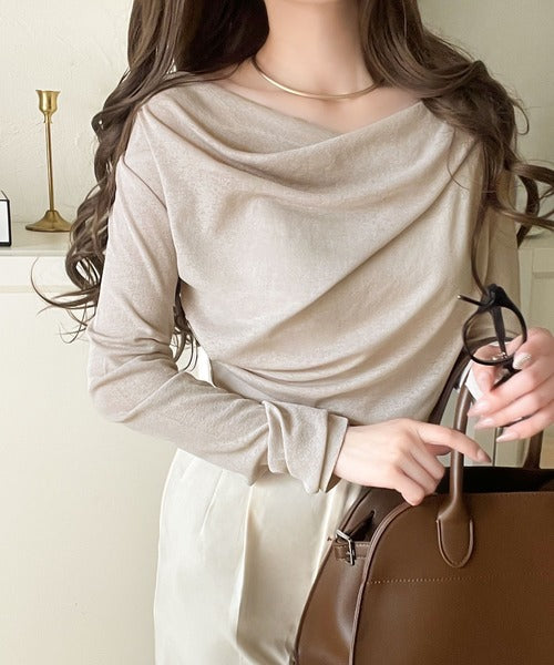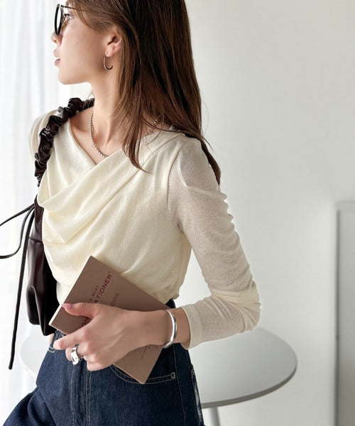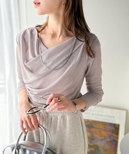 大人のとろみ×透け感。女性らしさが香り立つ。スラブシアードレープトップス(長袖) ce1010473