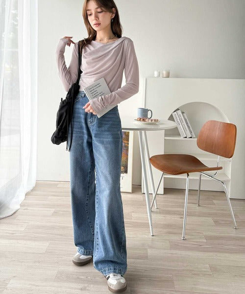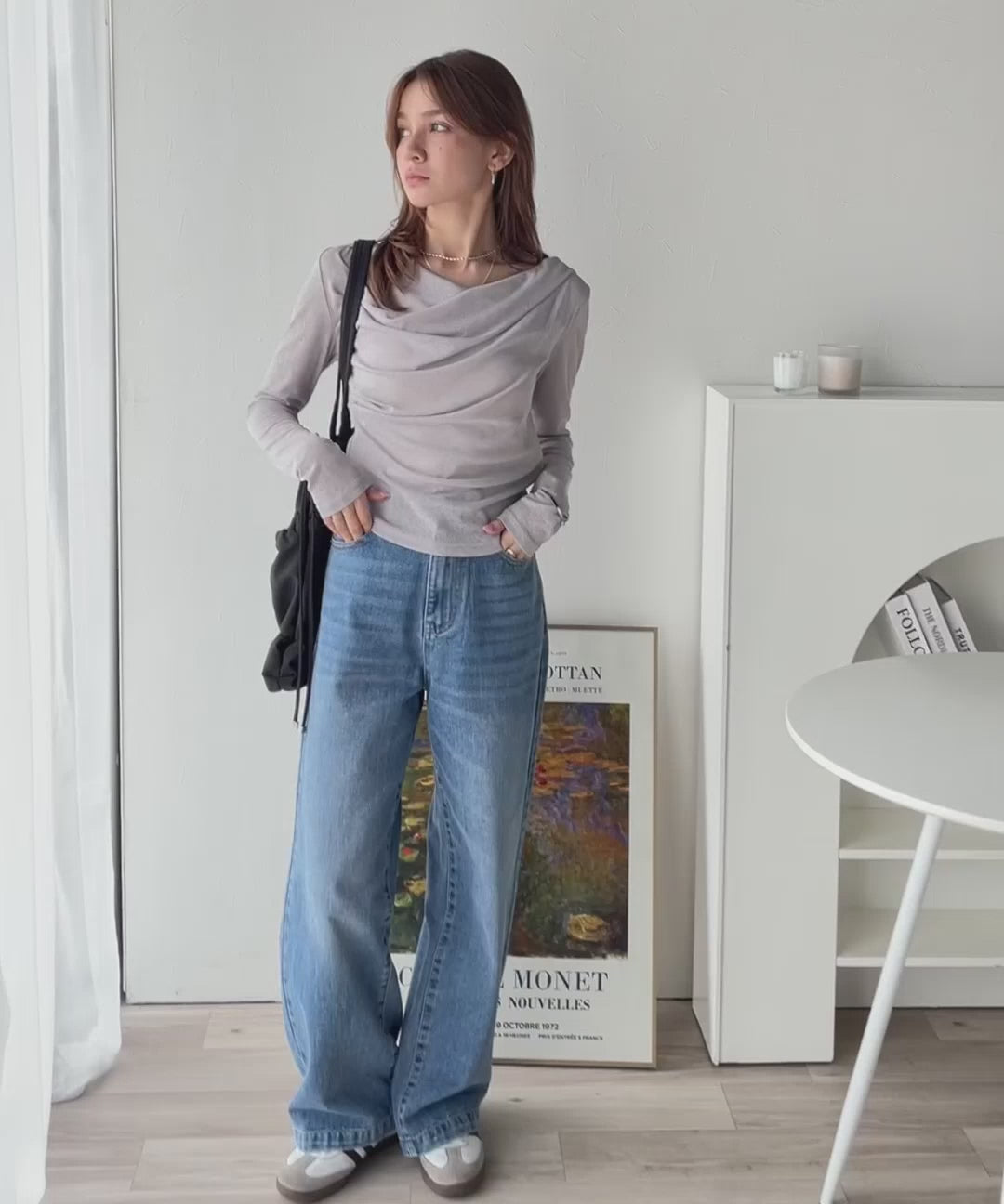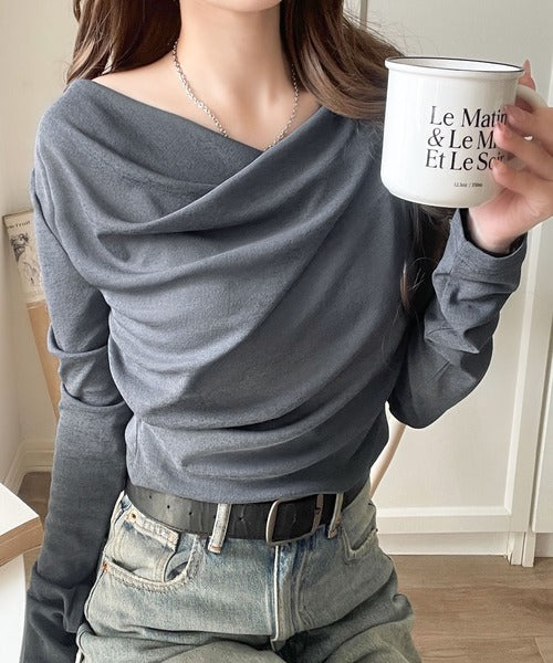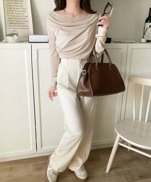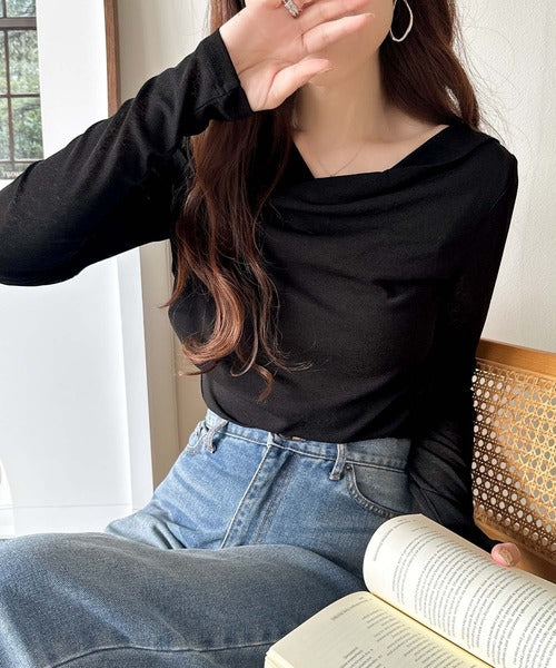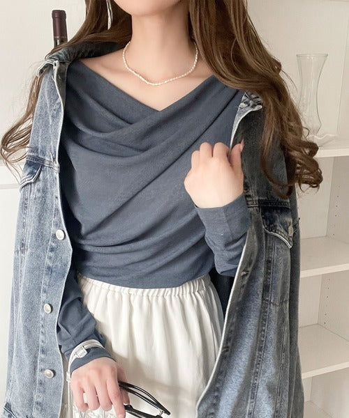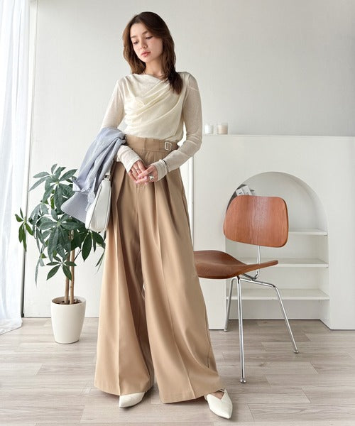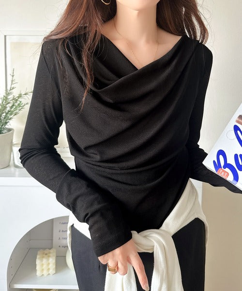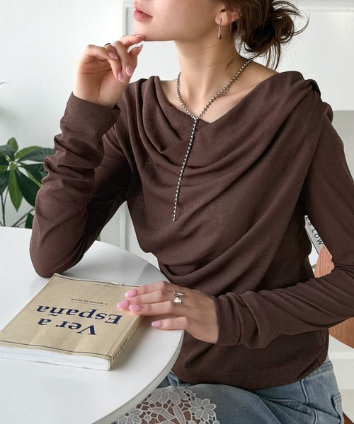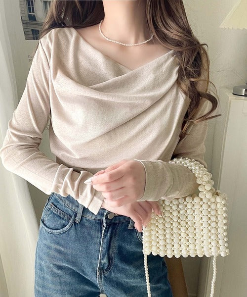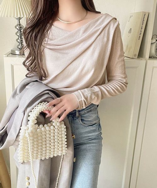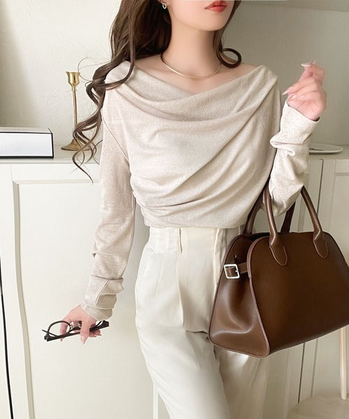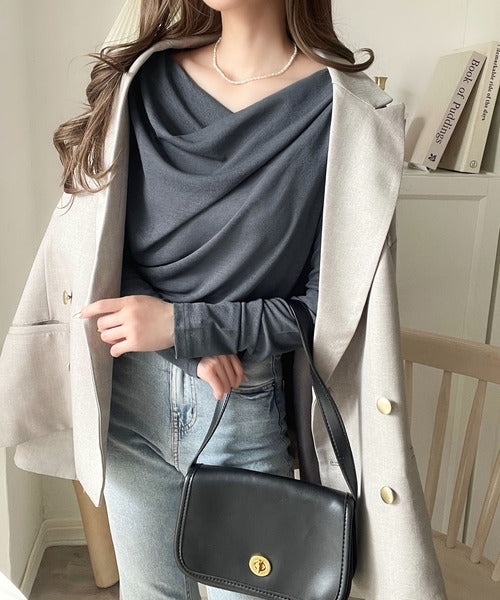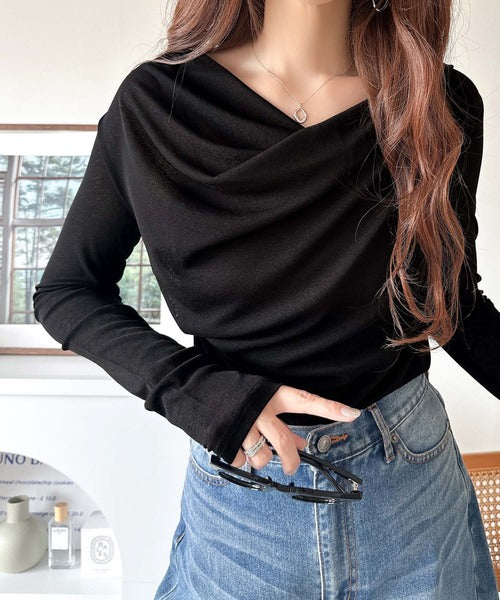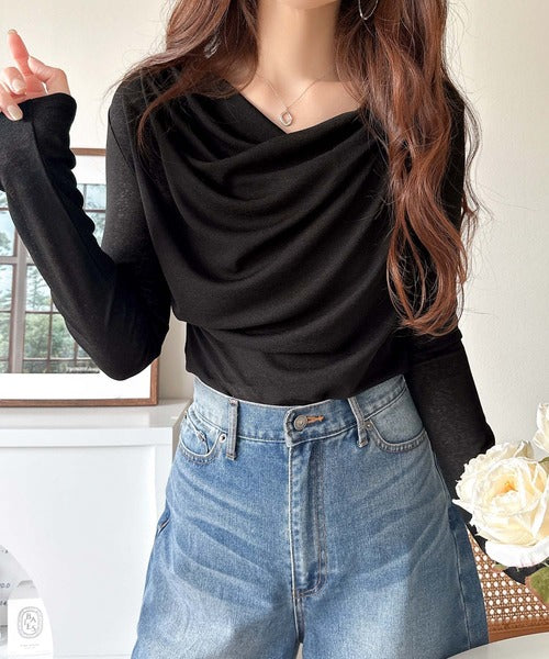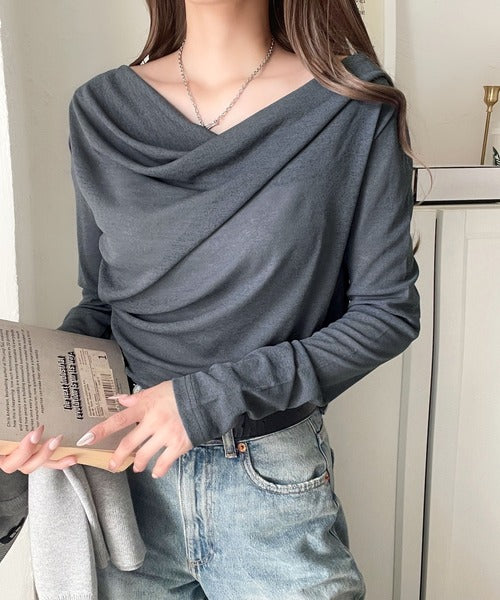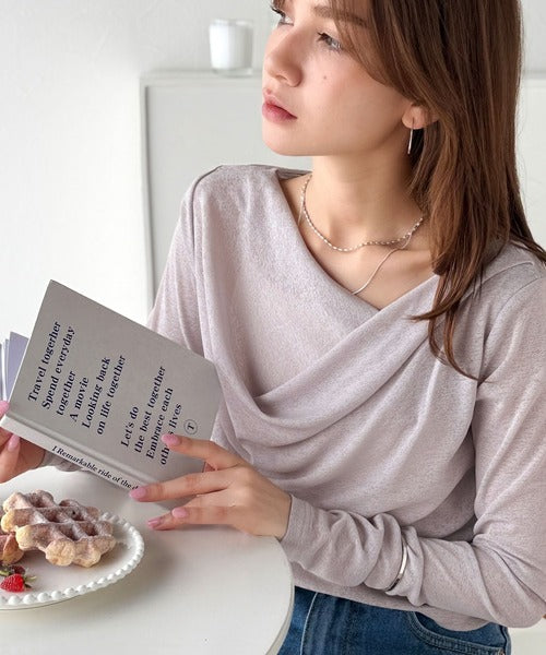 大人のとろみ×透け感。女性らしさが香り立つ。スラブシアードレープトップス(長袖) ce1010473