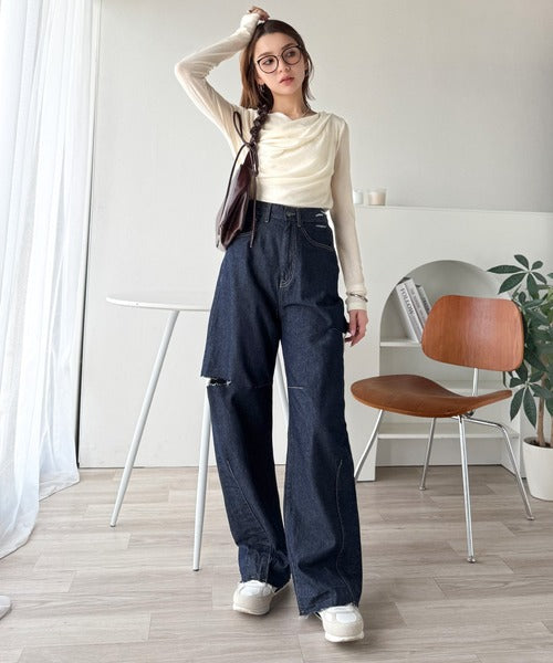 カジュアルコーデを楽しむならカーブデニムやフレアパンツ合わせるのがオススメ!
