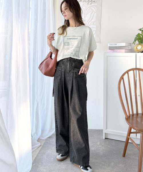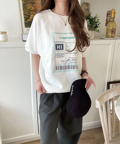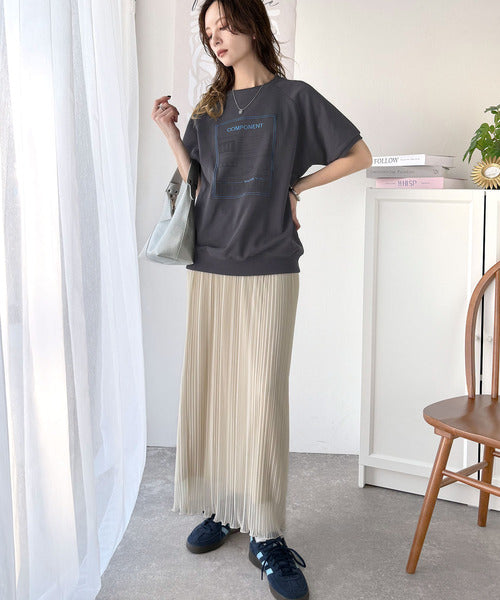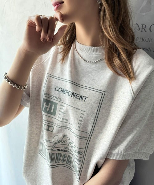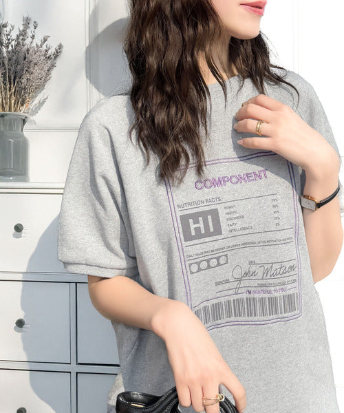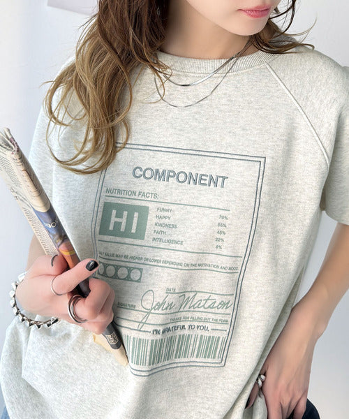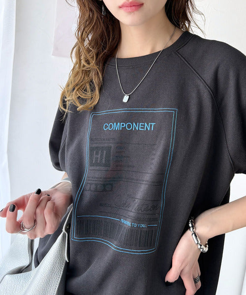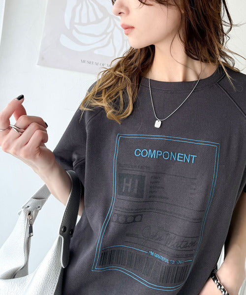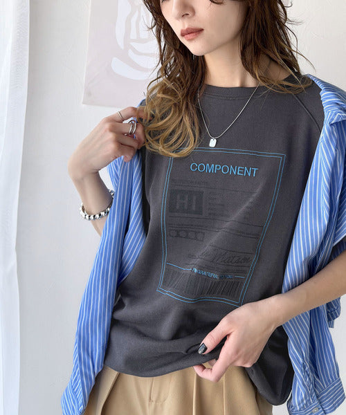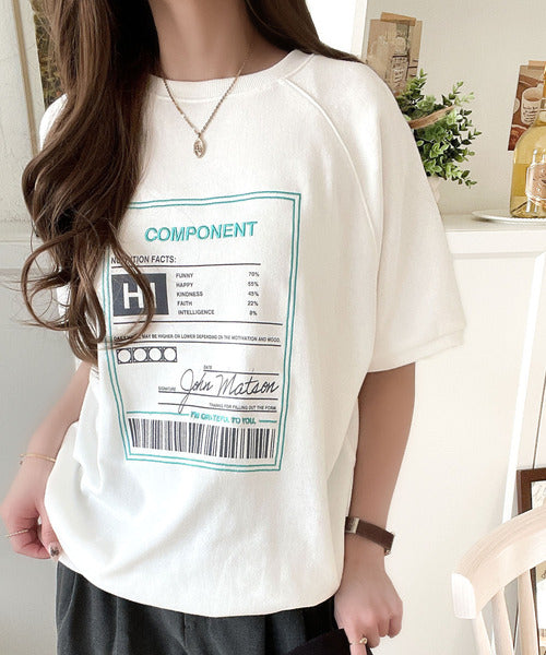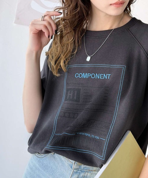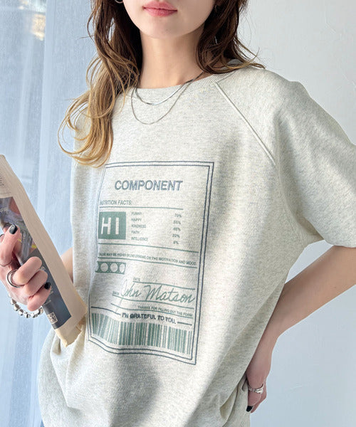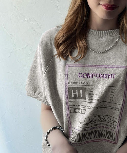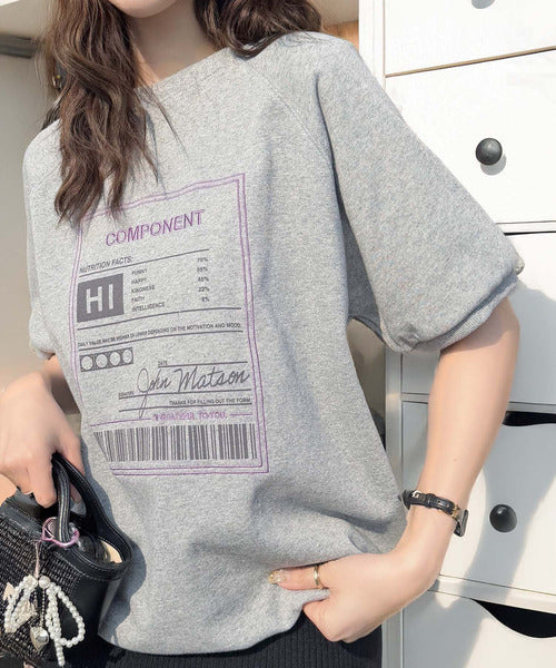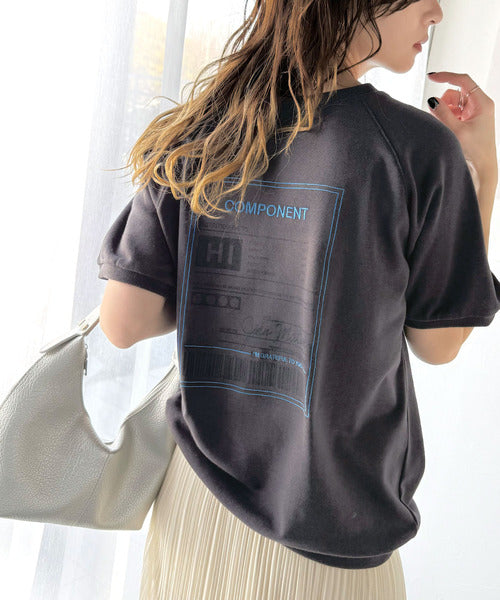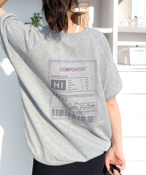 大人カジュアルの新定番。前後2wayグラフィック刺繍&プリント裏毛スウェットトップス(半袖) ce1260367