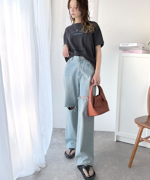 その日の気分に合わせてデニムやフレアパンツを合わせてもOK◎