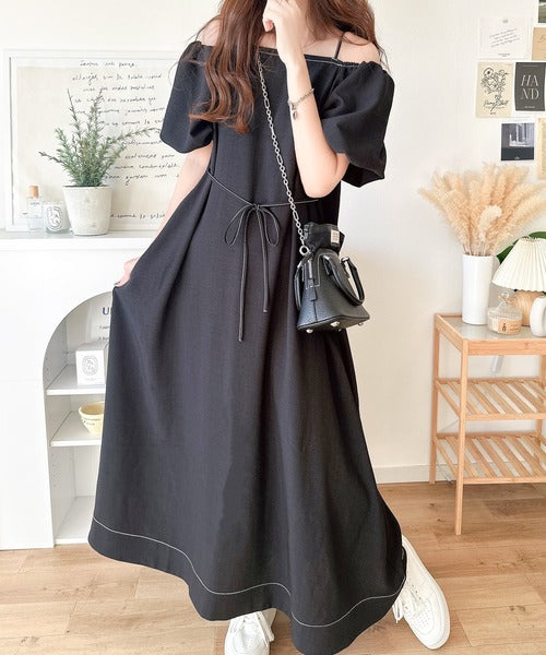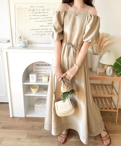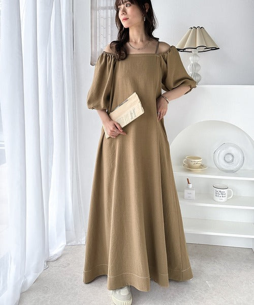お洒落に差をつける、大人女子。2wayパフスリーブロング丈ワンピース ce1260375