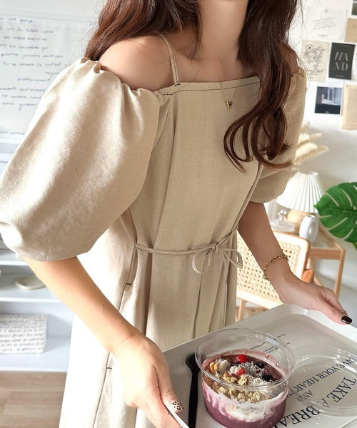 こちらの2wayパフスリーブワンピースは、自分らしいスタイルを表現しつつ、さりげないセンスをアピールできる一着です。