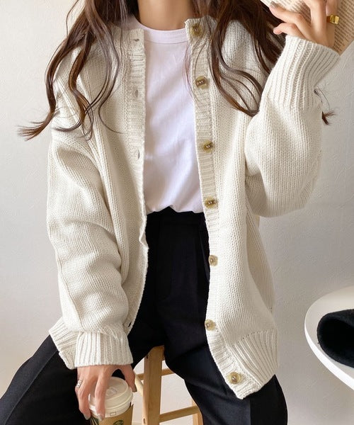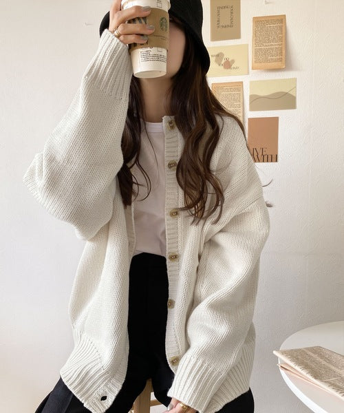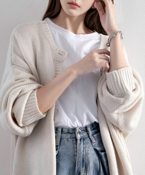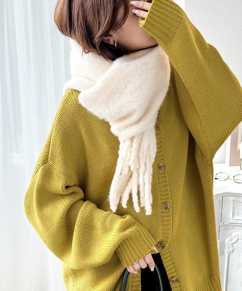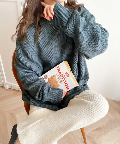 ローゲージのざっくりした編み目とやわらかな着心地で、