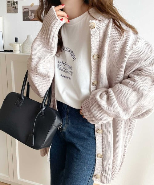 ざっくり羽織れるので春先はそのままアウターとしても着られます。