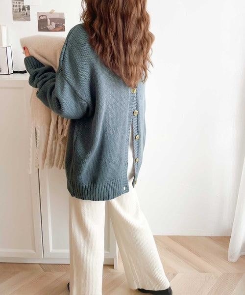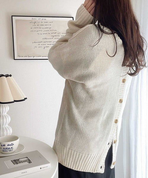 魅力的な後ろ姿を演出する、バッグボタンデザインの2WAYリバーシブルニット。