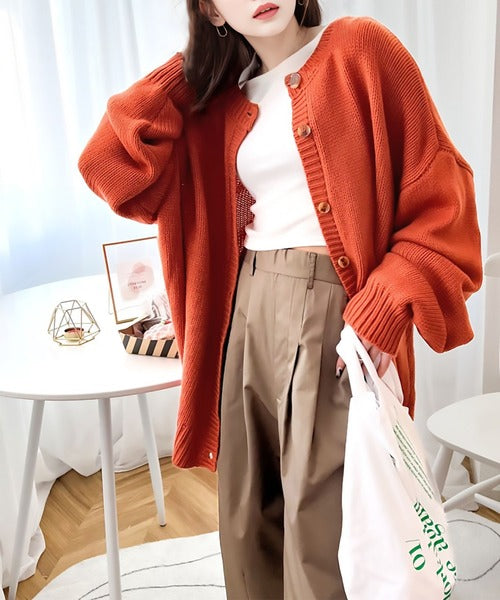 カーディガンデザインは、寒暖差の大きい春先の体温調節にもぴったり!