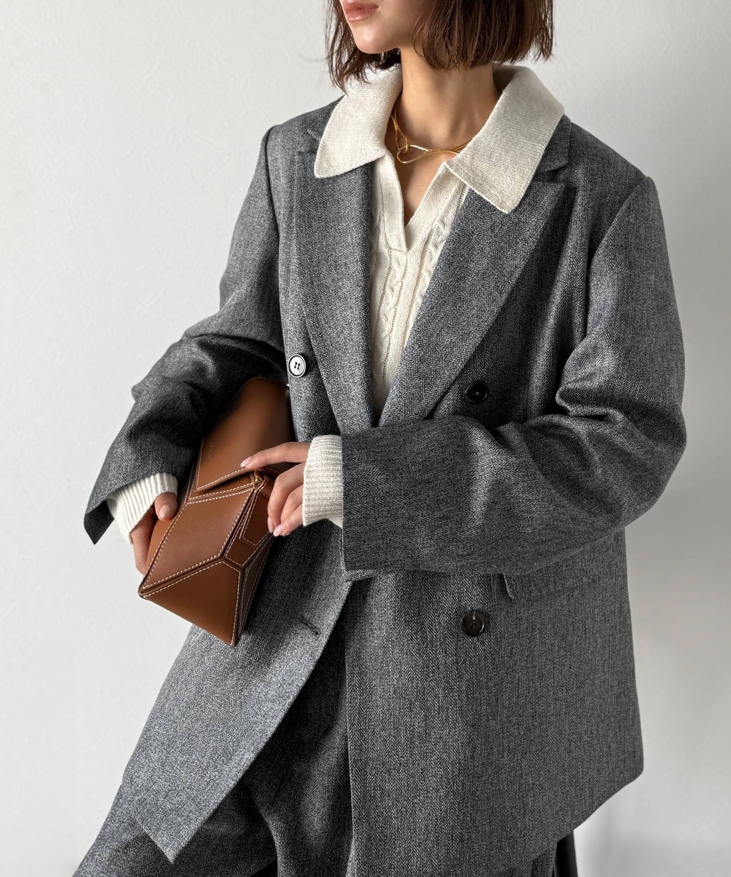 奥行きあるヘリンボーンで魅せる、品格漂うダブルジャケット。