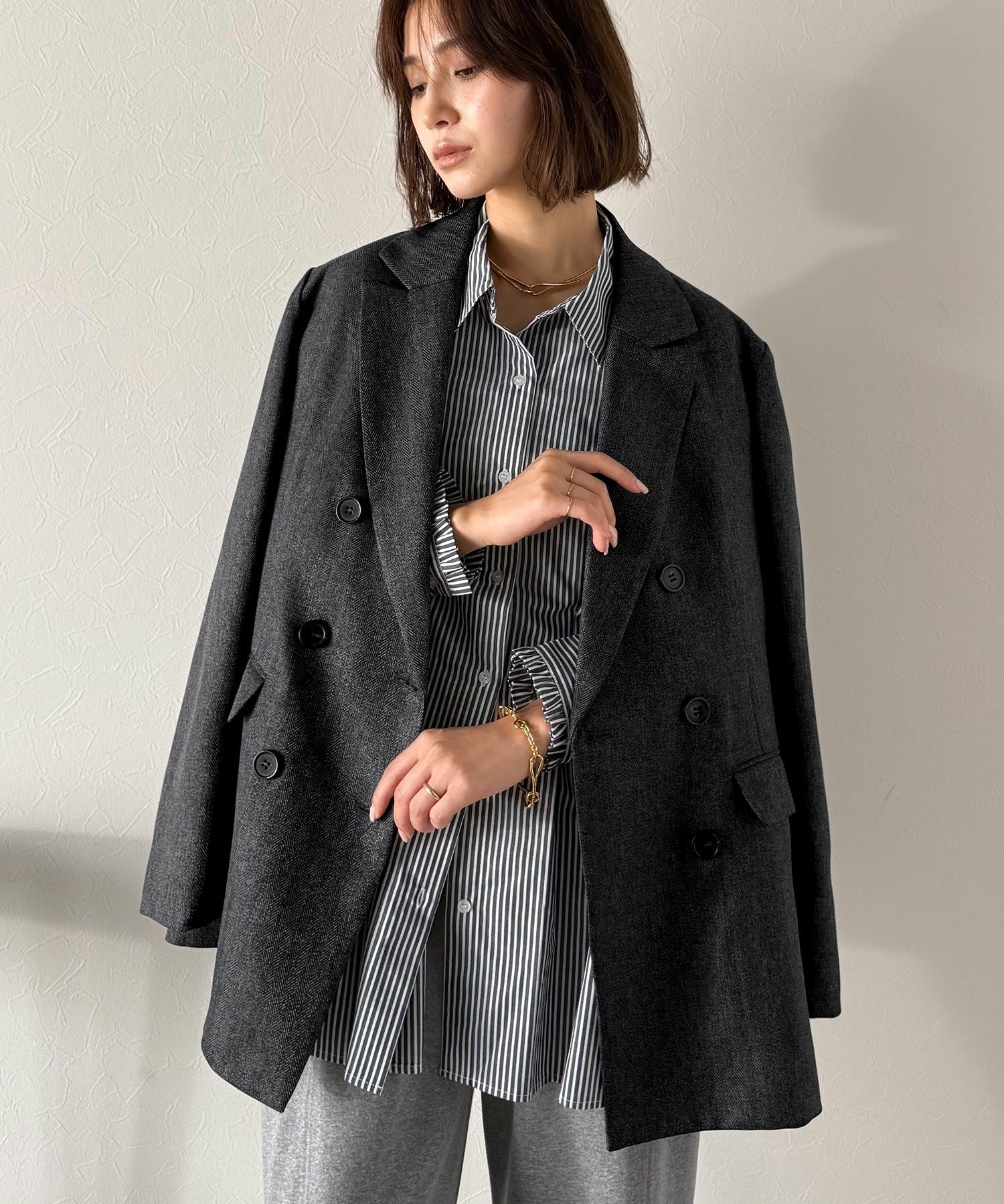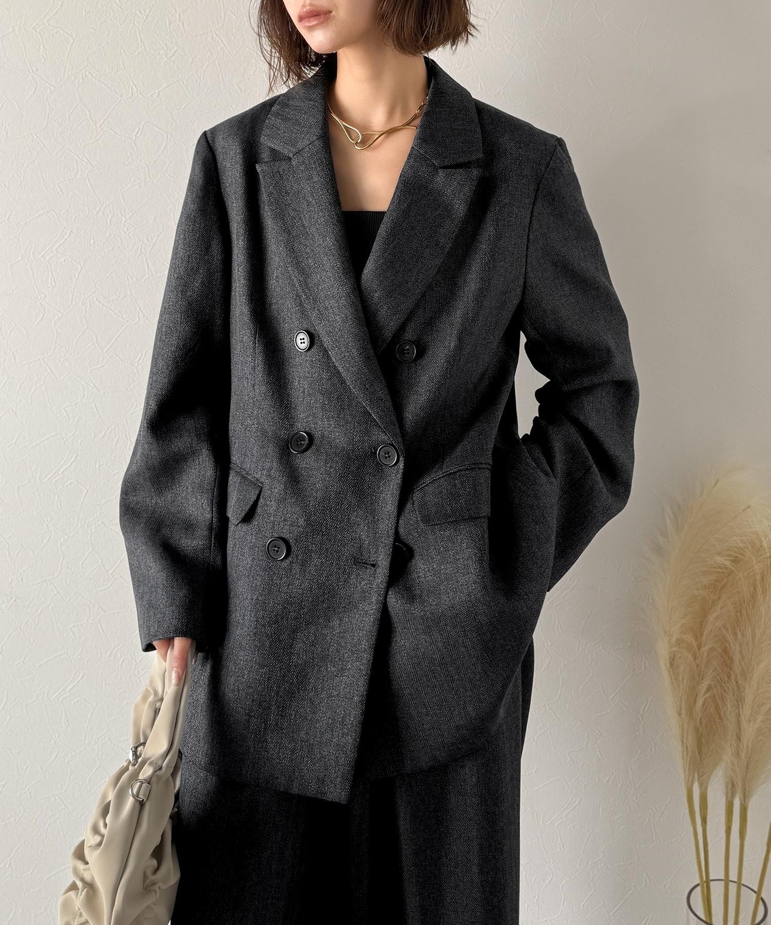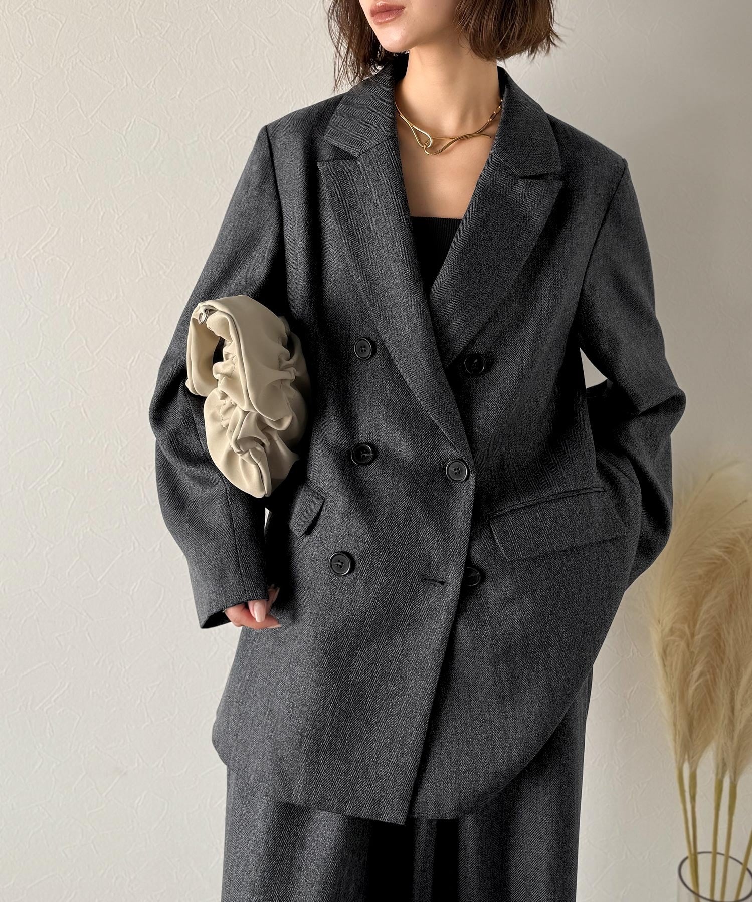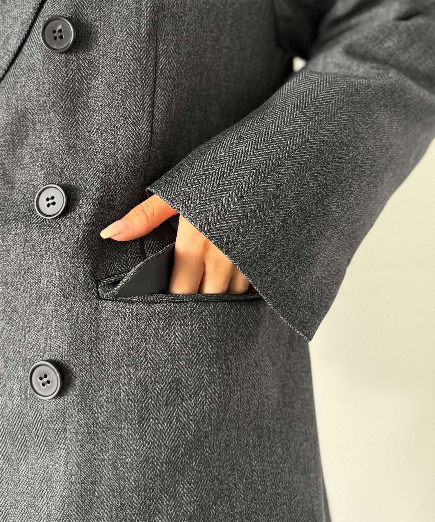 シックなヘリンボーン素材を活かした、3段ボタンダブルジャケット。