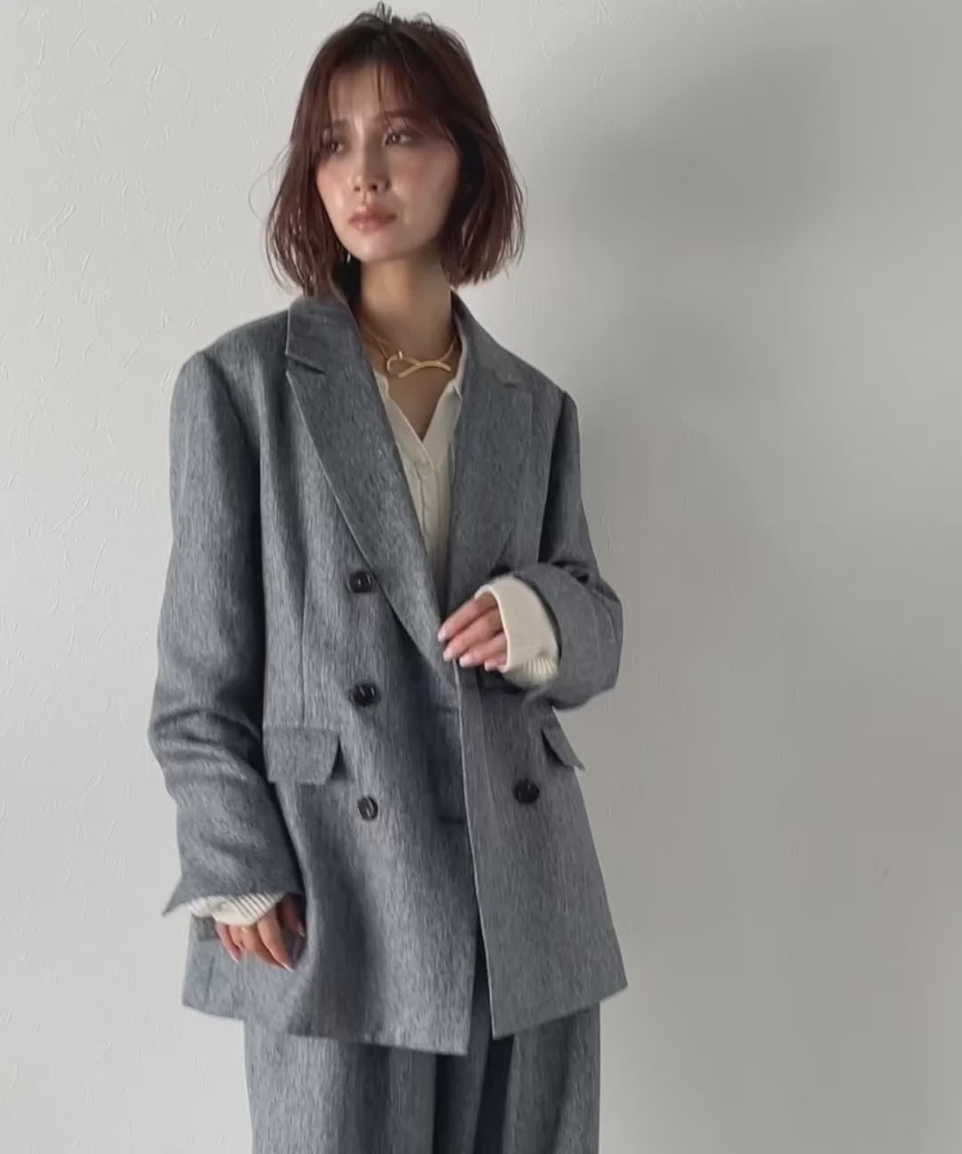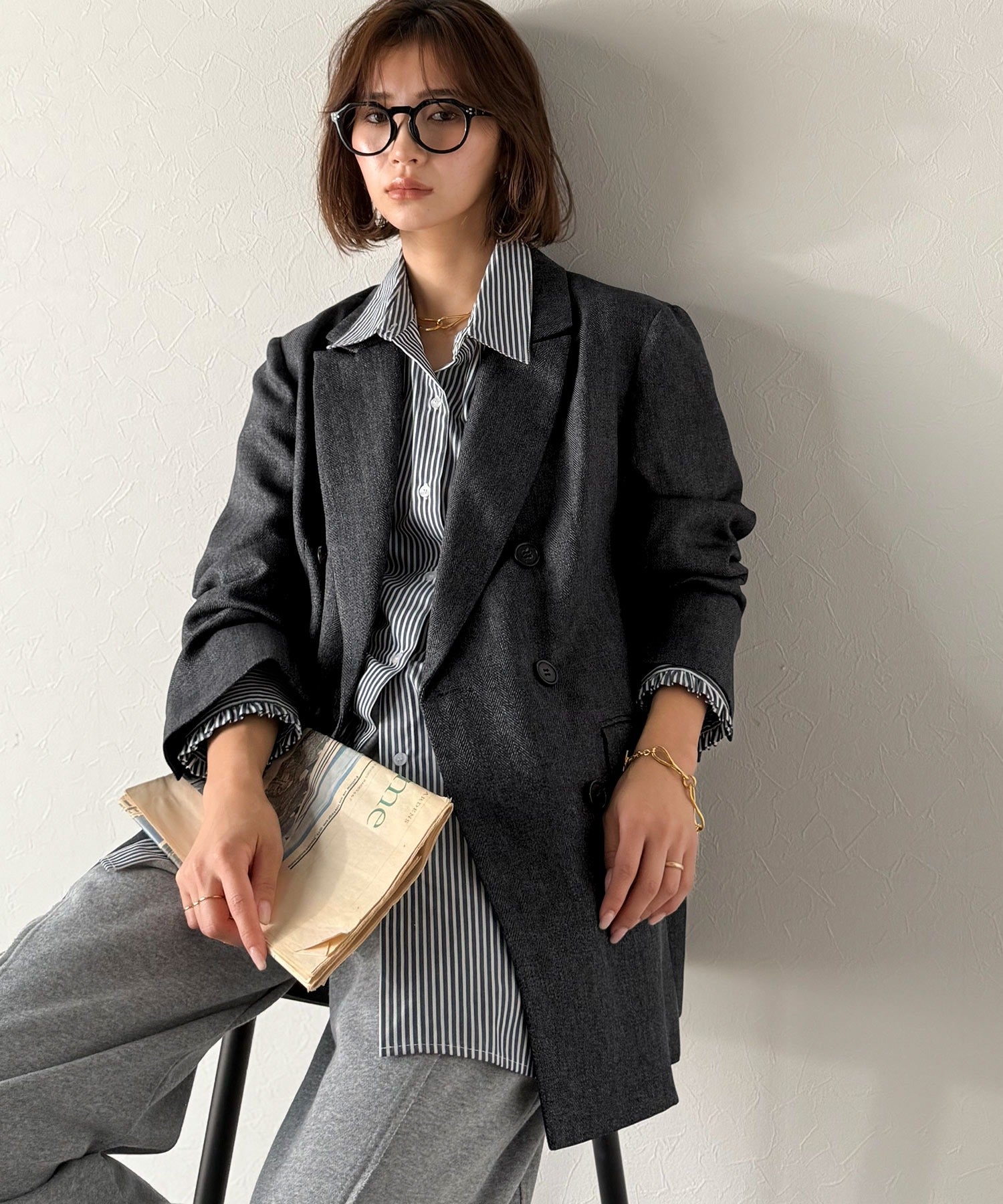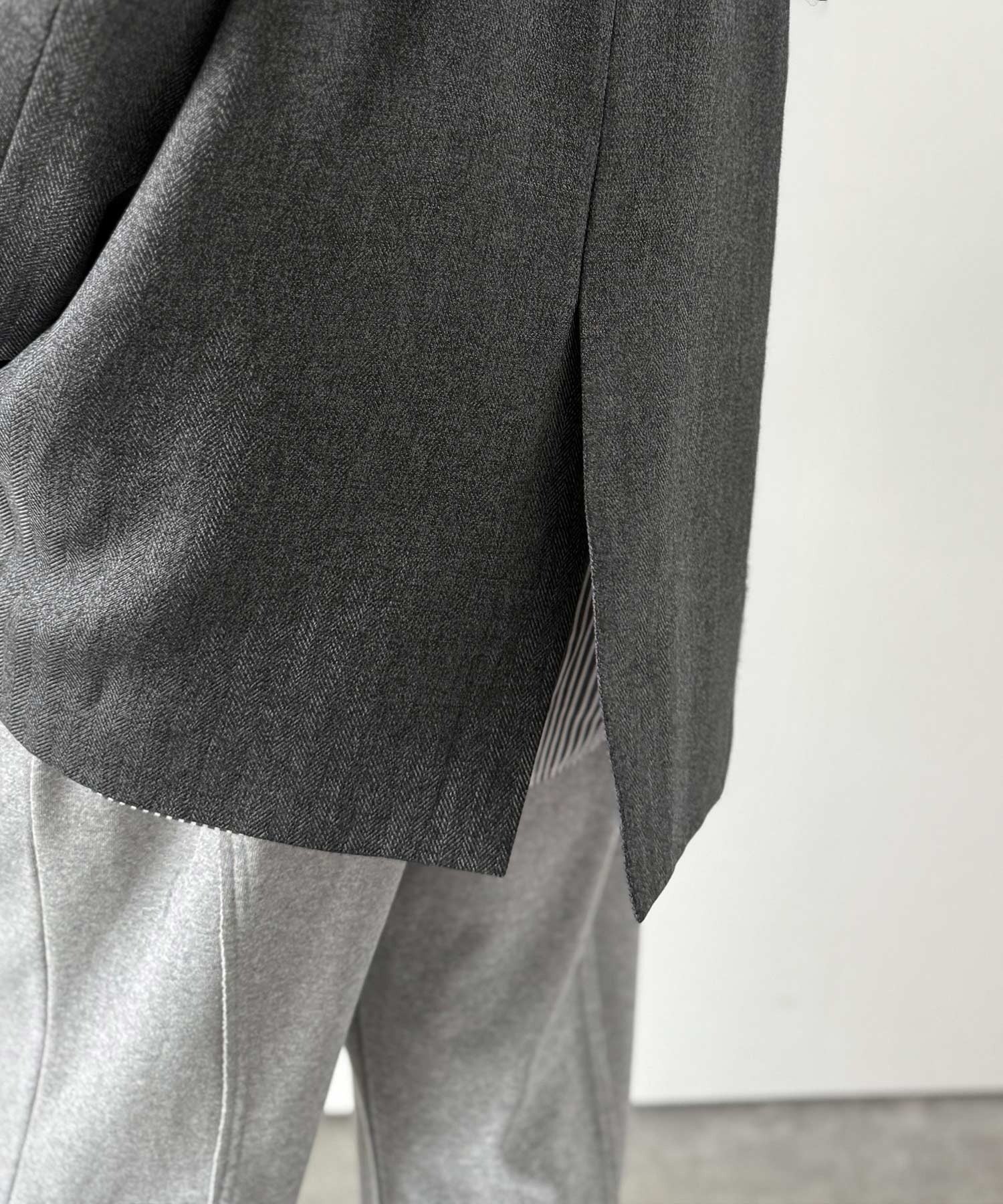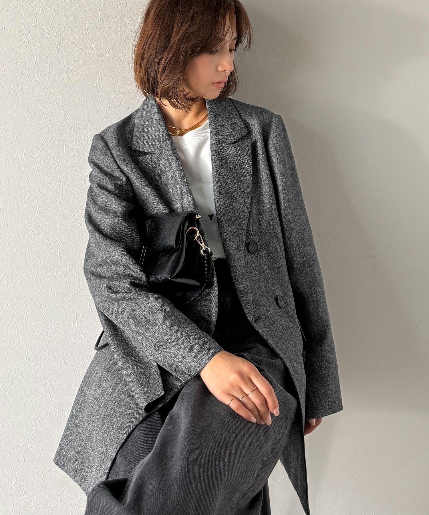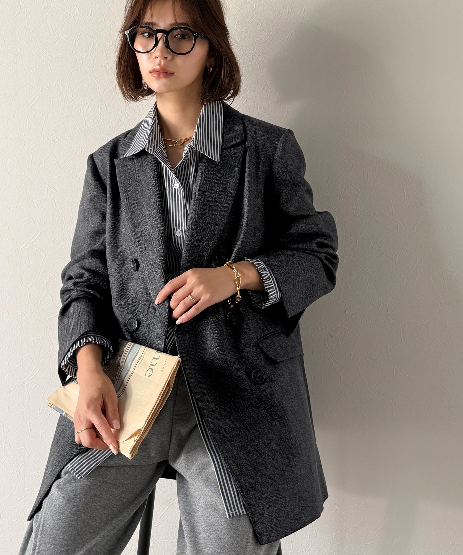 シックなヘリンボーン素材を活かした、3段ボタンダブルジャケット。