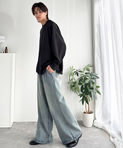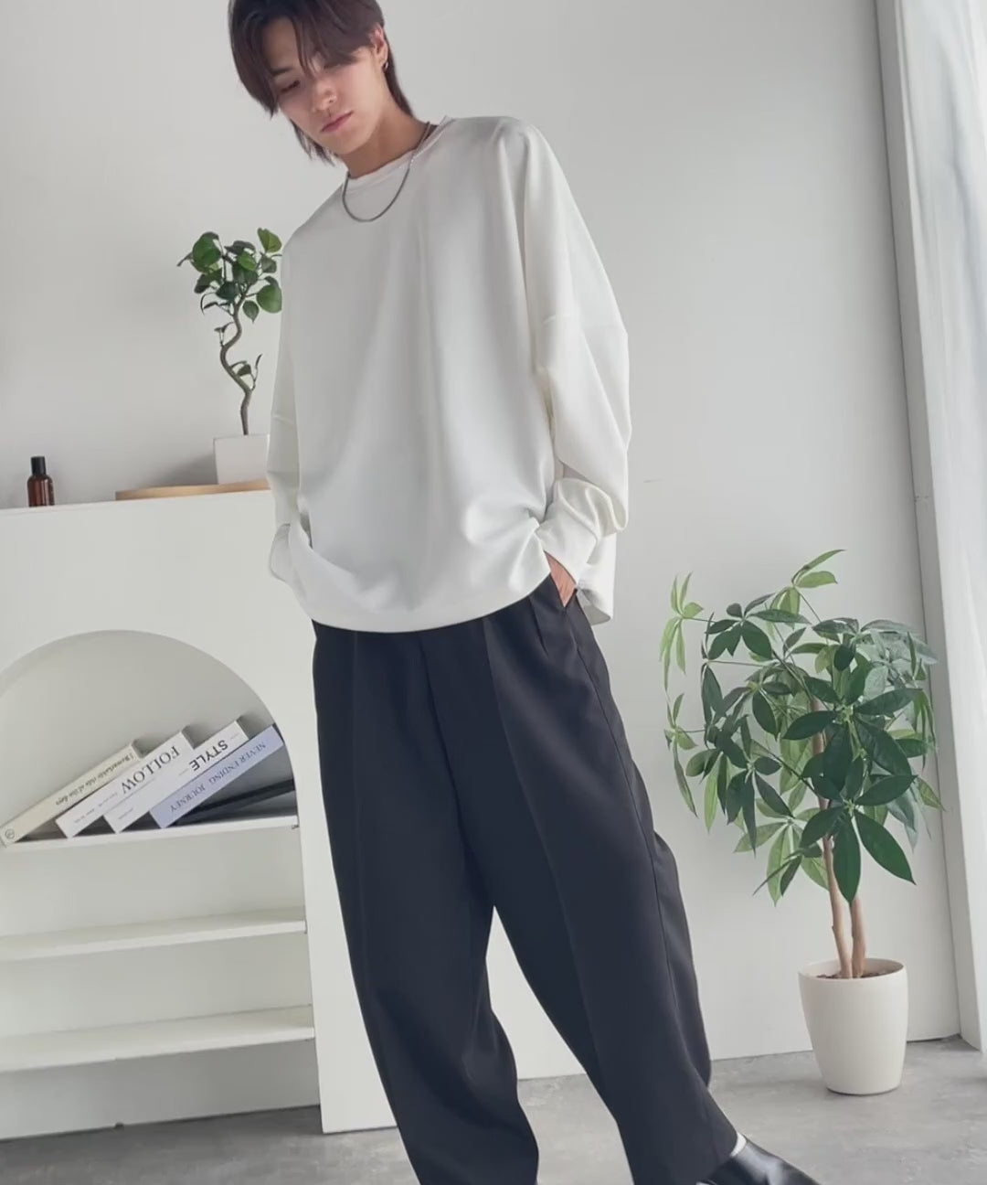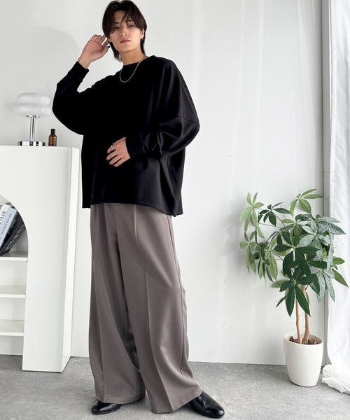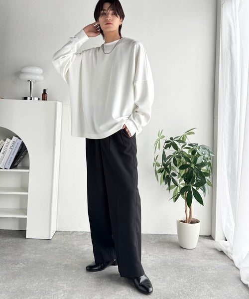 【Classical Origin】「大人シンプル。」ドルマンスリーブダンボール素材ビックTEE(長袖)/Dolman Cardboard Big Tee ao1260455