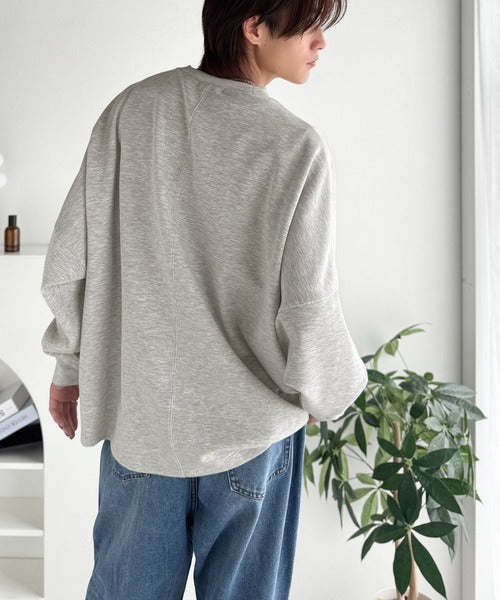 肩まわりに余裕を持たせたドルマンスリーブが、動くたびに軽やかでリラックス感ある着心地を提供。