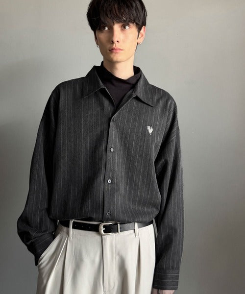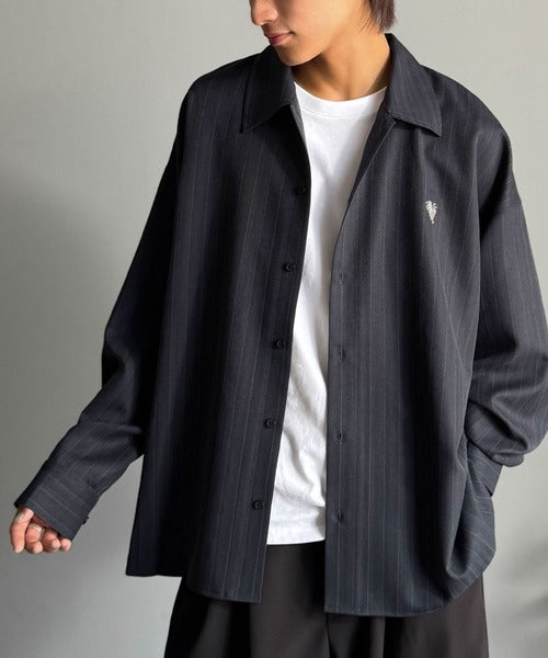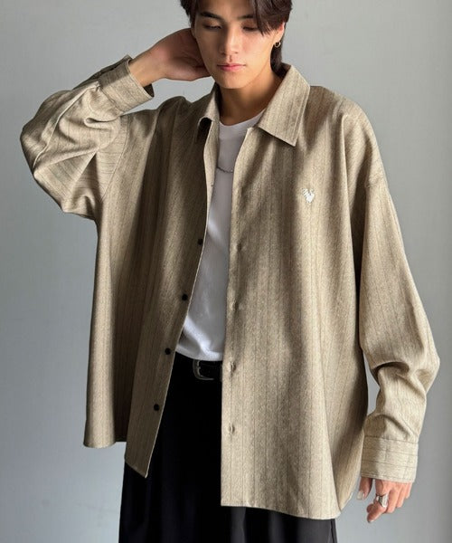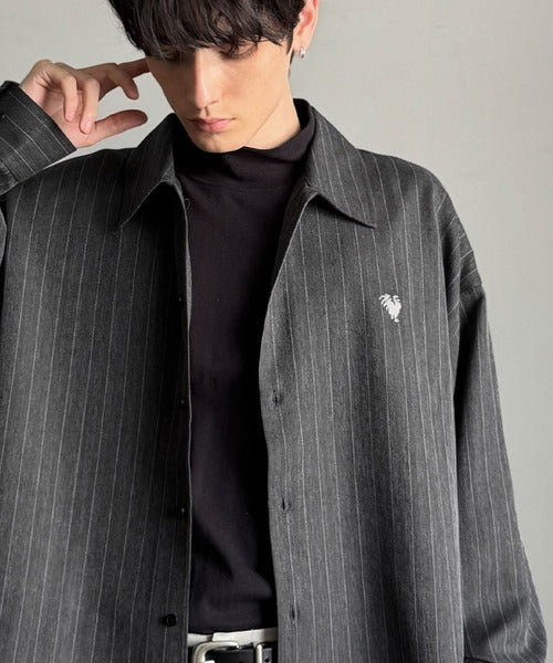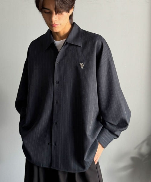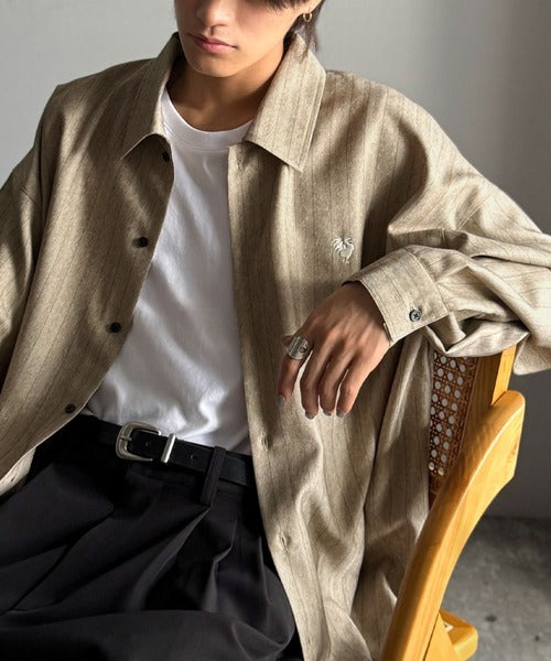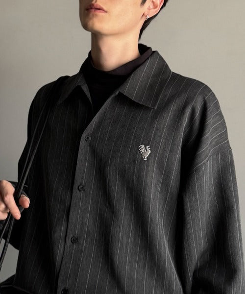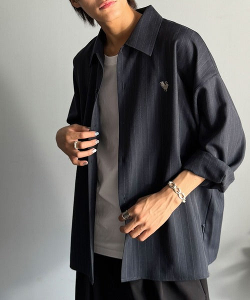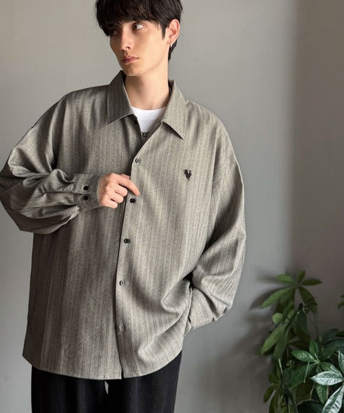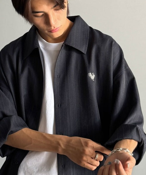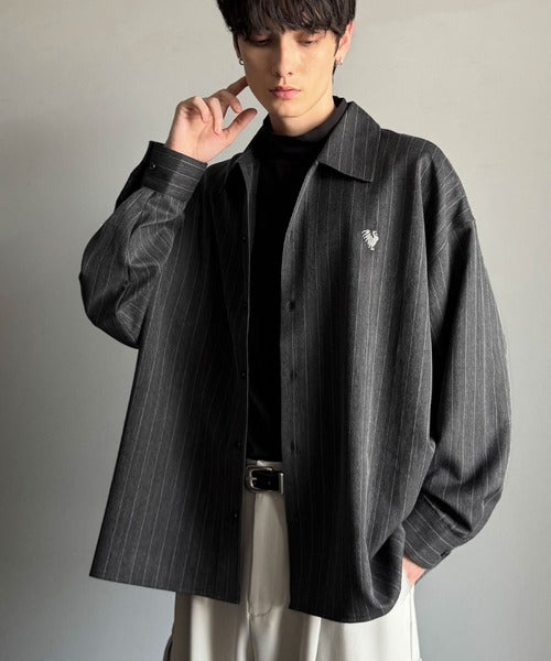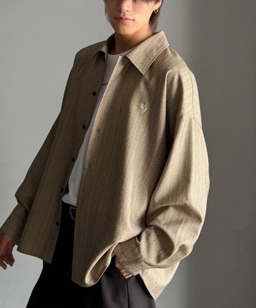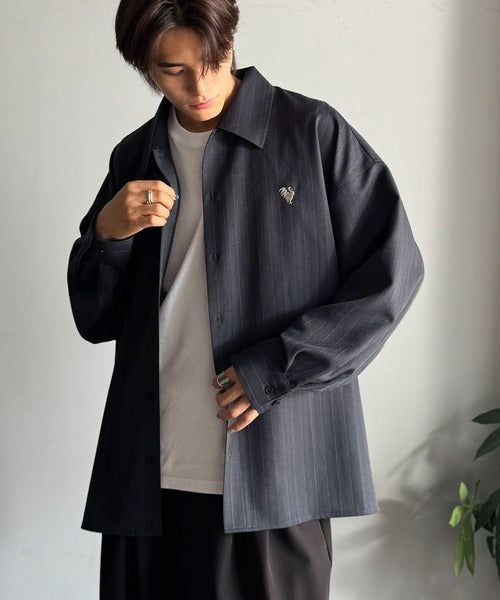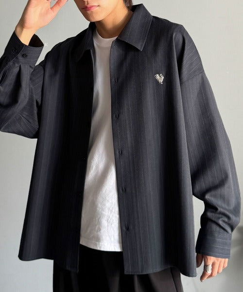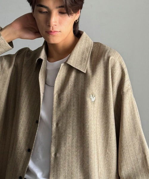 【Classical Origin】「大人のさりげなさ。」刺繍入りストライプ柄オーバーサイズシャツ(長袖)/Embroidered Stripe Pattern Oversized Shirt co1010023
