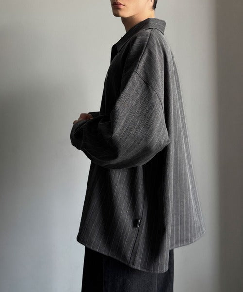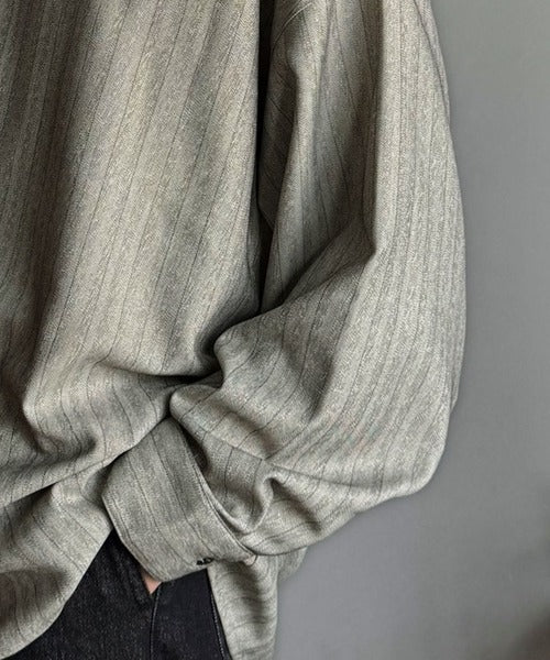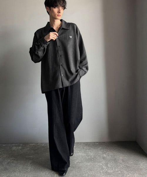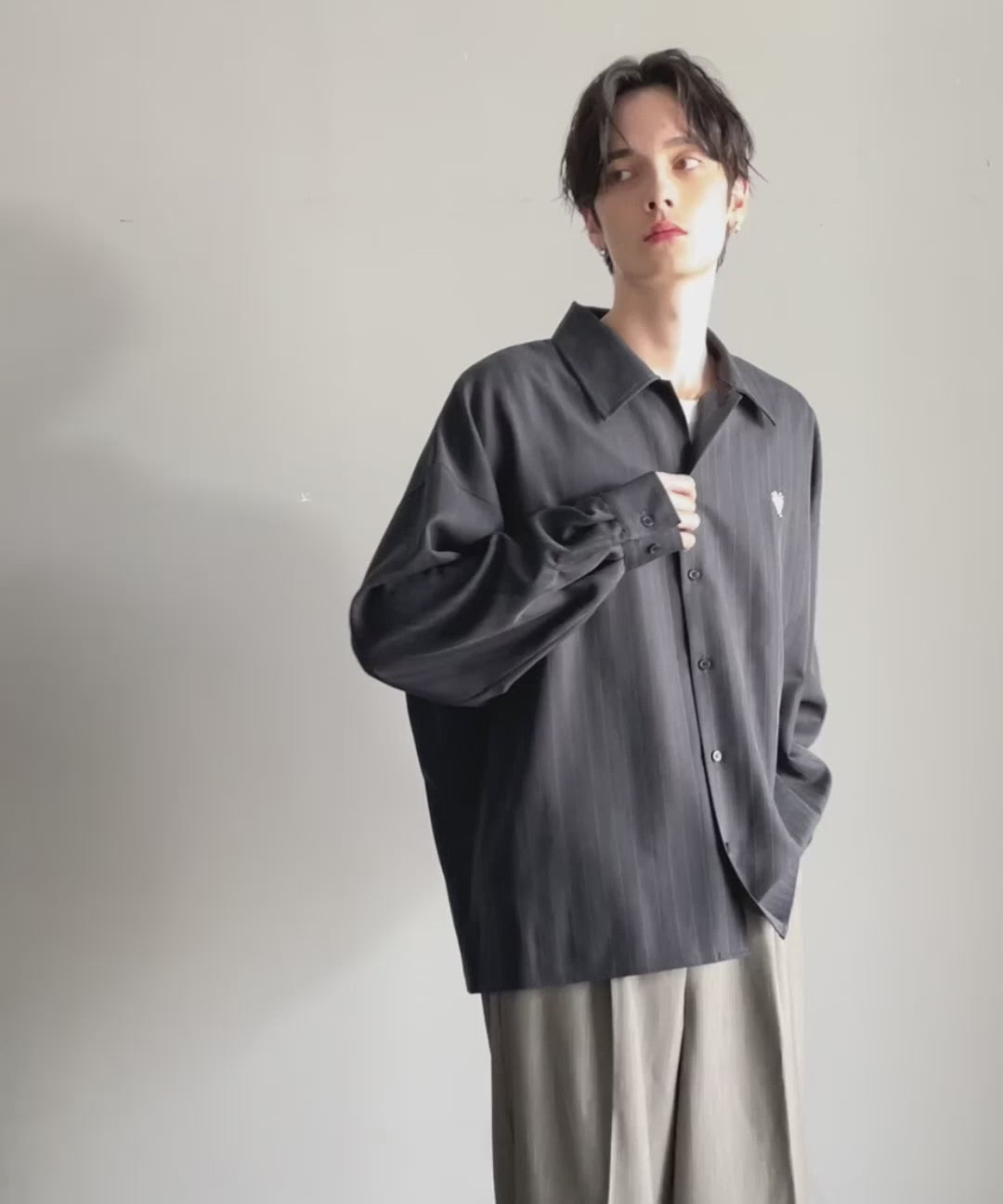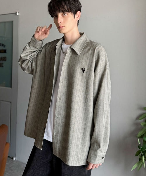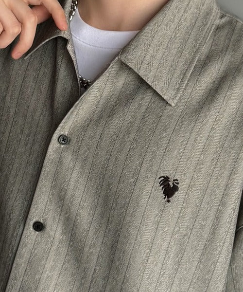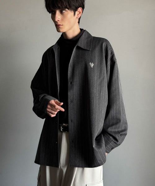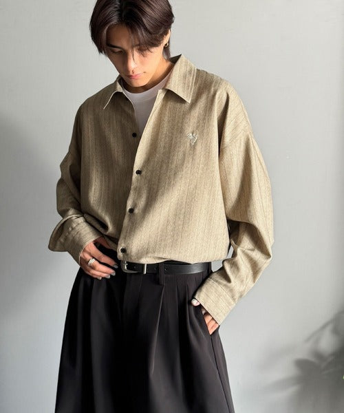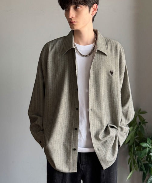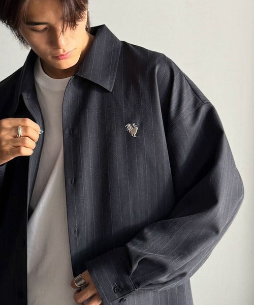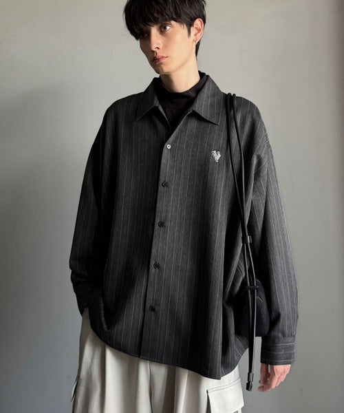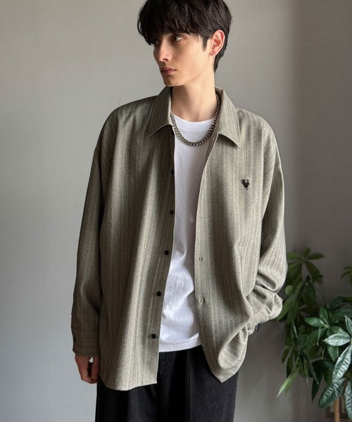 【Classical Origin】「大人のさりげなさ。」刺繍入りストライプ柄オーバーサイズシャツ(長袖)/Embroidered Stripe Pattern Oversized Shirt co1010023