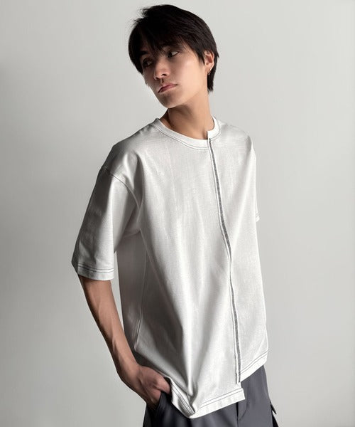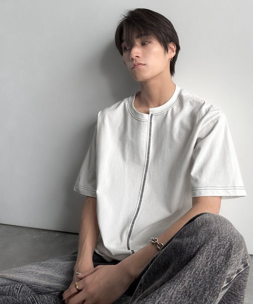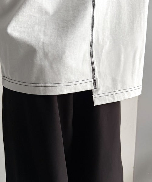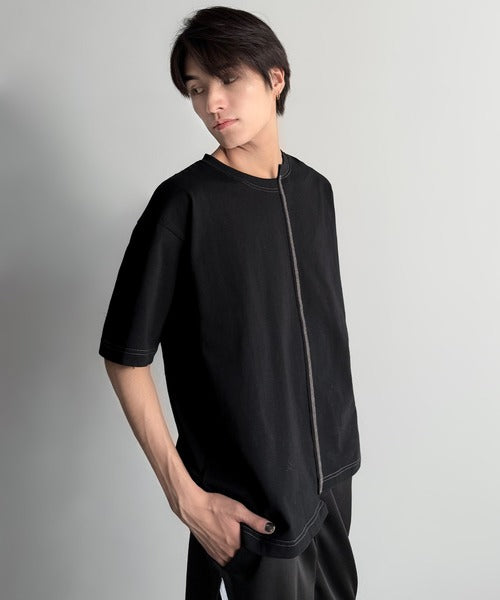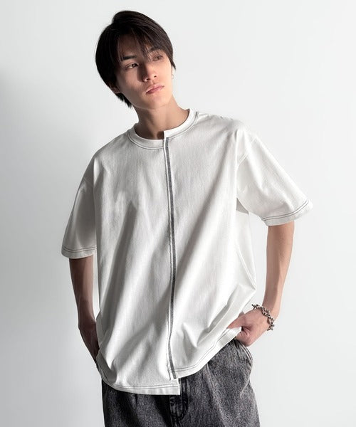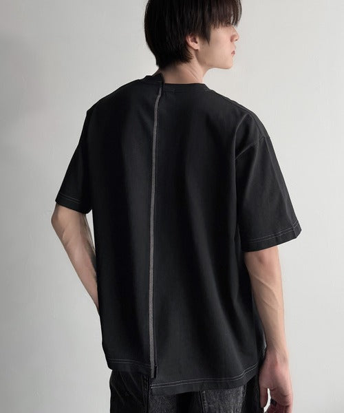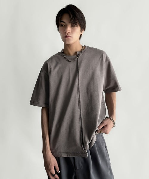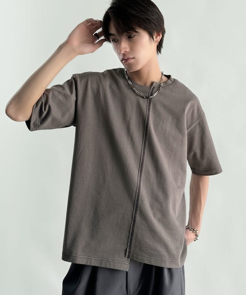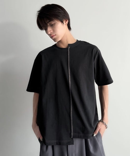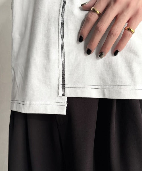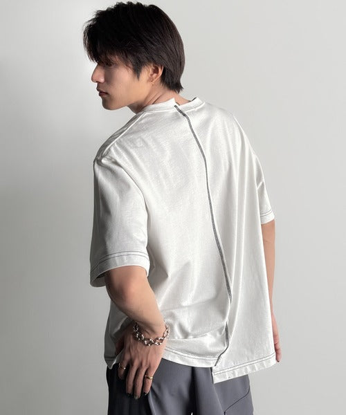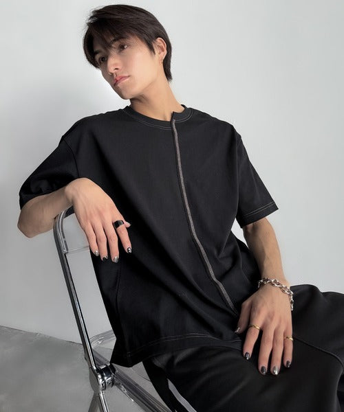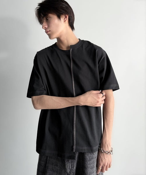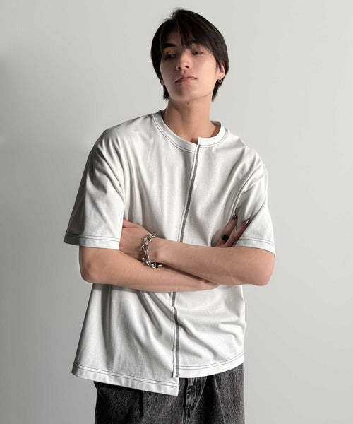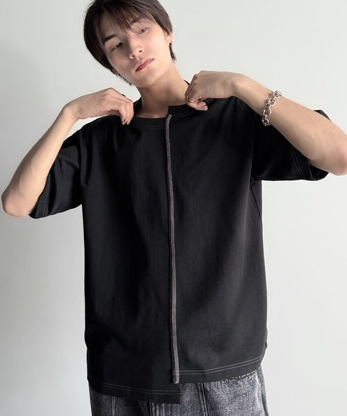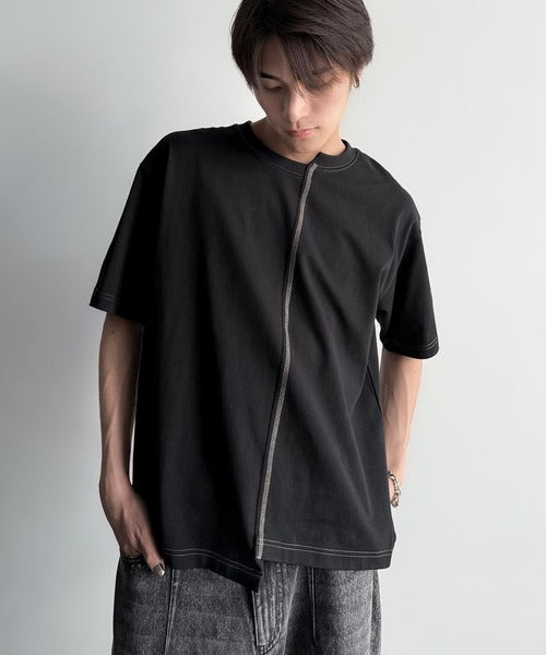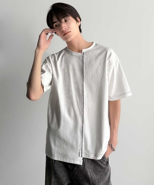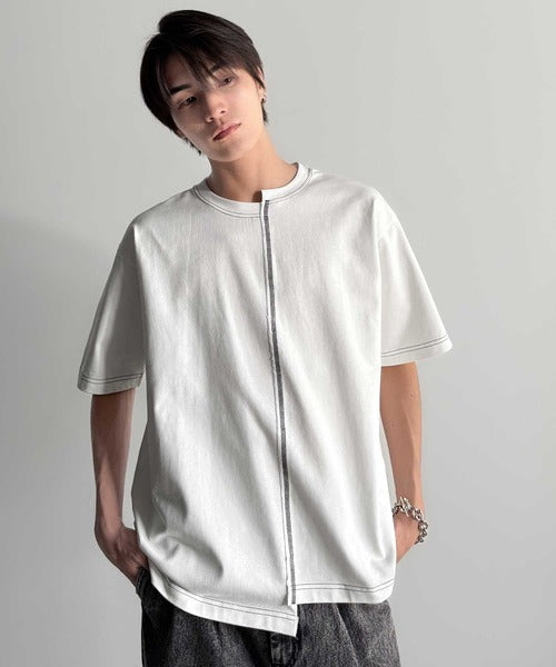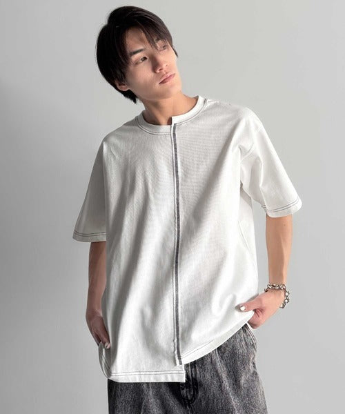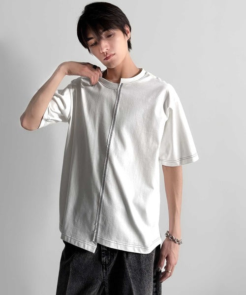 「 Asymmetric Stitch Design T-Shirt/アシンメトリーデザイン配色ステッチTシャツ」