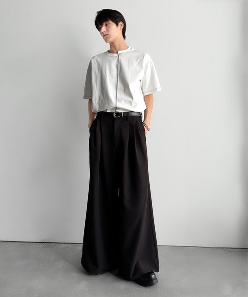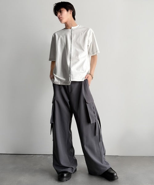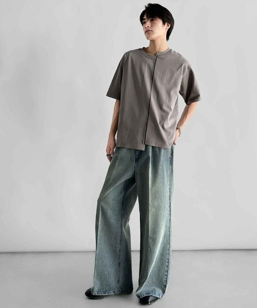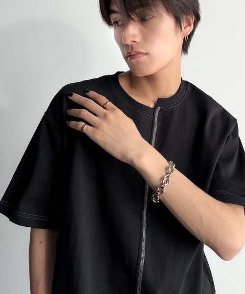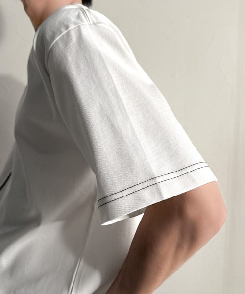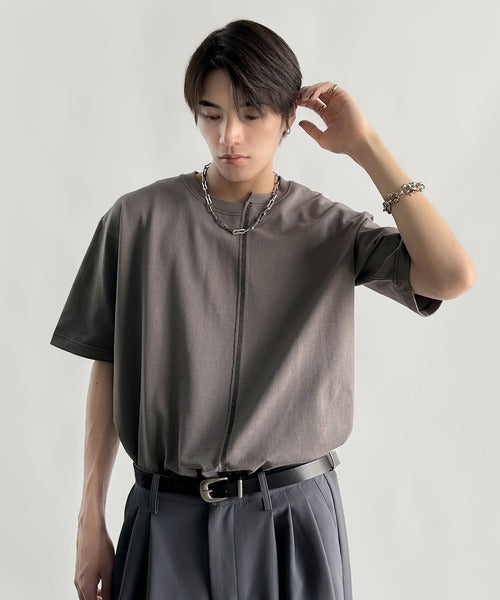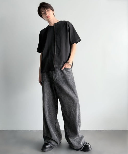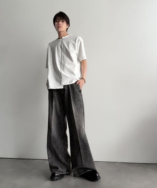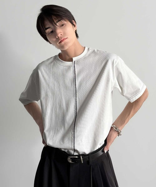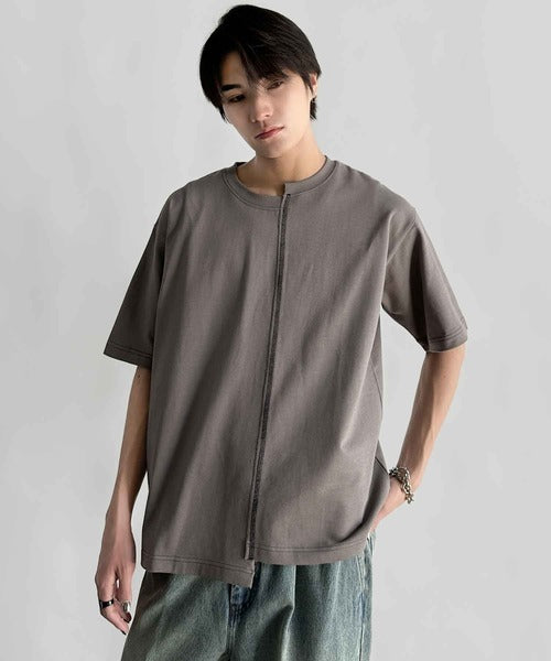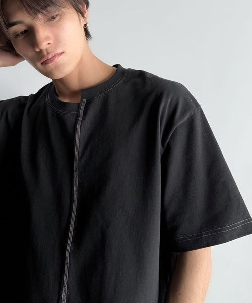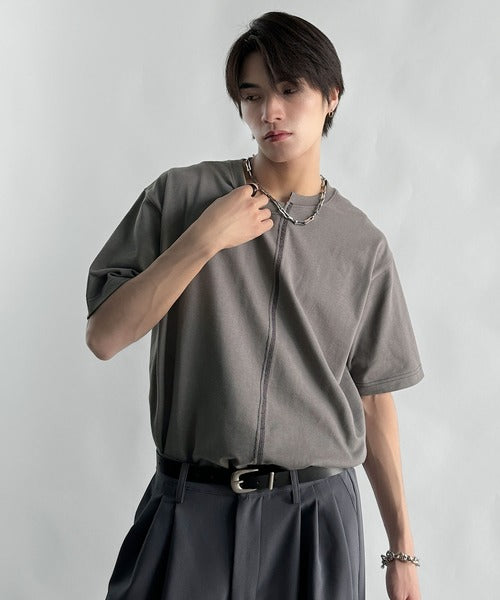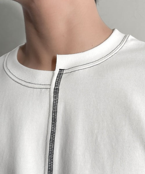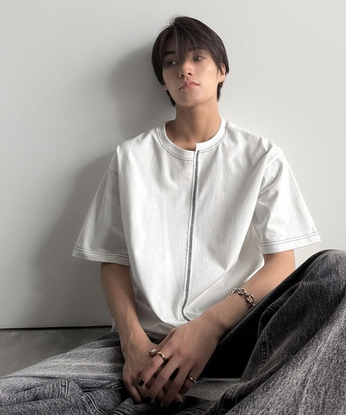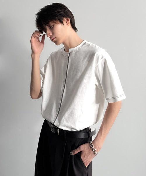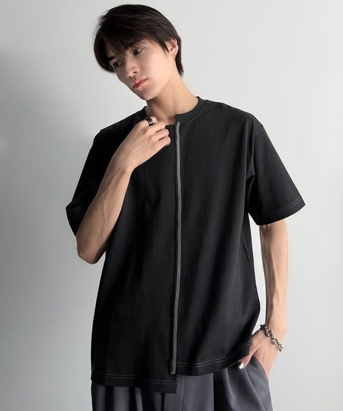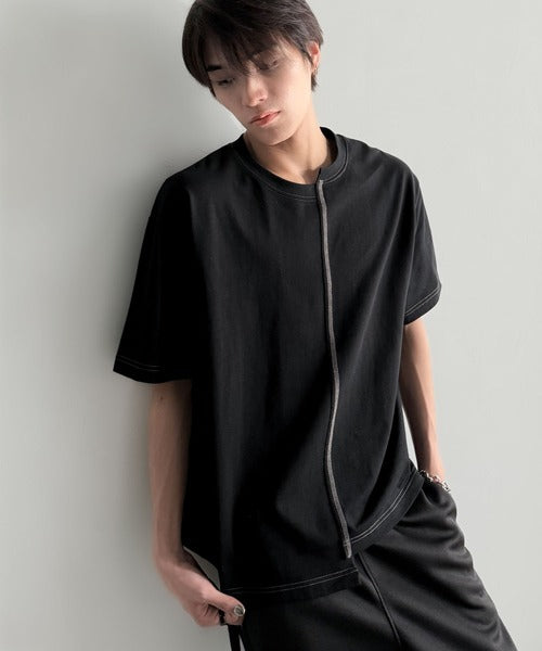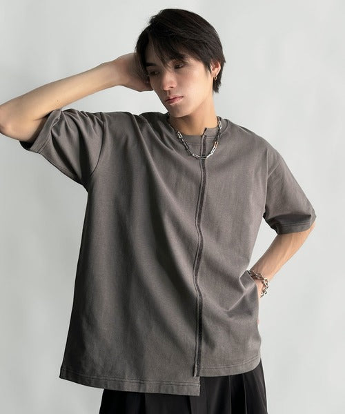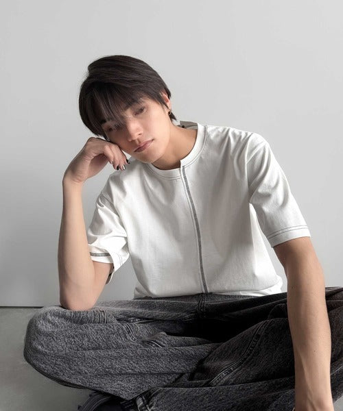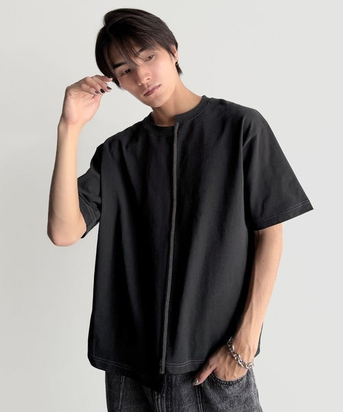 「 Asymmetric Stitch Design T-Shirt/アシンメトリーデザイン配色ステッチTシャツ」