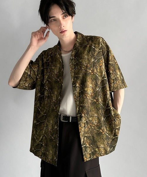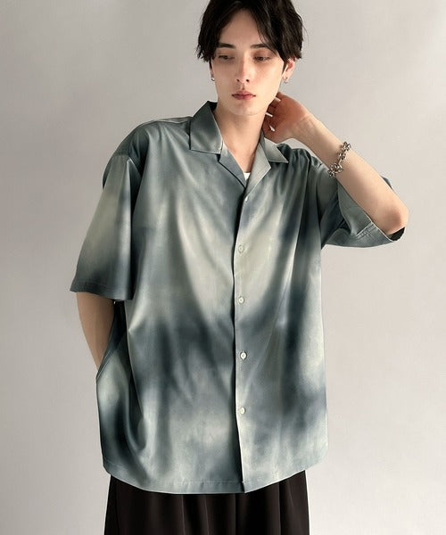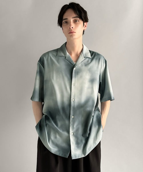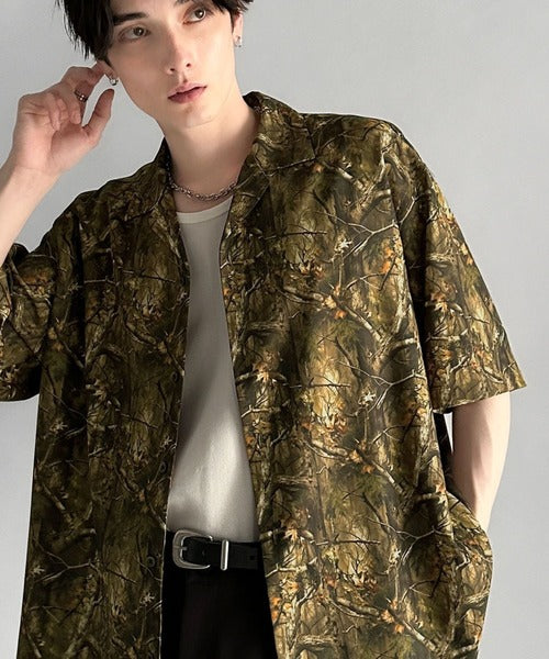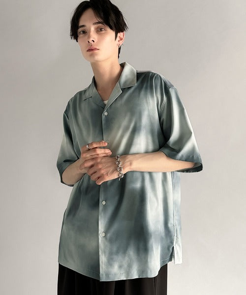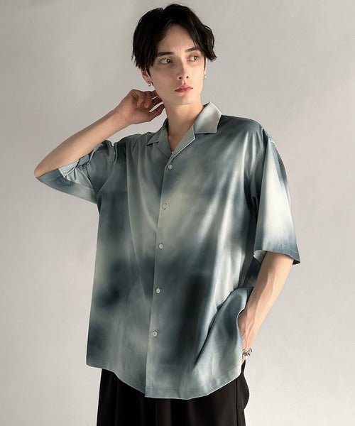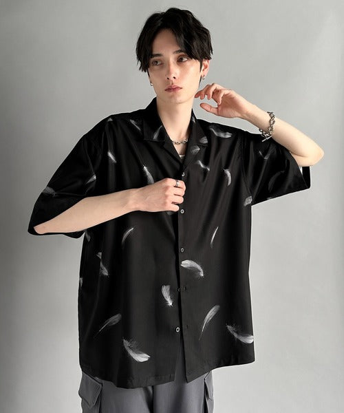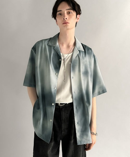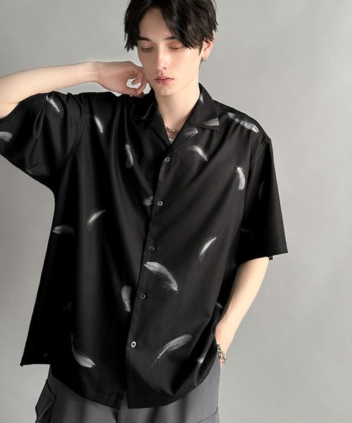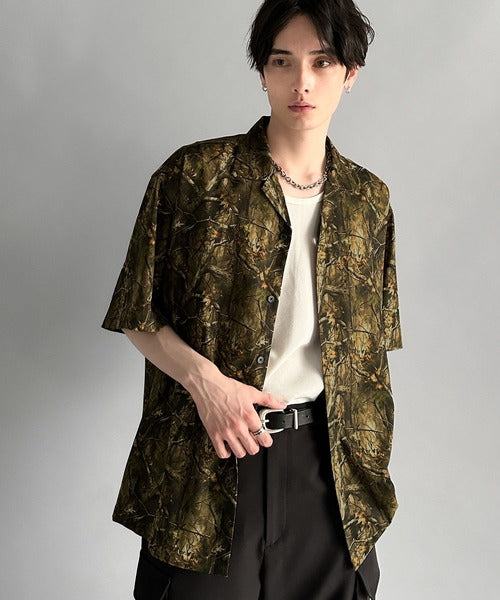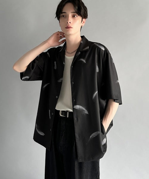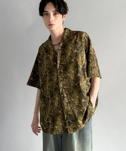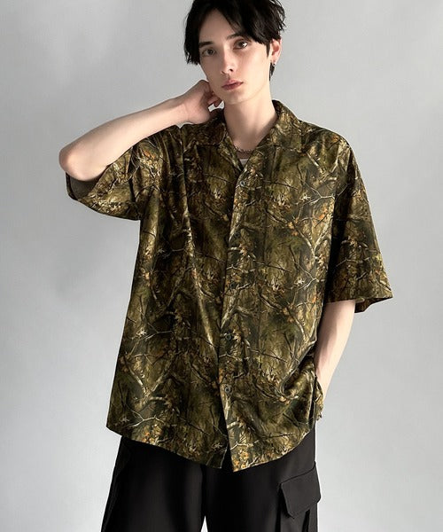 「Oversized Drape Half Sleeve Shirt/総柄プリントオープンカラー半袖Tシャツ」