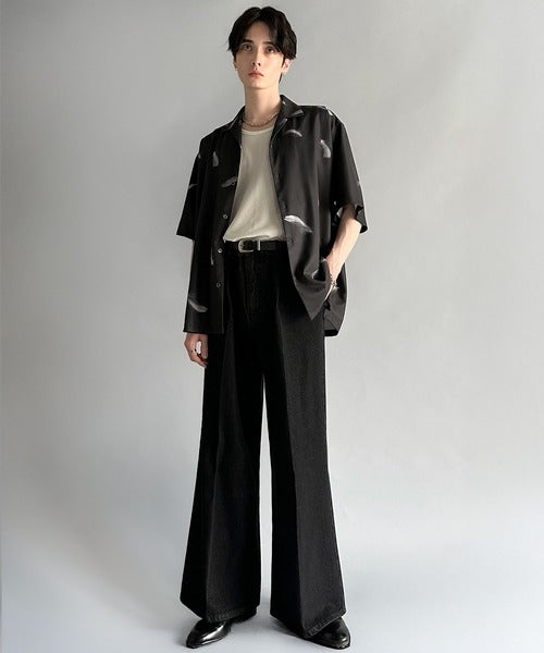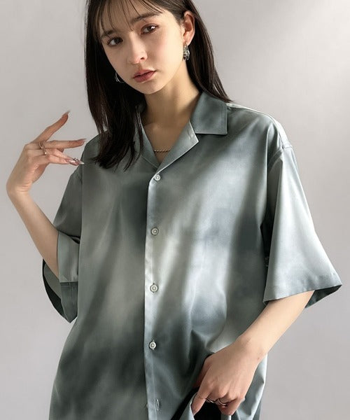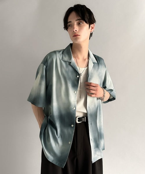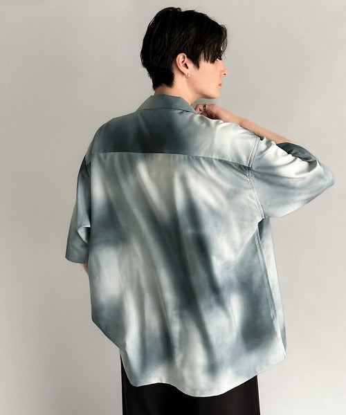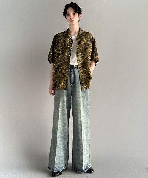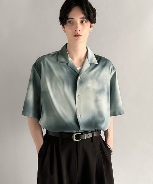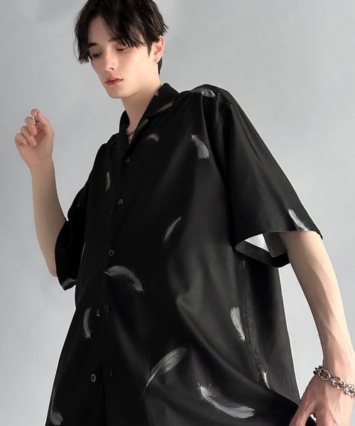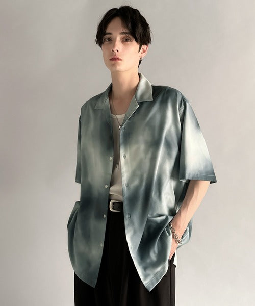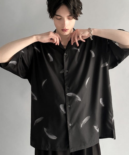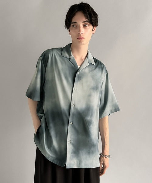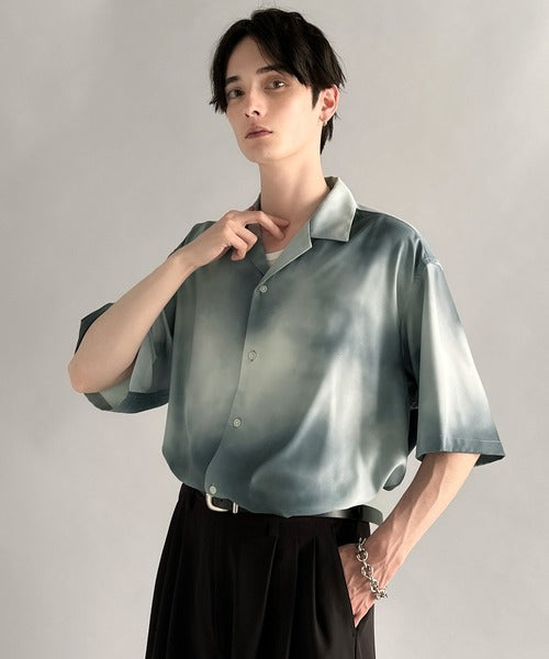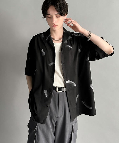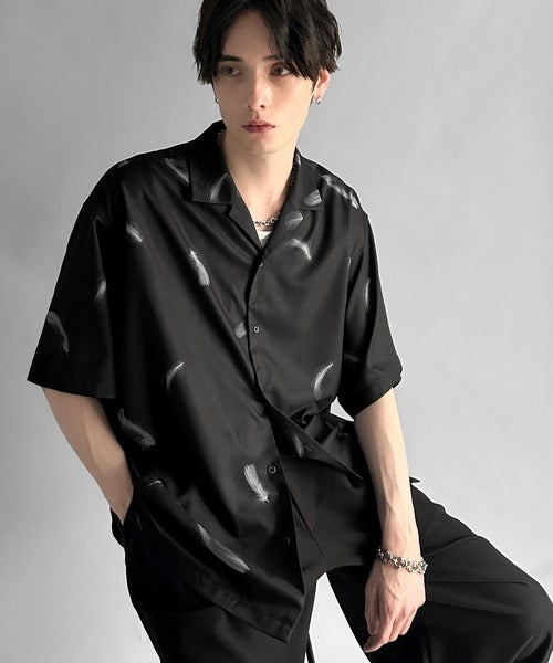 「Oversized Drape Half Sleeve Shirt/総柄プリントオープンカラー半袖Tシャツ」