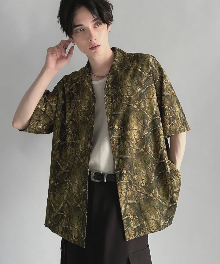 「個性全開。」総柄オーバーサイズドレープ半袖シャツ/Oversized Drape Half Sleeve Shirt co1150014