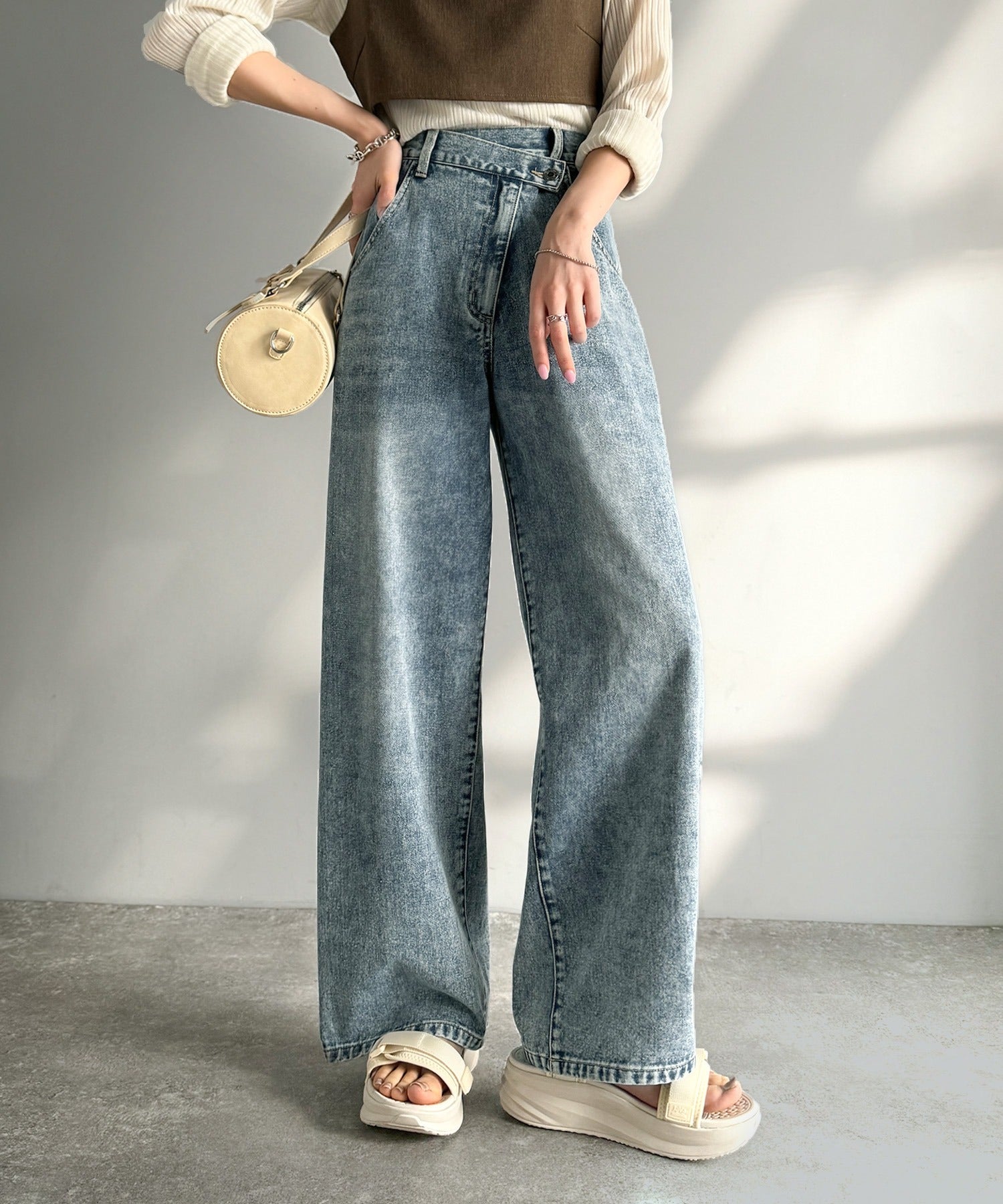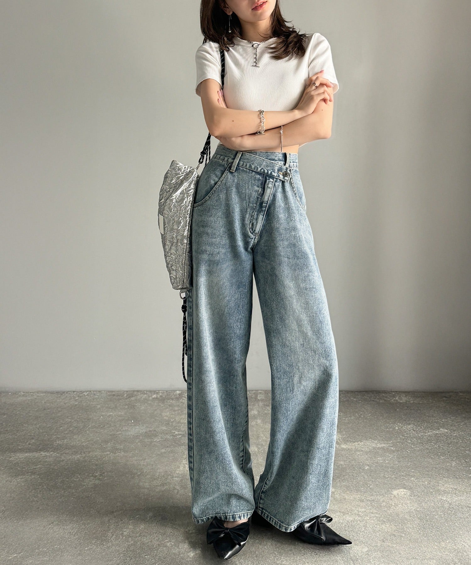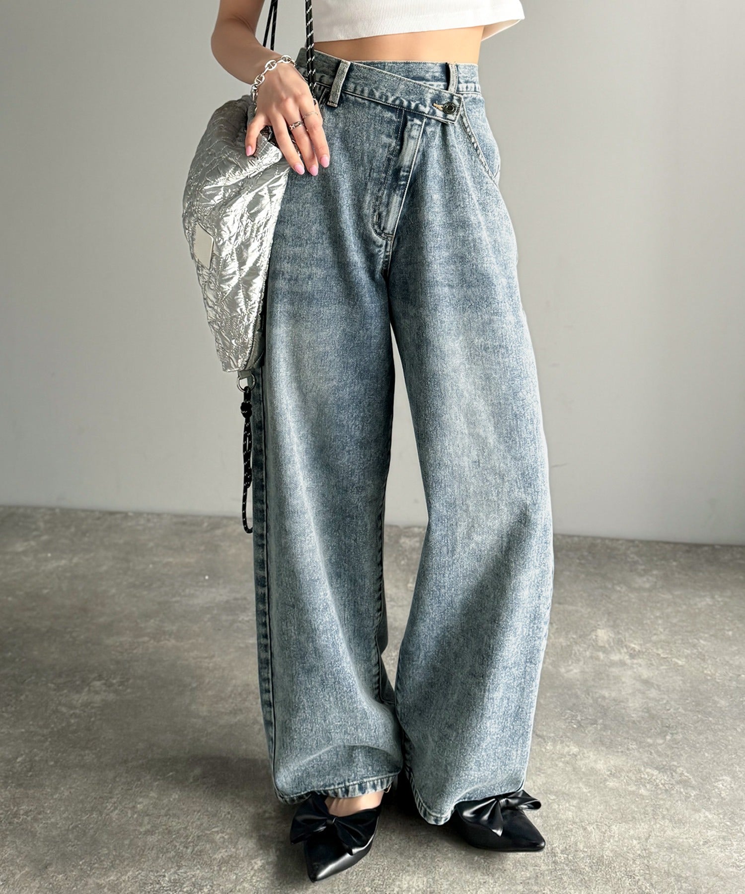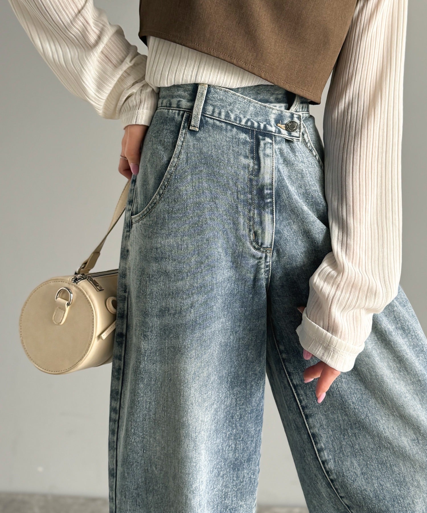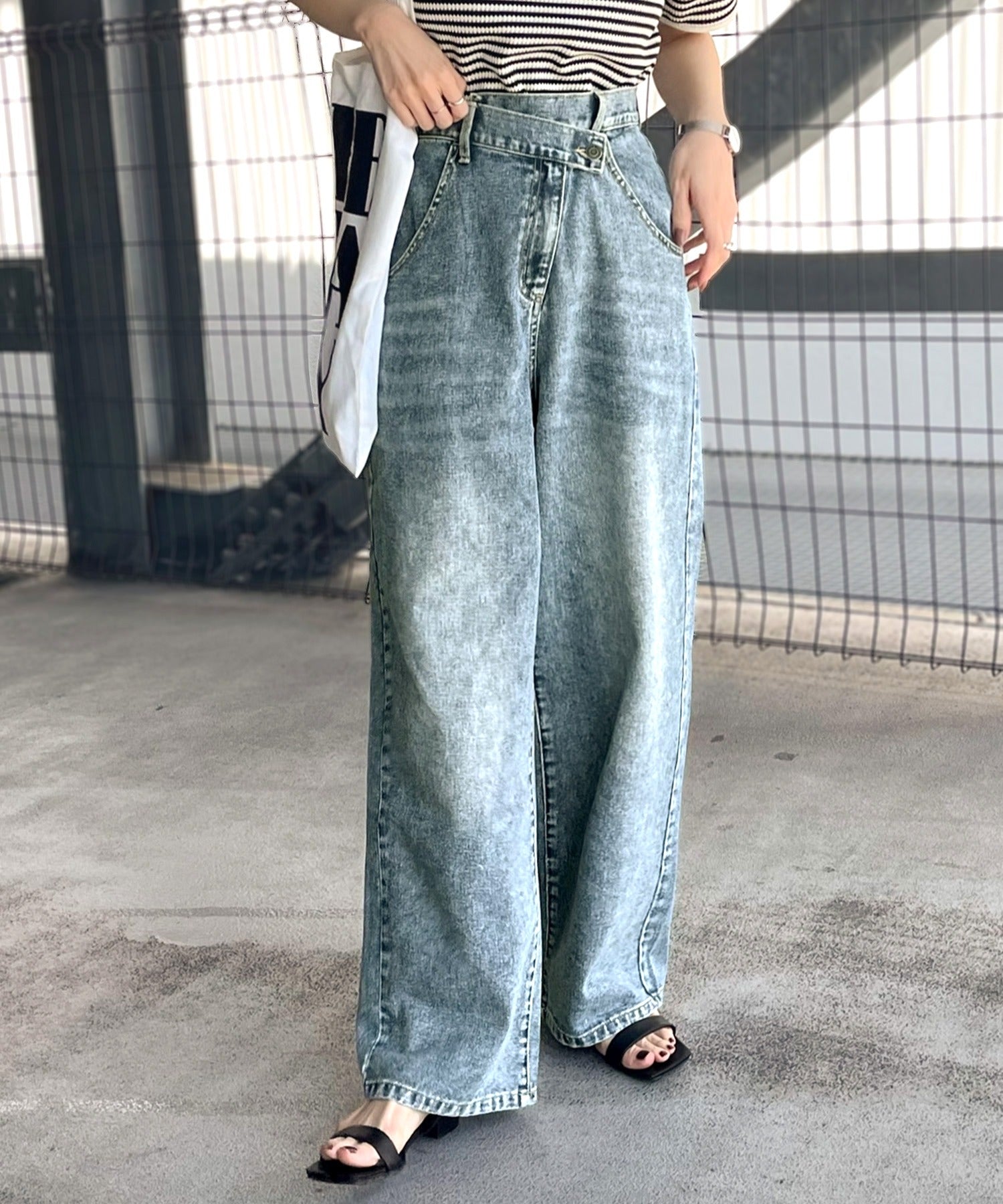 《sayo×クラシカルエルフコラボ》映えるウエストで、ちょい差しカジュアル!アシメウエストワイドデニム ce1015080